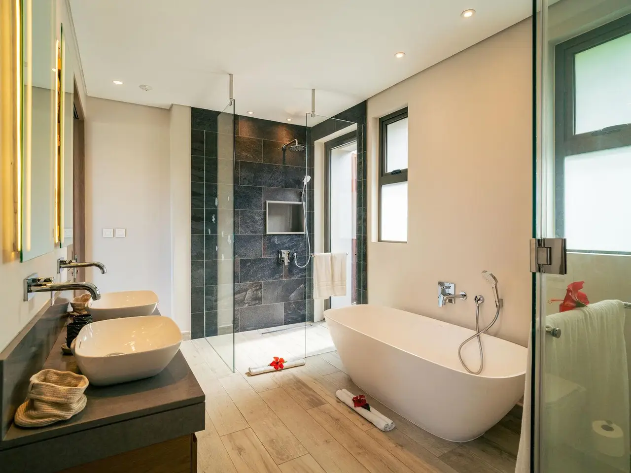 Discover contemporary elegance and ultimate luxury with this villa in Anahita, located in the prestigious Rive Est area of Anahita, Mauritius. This modern, newly built villa offers a sumptuous 353 m² of living space, perfectly designed for comfort and style. The four spacious bedrooms are luxuriously appointed, ensuring privacy and serenity. The villa sits in a vast 2,230 m² plot, offering generous outdoor space to relax and enjoy the beautiful natural surroundings. The pièce de résistance of this property is undoubtedly the breathtaking views over the 13th fairway, offering a picturesque and peaceful setting. With contemporary design and high-end finishes, every detail of the Villa has been carefully thought through to deliver an exceptional living experience. The Anahita project, located on the east coast of Mauritius, is a prestigious destination that combines luxury, comfort and nature. Nestled in lush natural surroundings and bordered by pristine beaches, Anahita offers high-end residences, elegant villas and world-class golf courses, designed by Ernie Els. This exclusive development offers a refined lifestyle with first-class facilities, including gourmet restaurants, luxurious spas, and a private marina. Anahita represents the pinnacle of tropical living, offering residents an unparalleled experience of tranquillity, natural beauty and modern sophistication.