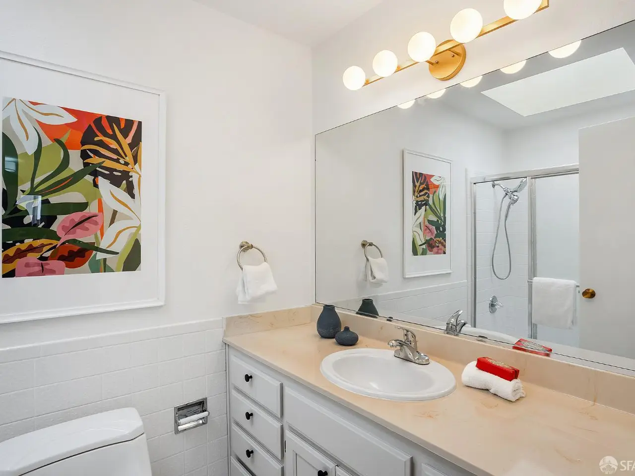 Experience the comfort and style of this home located in a desirable location close to San Bruno Mountain Reserve. The home offers two full levels of living space. The warm wood floors throughout, along with clean lines and details, lend to the overall contemporary feel. Upstairs, the formal living room features a contemporary tile fireplace and west facing outlook beyond a decorative balcony. The dining area seamlessly joins the living room and kitchen, creating a wonderful flow for gathering and entertaining. On this level are three spacious bedrooms and two bathrooms, including an ensuite bedroom. The lower level provides a large family room, additional bedroom and full bath. Access to the garden and patio provides lots of opportunities for outdoor activities. The large garage can accommodate 2 cars and plenty of storage. Close to BART and 280 this home offers a dream commute, while the nearby San Bruno Mountain park offers a host of hiking and outdoor enjoyment.