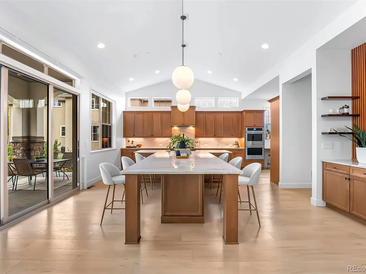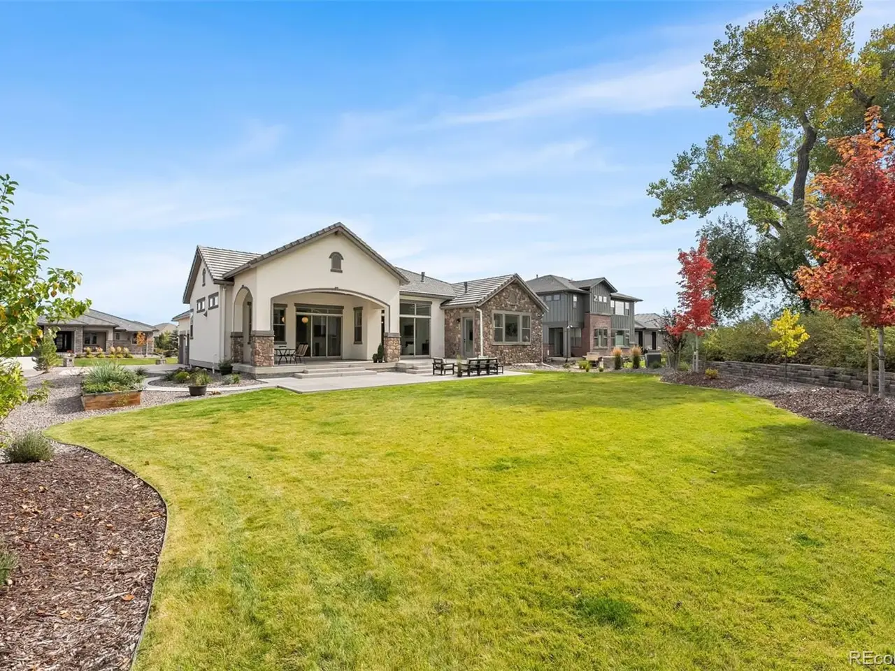 Welcome to The Hermes of Wild Plum!-Voted one of the Front Ranges most desirable communities. This 2023 curated estate celebrates Colorado living with panoramic windows, expansive sliders, and seamless indoor-outdoor flow connecting you to scenic Cooley Lake, walking paths, and Columbine Country Club.-Inside, discover a flexible, popular designer floor plan that transitions effortlessly between formal elegance and relaxed comfort, with soaring ceilings, natural textures, and curated finishes throughout.-The chefs kitchen is the heart of the home set beneath a dramatic cathedral ceiling with full-slab Calacatta Arno quartz, a massive island, and elite professional-grade appliances, including a Viking 6-burner range, JennAir direct vent, panelized Thermador columns, Sub-Zero wine fridge, double JennAir wall ovens with convection, and two (2) JennAir dishwashers. Ideal for formal events or casual gatherings, the kitchen flows to the living room with coffered ceilings and Napoleon linear fireplace, or to the covered patio for year-round entertaining.-Retreat to a luxurious primary suite with NuStone Crystal Quartz finishes, freestanding tub, and frameless glass spa shower. The finished lower level adds a wine and tasting room, wet bar, gym, rec space, home theater and too much else to list here. -Smart and efficient, this home features fiber-optic connectivity, Cat6 access points, security system, automated shades, dual (2) tankless water heaters, Honeywell smart thermostats, and a 320-amp electrical system and a three-car EV-ready garage. This modern smart home masterpiece defines Wild Plum luxury.Schedule your private showing today!