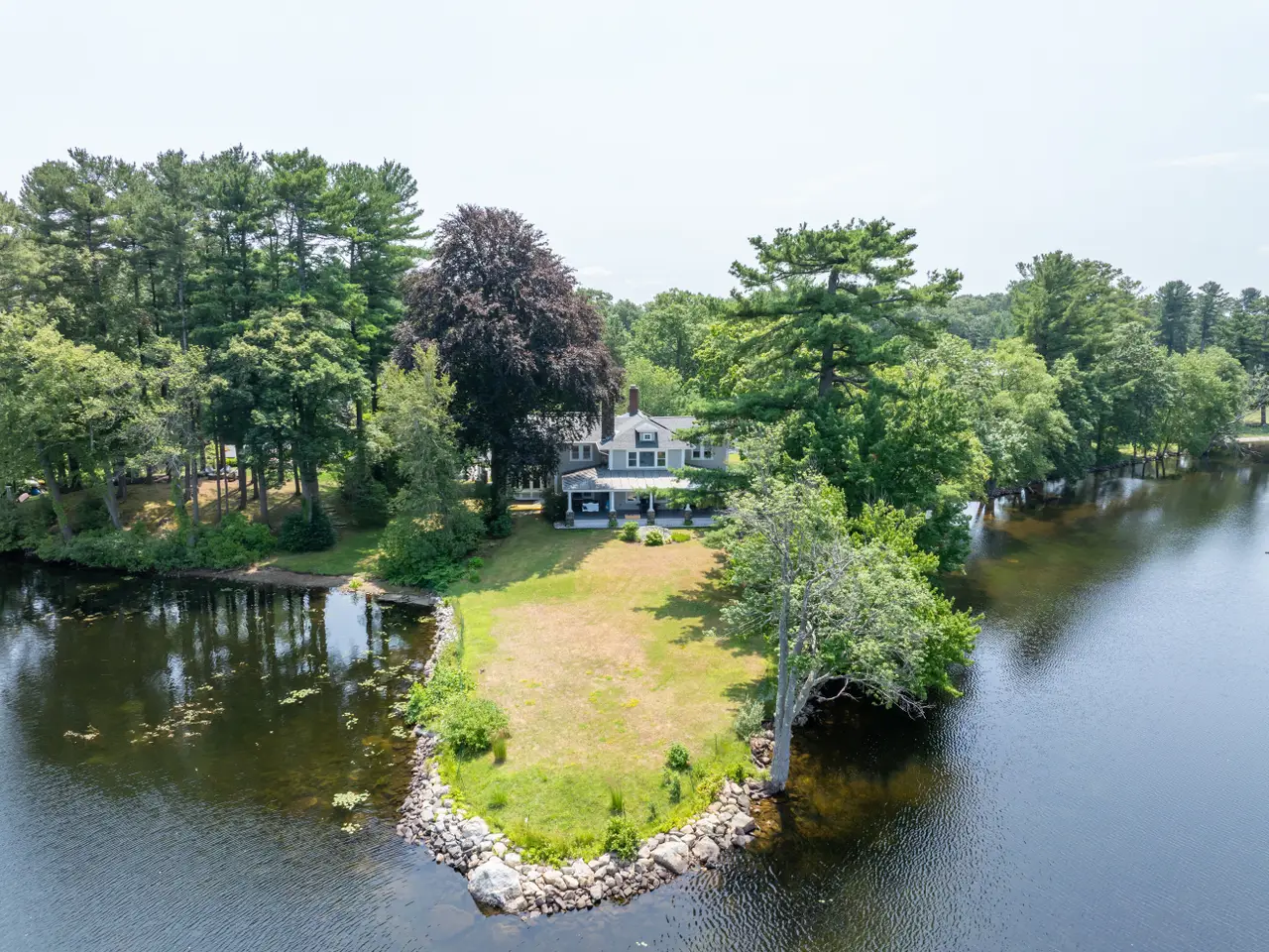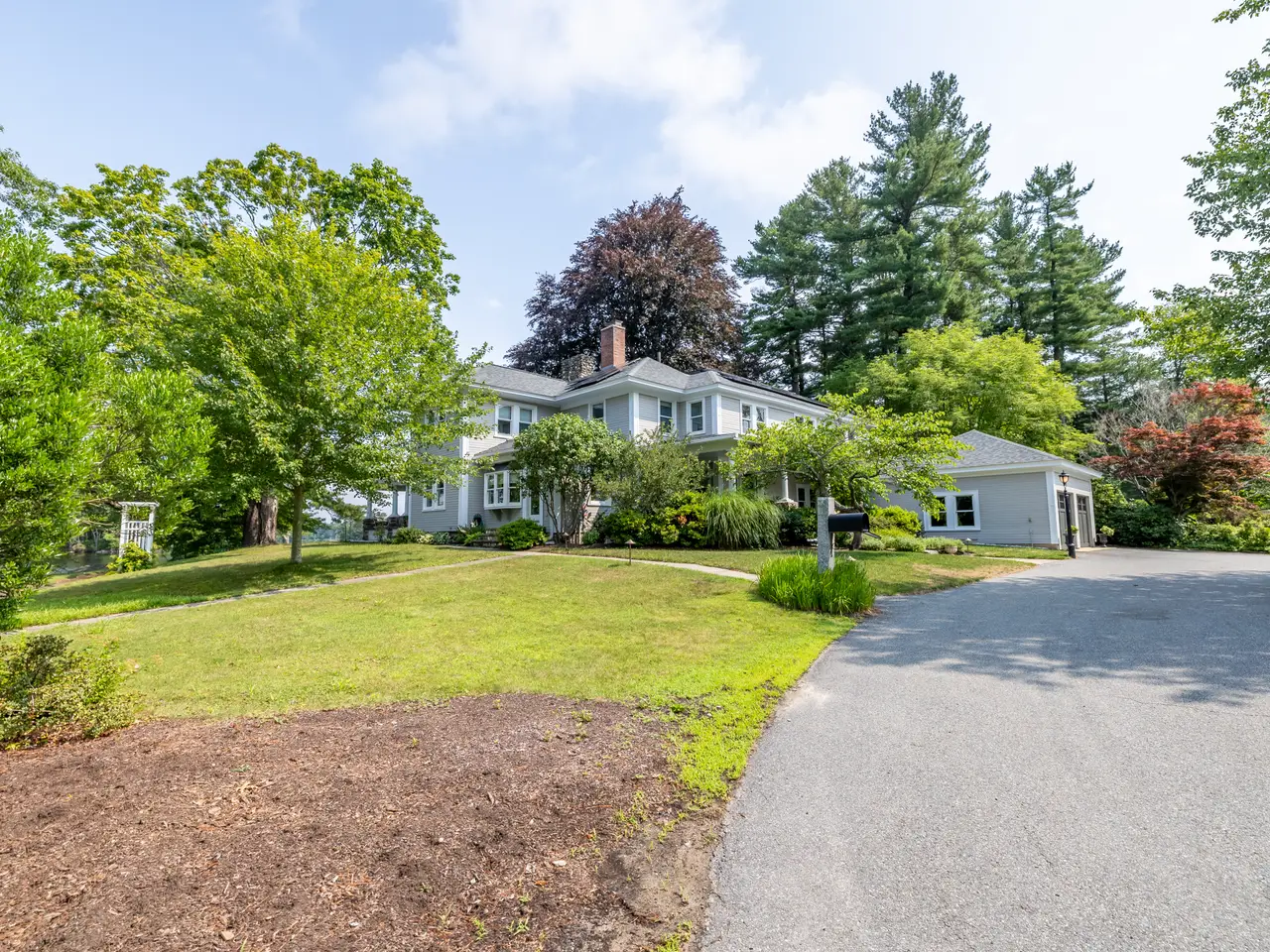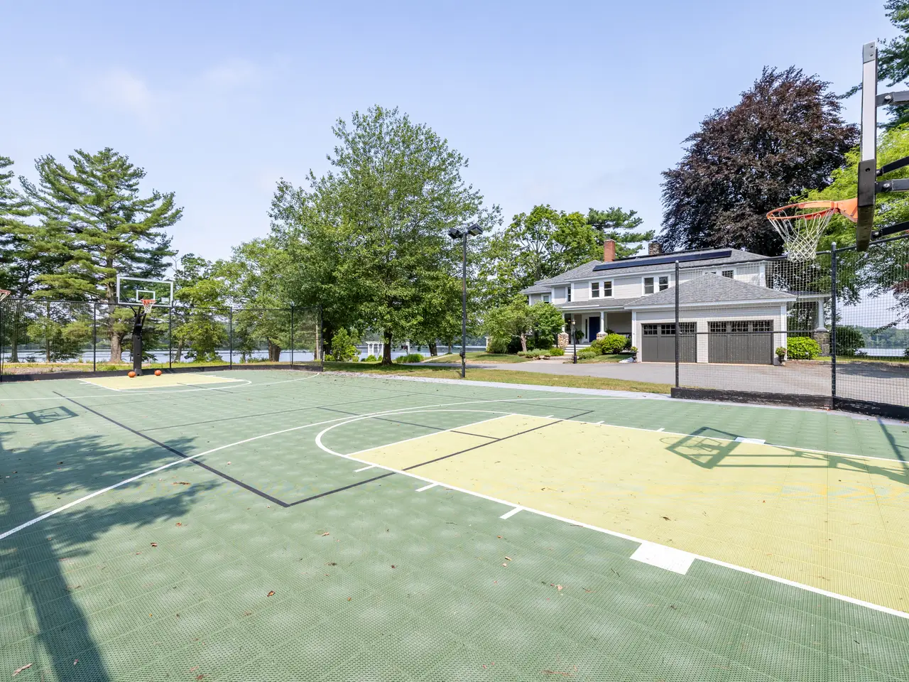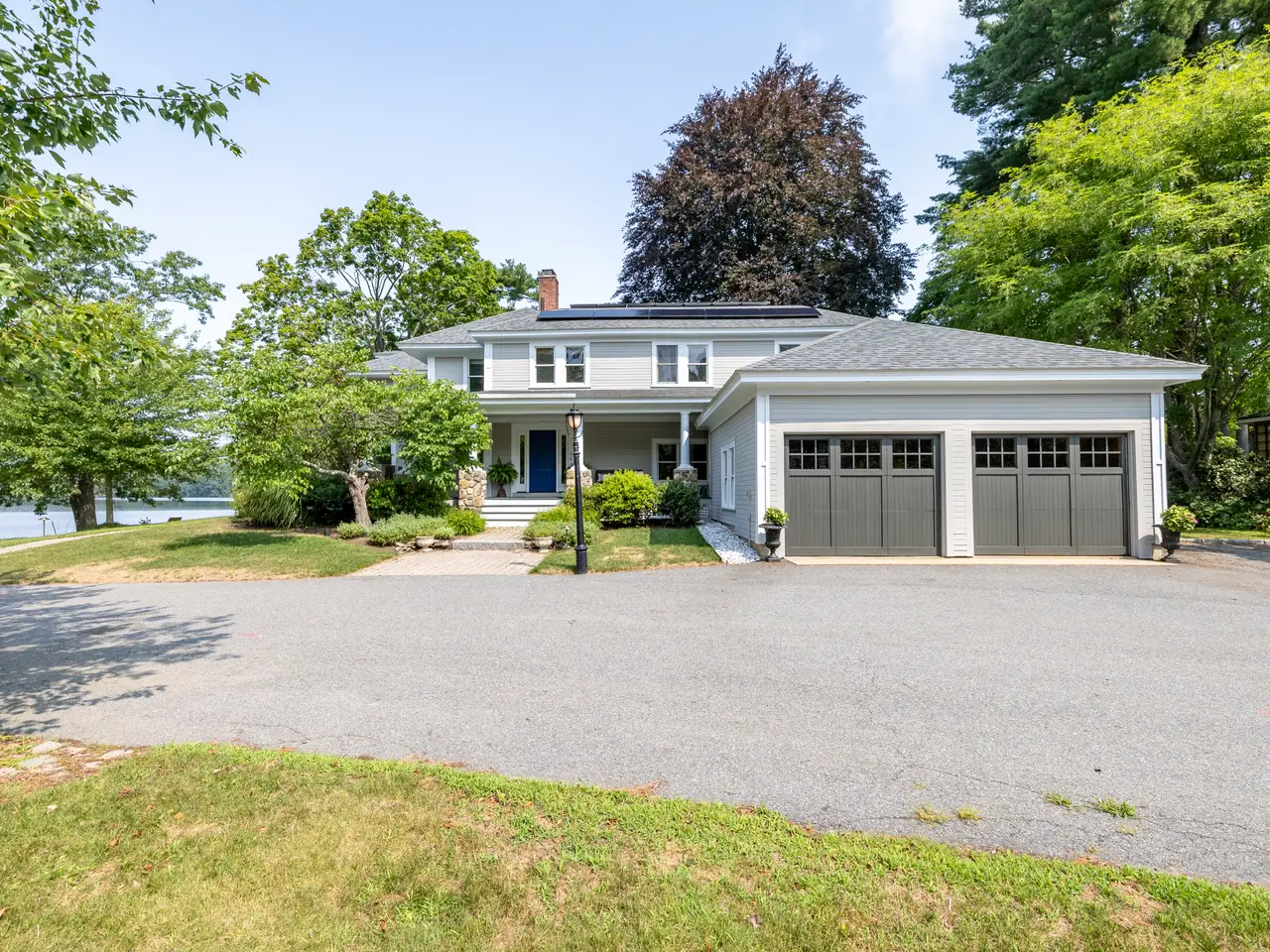 WATER VIEWS IN ANDOVER!! Welcome to this stunning Colonial home perched on a private peninsula with breathtaking panoramic views of Haggetts Pond. Thoughtfully designed for both comfort and luxury, this residence features a two-car garage, ample parking, and a sport court. Inside, the sun-filled living room with a dramatic stone fireplace, opens to a recently updated, eat-in chef's kitchen complete with high end, sleek stainless steel appliances. The finished lower level offers a spacious flex area ideal for a home gym, media room, or office. Wake up in your primary suite with water views in this true retreat, boasting a second stone fireplace, walk-in closet, and a spa-like bath with a jetted tub. Step outside to a wrap around porch for a relaxing afternoon overlooking Haggetts Pond that is perfect for entertaining. Energy-efficient solar panels add sustainability to style. All just moments to I-93, Indian Ridge Country Club, shopping, dining, and more—this rare waterfront gem offers it all!