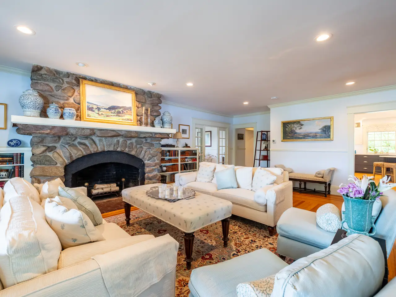 • Stone fireplaces in living room and primary suite