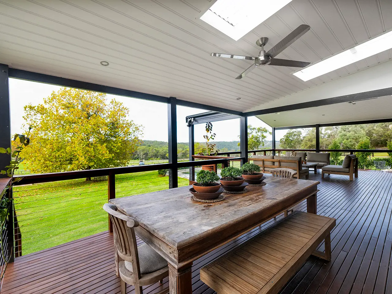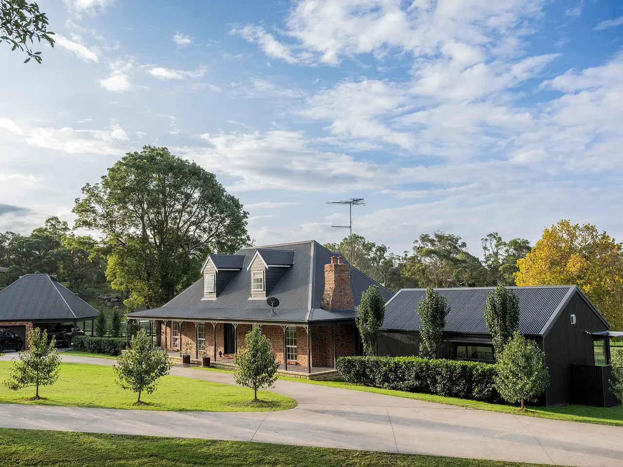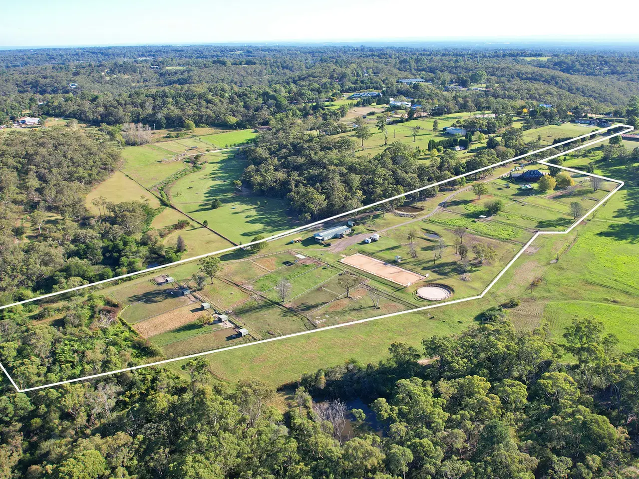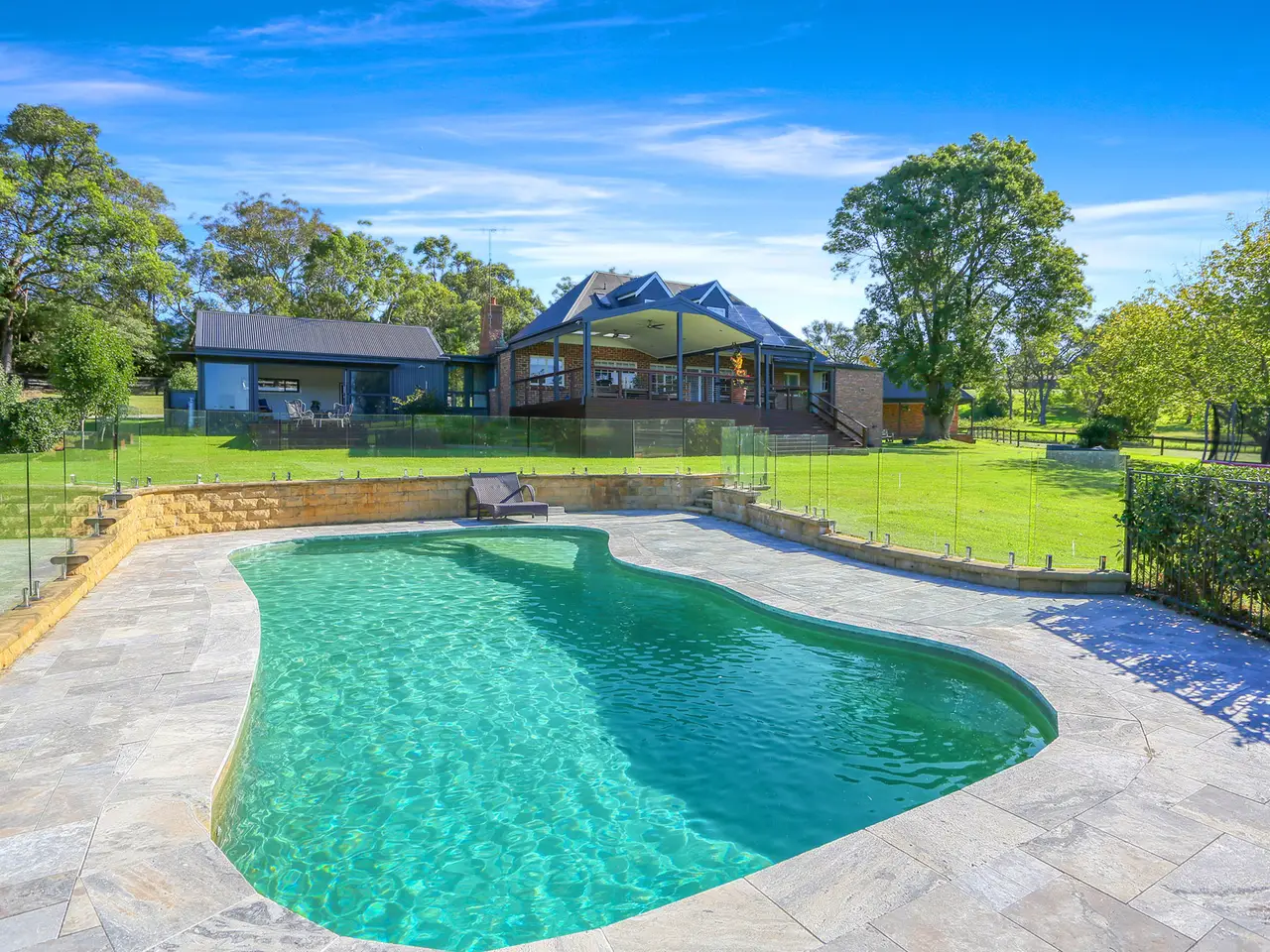 Set on 17.4 arable and flat acres, boasting spectacular views of the entire horse haven, this peaceful and private acreage sits high above Berowra Waters with views across the horizon. This signature farmhouse inspired residence melds seamlessly from the traditional to the modern extension and out to the grounds beyond through large glass openings. A warm yet sophisticated atmosphere, every window frames a picture-perfect landscape, inviting the stunning outdoors into your living space. Ideal for those with equestrian passion, there are endless paddocks, stables, a full sized arena and a round yard providing ample space for grazing and training. The gated country driveway opens a world away from the hustle of city living, yet conveniently located on Sydney's urban fringe a mere 50km to the CBD. Experience the perfect blend of luxury and rural charm, where every detail has been meticulously crafted to provide a lifestyle of peace, beauty, and endless possibilities. - Stunning Australian Colonial 5 bedroom homestead renovated in 2021 - Wraparound verandah leading to undercover alfresco deck boasting uninterrupted views - A modern living area featuring a high set covered ceiling, fireplace, timber floors looking out to the pool area - Secondary family area framed by a traditional ceiling rose and slow combustion fireplace - Farmhouse kitchen with stone benchtops, breakfast bar, gas cooking appliances and glass display cupboards - Home office on the ground level making working from home a breeze - Master suite comprises a walk-in wardrobe, ensuite and delightful, light-filled bay windows - Three additional bedrooms on ground floor, two with built in wardrobes - Recently renovated large main bathroom with signature granite tiling - Spacious laundry with external access and second toilet - 2 car automated garage with additional carport housing solar panels - Stylish inground chlorine pool framed by established gardens - 24 fully fenced, well draining, pasture rich horse paddocks - Flood lit 60m x 20m sand arena, oversized round yard with viewing platform - Colourbond shed comprises 6 stables, tack rooms, separate WC - Additional 2 bedroom grooms quarters with private verandah - Tree-lined concrete driveway to the gated entrance providing security - Concrete water tank 80,000litres and 1 connected to shed, licenced bore (no yearly fee) & dam