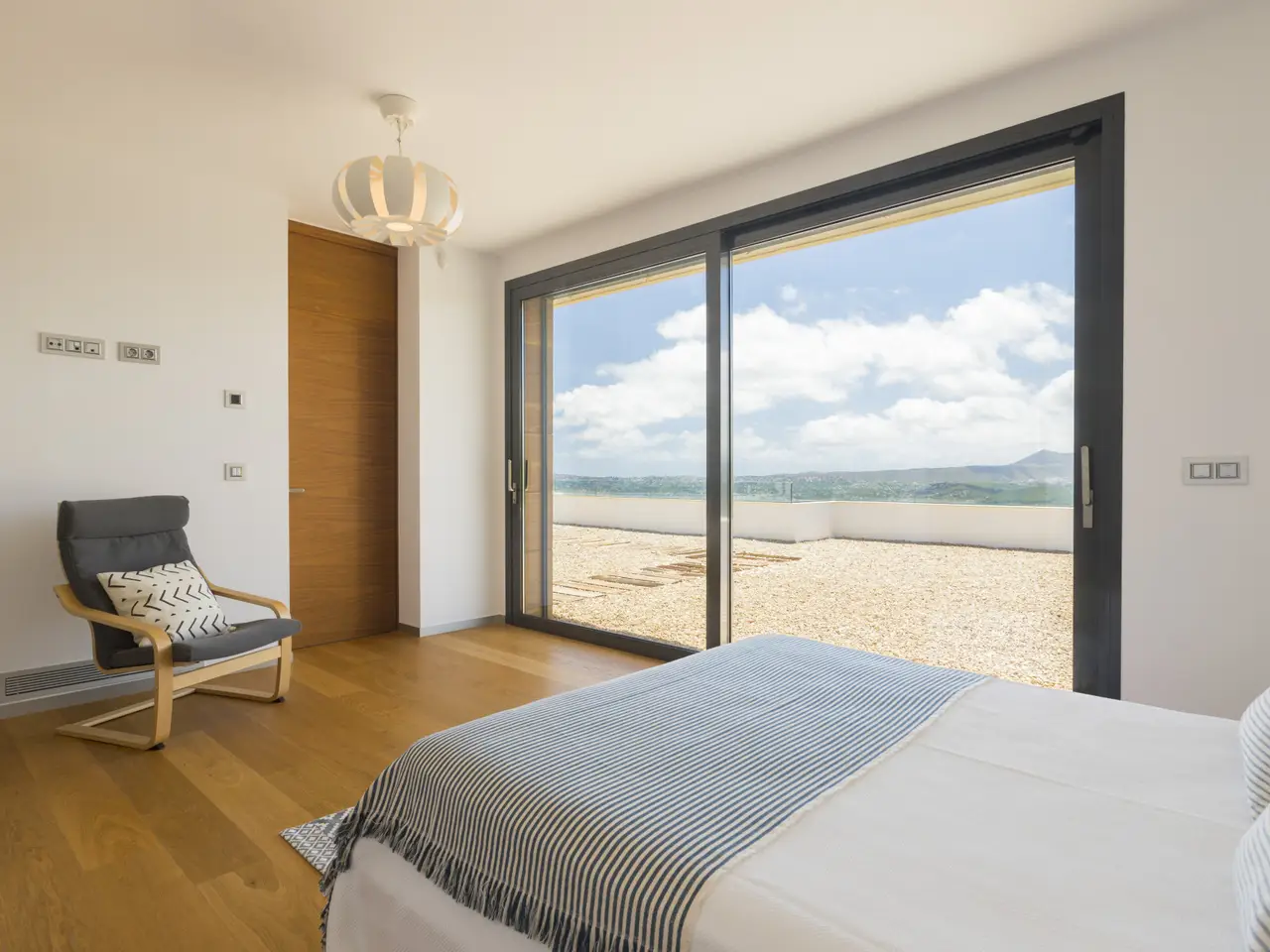 • Panoramic sea, mountain, and marina views