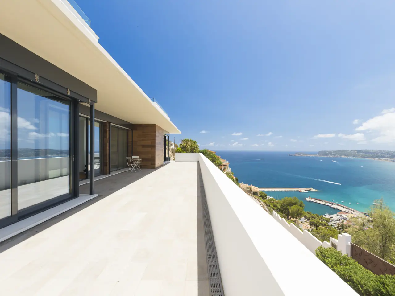 Located in the prestigious Cuesta San Antonio in Jávea, Alicante, this impressive villa offers a perfect combination of luxury and comfort. With a constructed area of 745 square meters and a plot of 1,920 square meters, this property stands out for its ample spaces and panoramic sea, mountain and marina views. The villa has four bedrooms and four bathrooms, plus a guest toilet, ideal for large families or for entertaining guests in total comfort. The villa is equipped with all modern comforts, including air conditioning, underfloor heating throughout. The kitchen is fully equipped and has a pantry and an additional laundry room. The property also features a Sonos home automation and audio system, electric blinds and double glazing, ensuring maximum comfort and energy efficiency. Outside, the villa offers a private garden with automatic irrigation system, a 12x4,5 salt water swimming pool and several terraces, both covered and uncovered, perfect to enjoy the Mediterranean climate. There is also a barbecue and a solarium, ideal for outdoor gatherings. Security is guaranteed with a security entrance, armoured doors, security shutters and an alarm system. The property has access from two streets. In one of the accesses is the garage, with space for four vehicles, and the other one is the garage for four cars. It has a wine cellar with automatic air renewal system. This luxury villa is in excellent condition and is partly furnished, ready to move into. Its location is unbeatable, close to the beach, the port, the town centre and schools, offering an exceptional quality of life built with top quality materials.
