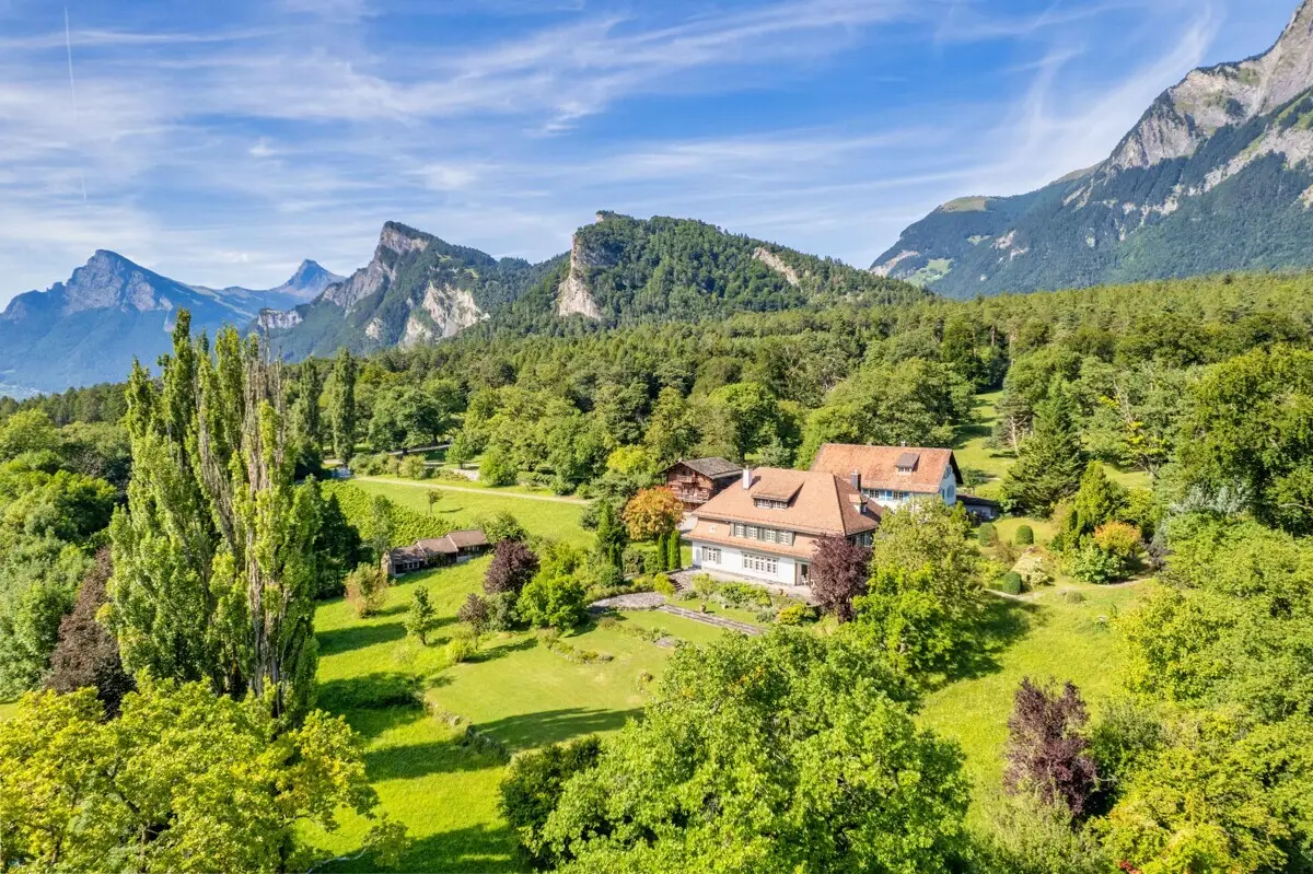 Far from the ordinary, ensconced within 1.5 hectares or more of untamed landscape: the estate stands in splendid isolation above the Bündner Herrschaft region – a place where space, stillness and unrestricted horizons come together. The private driveway, passing alongside a vineyard, already hints that this is no conventional home. What then reveals itself is a residence of undeniable presence – open to the landscape, pleasantly set back from the outside world. At its centre lies a magnificent country mansion dating from 1914, presenting around 500 square metres of living space. Its current condition opens the door to new architectural interpretations, whereby the solid, period character of the house serves as valuable foundation. A guest-house featuring a historic library, as well as a quaint chalet, complement the property and offer room for visitors, staff or additional living options – whether by virtue of a carefully considered update or newly reimagined. Benefitting from a southwest-facing aspect between the forests of Sankt Luzisteig and the vineyards of Maienfeld, the estate basks in exceptional amount of light from dawn until dusk. The generously laid out, park-like grounds include mature trees and woodland, while the harmonious integration into the surrounding landscape affords a close-to-nature living experience in an undisturbed setting with abundant space and unrivalled privacy. Views extend over the vineyards as far as the mountain ranges beyond – a vista that can hardly be bettered. What makes this prospect so special is not only its impressive size or location. It is the increasingly rare freedom to own a piece of land of this scale, this presence and this perspective. The kind of property that is increasingly rarely available – a place where you feel you have finally arrived. The property - Highly exclusive estate in the Bündner Herrschaft - In excess of 1000m2 of living space - Over 1.5 hectares of land with its own woodland - Exceptional privacy in park-like surroundings - Usable as primary or secondary residence - Additional buildings with development potential in the form of guest-house and chalet - Sunlight throughout the day and a temperate micro-climate - Unobstructed views of the surrounding mountains