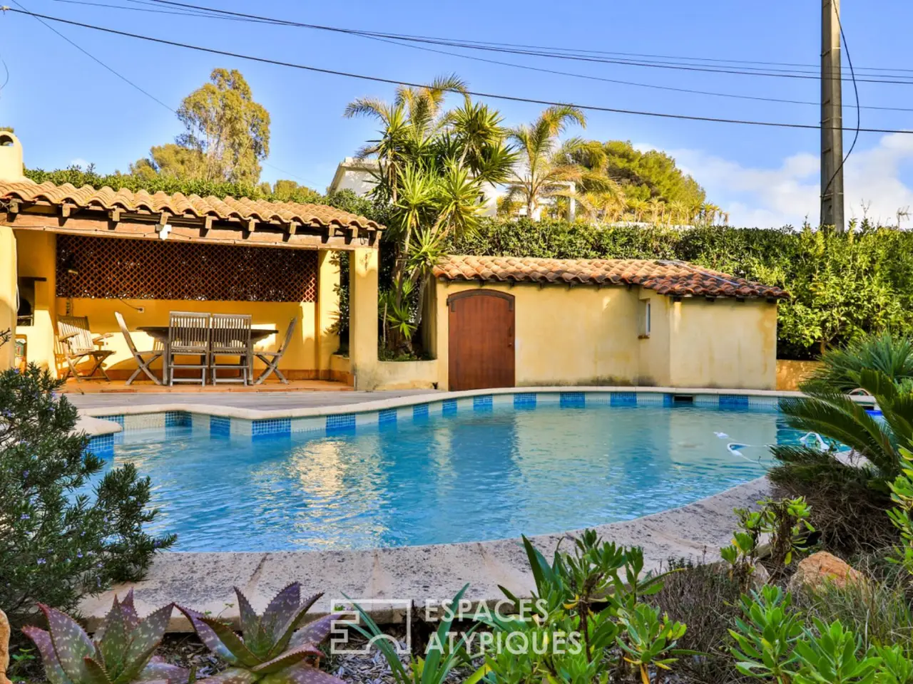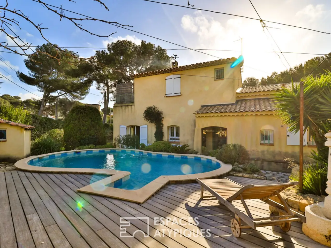 Open-air theater in the heart of La Cride In the heart of the very popular district of La Cride in Sanary sur mer, discover this green setting ensuring absolute calm and the sea at your feet less than 200 meters from a heavenly cove. Once the imposing gate is open, you enter a bubble of greenery where fig trees, olive trees and other Mediterranean species intermingle in a perfectly maintained flat garden of almost 1350m2. A beautiful pool area and pool house will punctuate your beautiful days and mild summer evenings. This regional house with a surface area of 250 m2 is currently divided into four dwellings, each of which is connected to one another. The first is spread over 95 m2 on the ground floor with a beautiful living room of 40m2 with a cathedral ceiling with its imposing fireplace bringing you the enveloping softness of its fireplace. The Victorian-style veranda will allow you to enjoy the view of this open-air theater in summer and winter alike. Three fully equipped and furnished homes are currently used for seasonal rental that can be modulated according to your desires to receive family and friends. A nice space is available to park several vehicles. Photovoltaic panels on the roof will allow you to be self-sufficient in electricity. This charming property is ideally located 10 minutes from the port, Bandol and motorway access. Airport 30 minutes away. TGV station 15 minutes away 'ENERGY CLASS: C 101 / CLIMATE CLASS: A 5. Estimated average amount of annual energy expenditure for standard use, based on energy prices for the year 2015: 1441.78 EUR' REF. 0707EV Additional information * 10 rooms * 5 bedrooms * Outdoor space : 1344 SQM * Parking : 5 parking spaces * Property tax : 3 280 €