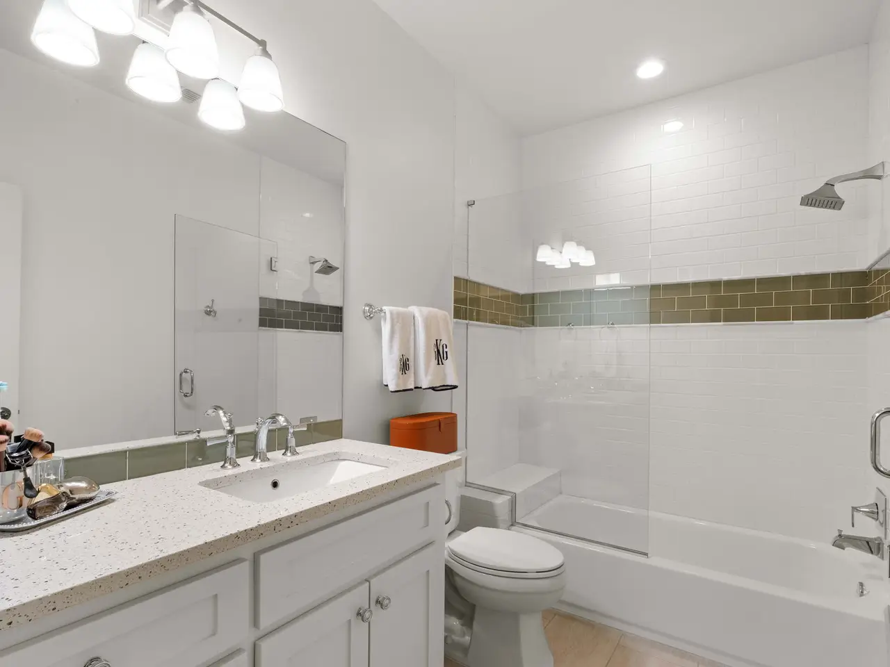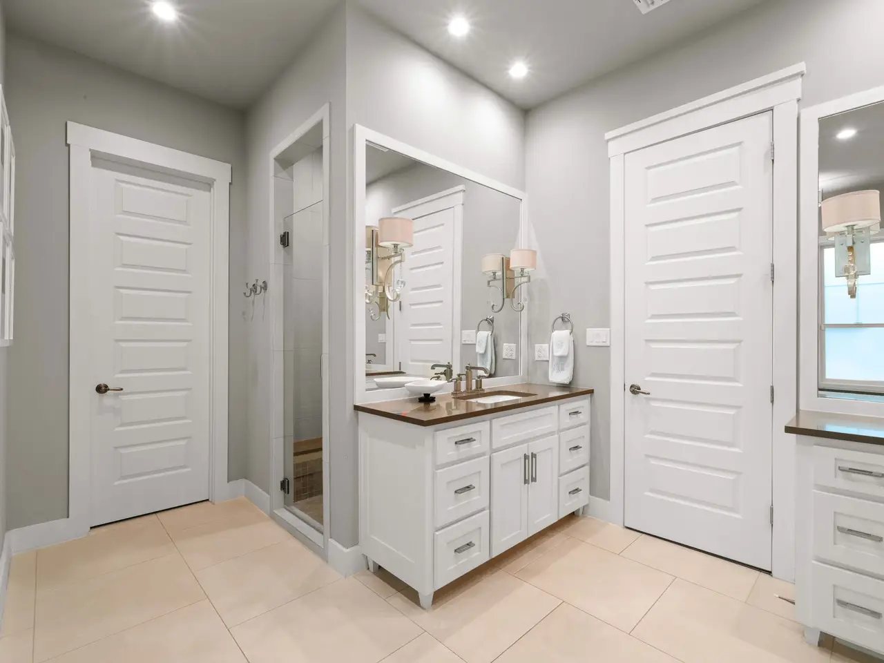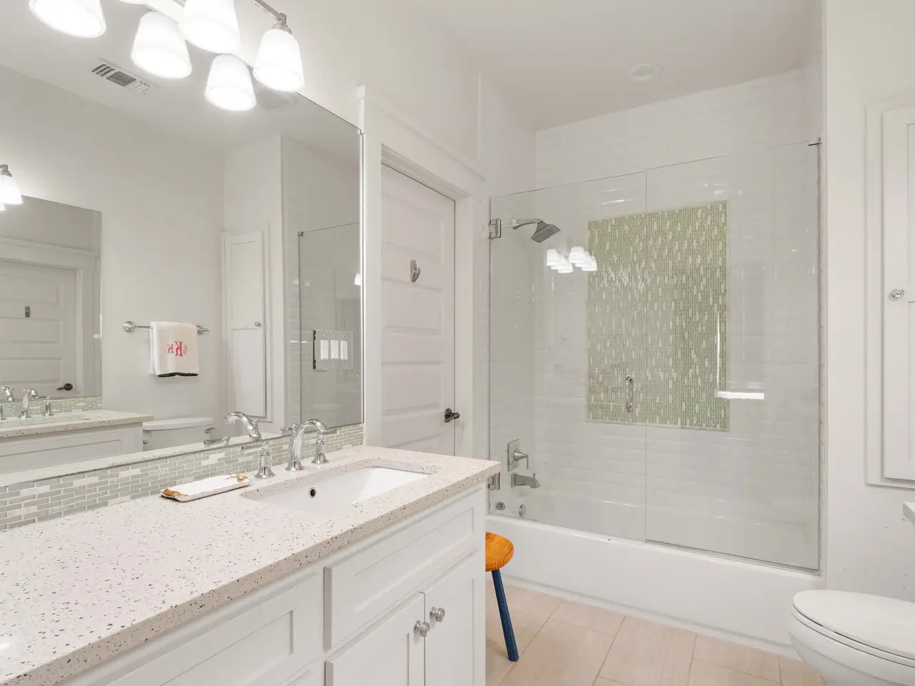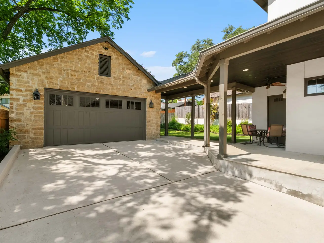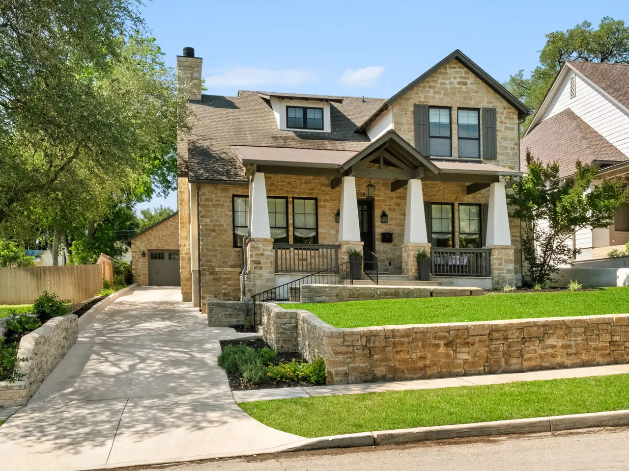 Sophisticated Alamo Heights Residence with Exceptional Design and Craftsmanship. Built in 2015 by renowned Dabney Homes and stylishly curated by Joyeux Home Decor, this stunning home blends timeless architecture with contemporary luxury. Immaculately maintained, it still shows like new. Step onto the inviting, stone-accented covered veranda and into a modern transitional floorplan designed for both refined living and effortless entertaining. The open-concept layout flows seamlessly from an expansive living and dining area into a showstopping chef's kitchen, featuring a quartzite island, premium Thermador appliances, and gas cooking. The main level includes a serene primary suite with spa-inspired bath, dual vanities, soaking tub, oversized walk-in shower, and two generous walk-in closets. A private guest suite with full bath, plus a flexible study or additional living area, completes the first floor. Upstairs, find three spacious bedrooms, two full baths, and a versatile game/media room offering endless possibilities. Additional highlights include a pass-through two-car garage with convenient street and alley access, offering ample parking for family and guests.