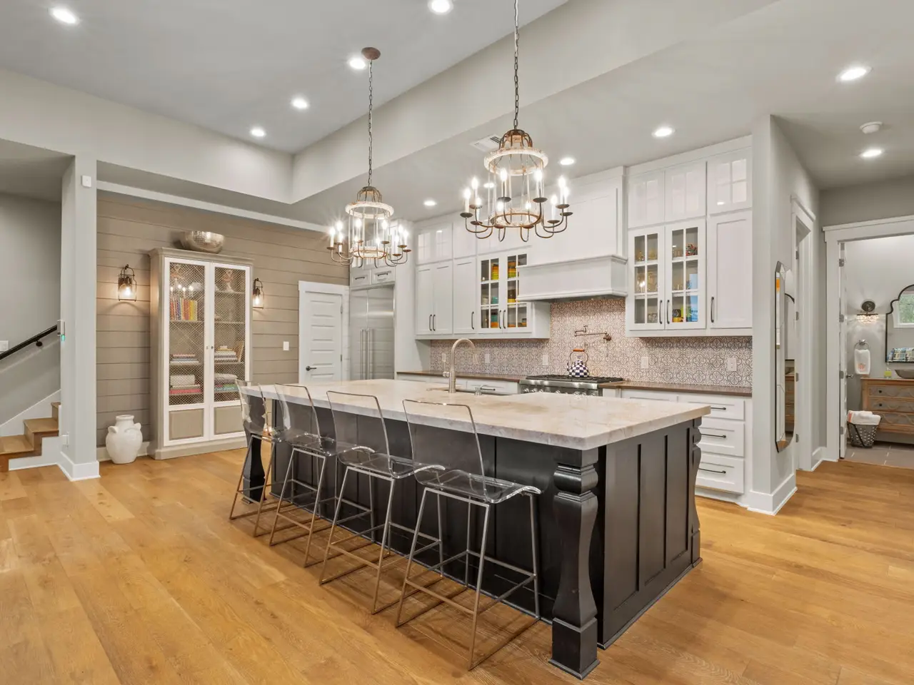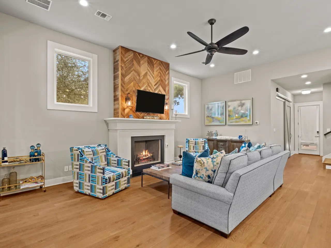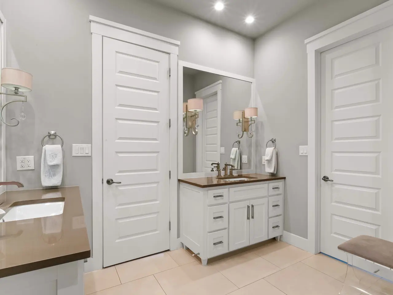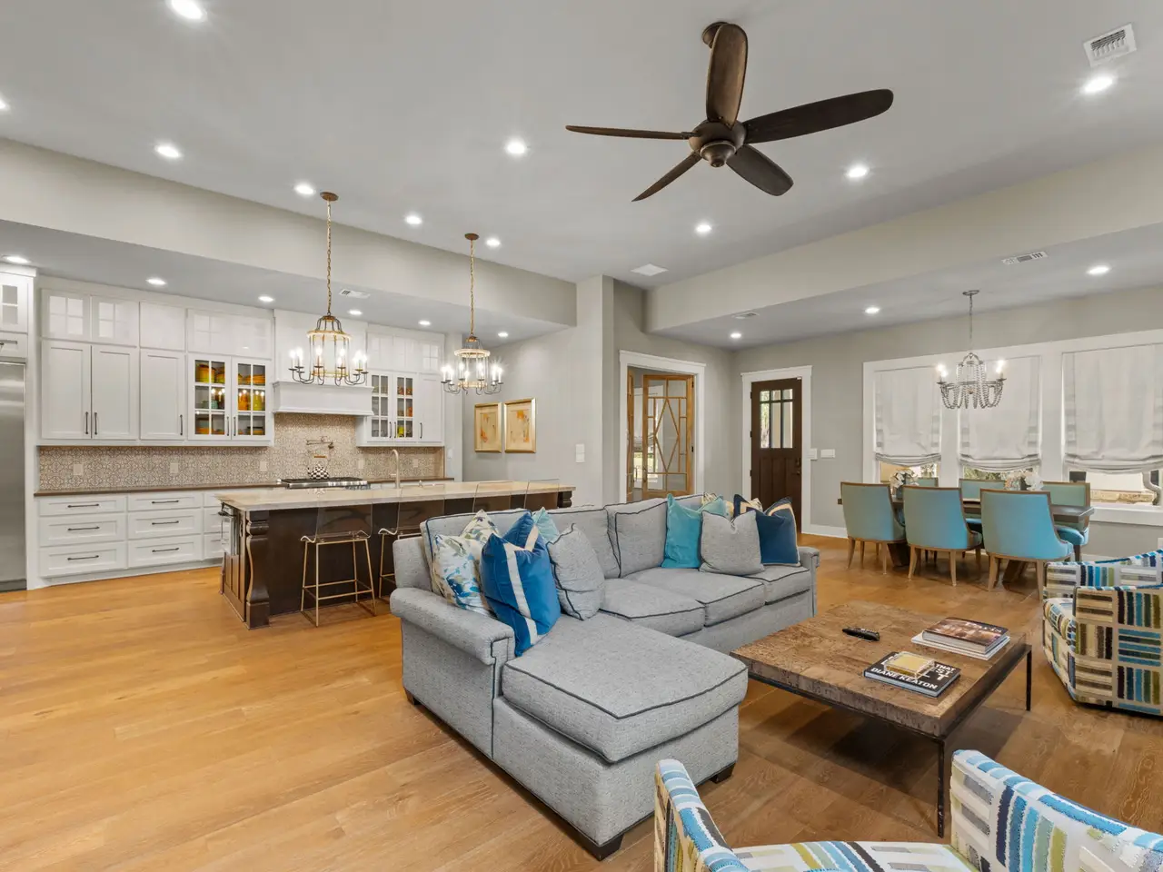 Sophisticated Alamo Heights Residence with Exceptional Design and Craftsmanship. Built in 2015 by renowned Dabney Homes and stylishly curated by Joyeux Home Decor, this stunning home blends timeless architecture with contemporary luxury. Immaculately maintained, it still shows like new. Step onto the inviting, stone-accented covered veranda and into a modern transitional floorplan designed for both refined living and effortless entertaining. The open-concept layout flows seamlessly from an expansive living and dining area into a showstopping chef's kitchen, featuring a quartzite island, premium Thermador appliances, and gas cooking. The main level includes a serene primary suite with spa-inspired bath, dual vanities, soaking tub, oversized walk-in shower, and two generous walk-in closets. A private guest suite with full bath, plus a flexible study or additional living area, completes the first floor. Upstairs, find three spacious bedrooms, two full baths, and a versatile game/media room offering endless possibilities. Additional highlights include a pass-through two-car garage with convenient street and alley access, offering ample parking for family and guests.