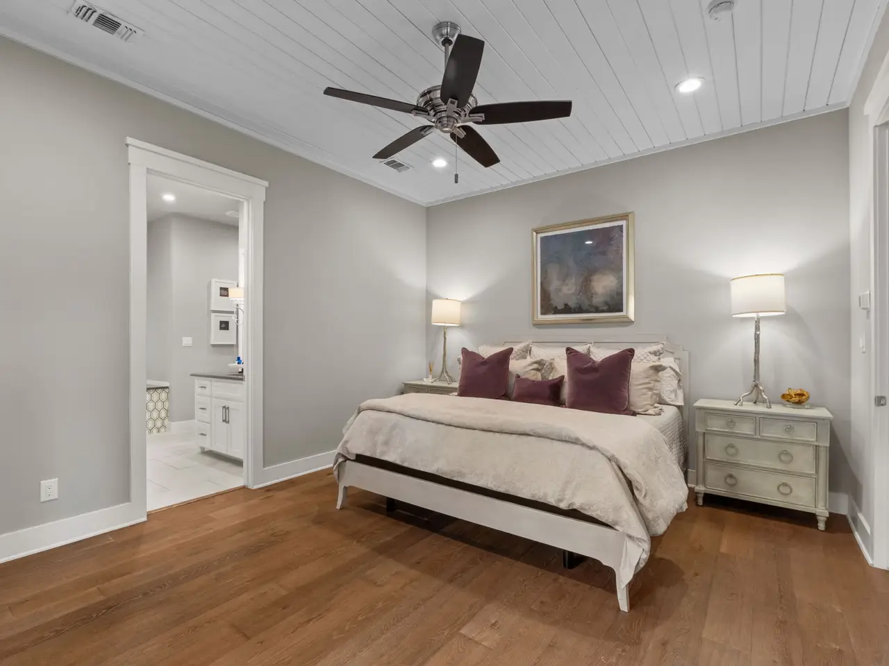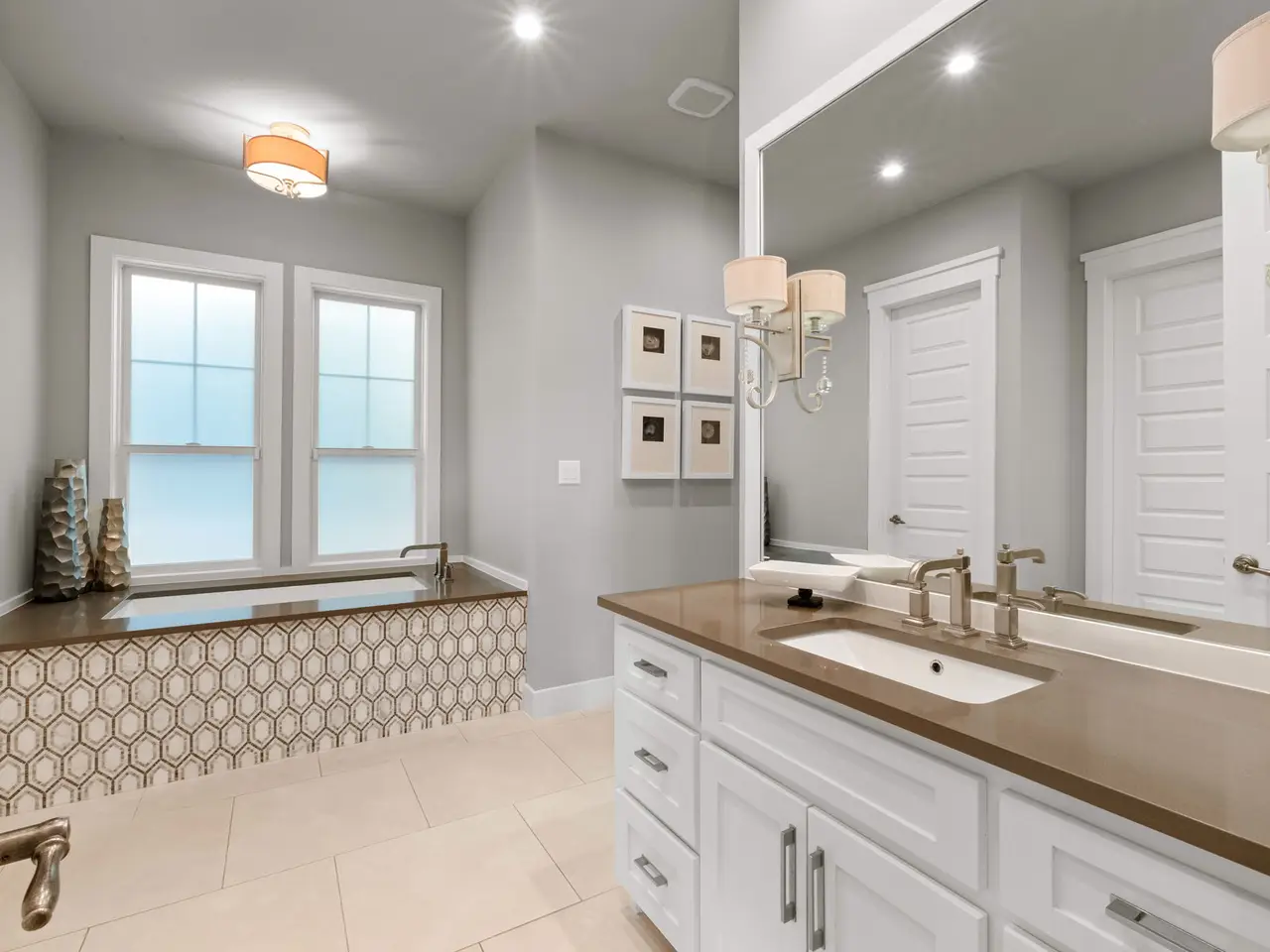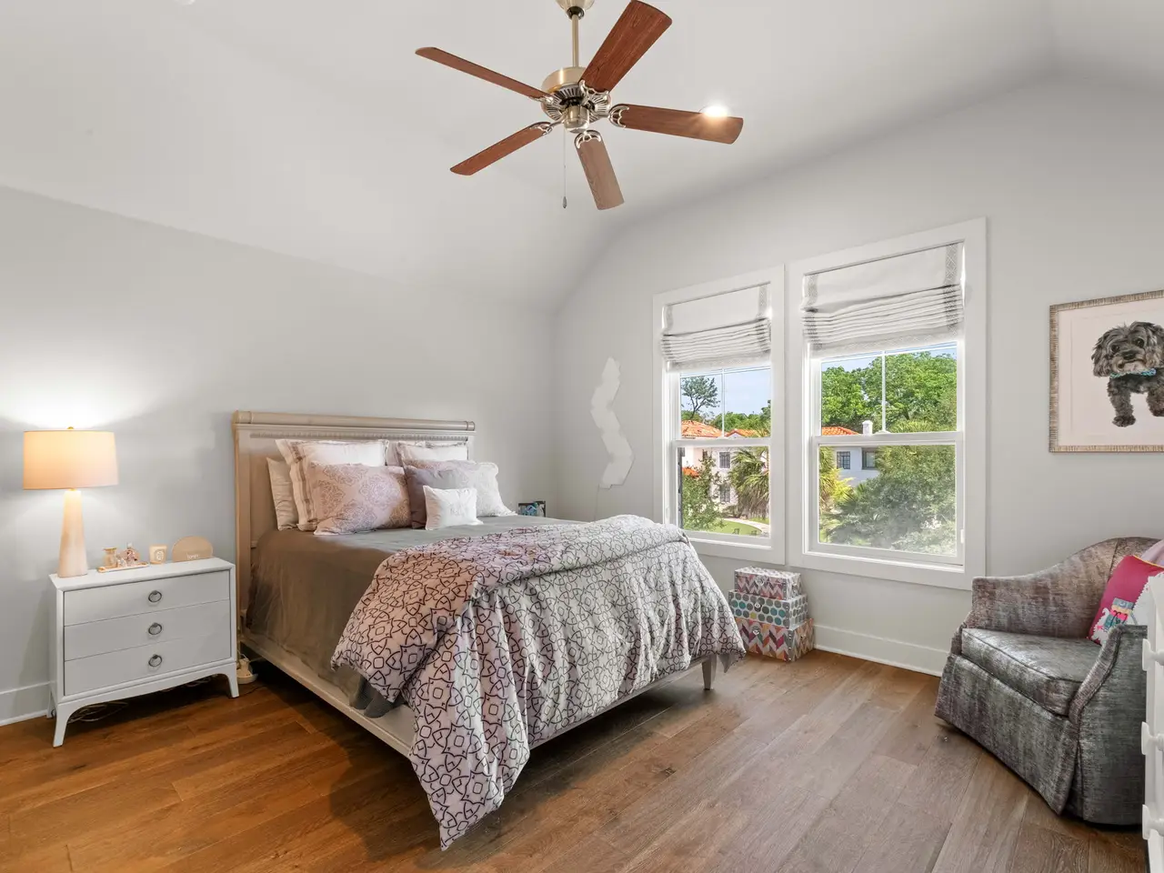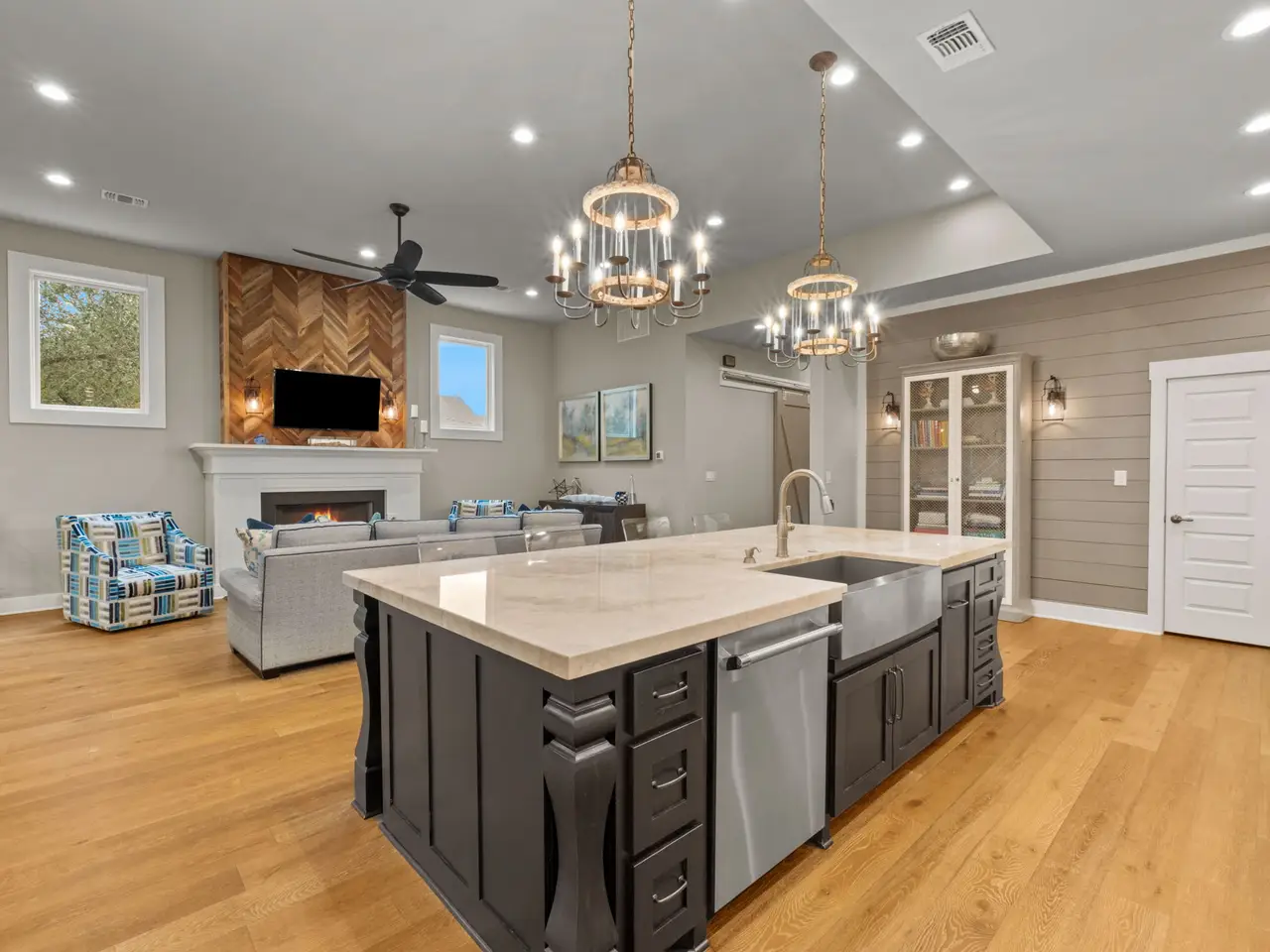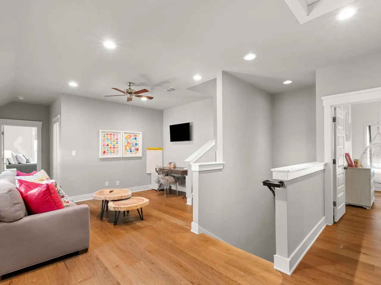 Sophisticated Alamo Heights Residence with Exceptional Design and Craftsmanship. Built in 2015 by renowned Dabney Homes and stylishly curated by Joyeux Home Decor, this stunning home blends timeless architecture with contemporary luxury. Immaculately maintained, it still shows like new. Step onto the inviting, stone-accented covered veranda and into a modern transitional floorplan designed for both refined living and effortless entertaining. The open-concept layout flows seamlessly from an expansive living and dining area into a showstopping chef's kitchen, featuring a quartzite island, premium Thermador appliances, and gas cooking. The main level includes a serene primary suite with spa-inspired bath, dual vanities, soaking tub, oversized walk-in shower, and two generous walk-in closets. A private guest suite with full bath, plus a flexible study or additional living area, completes the first floor. Upstairs, find three spacious bedrooms, two full baths, and a versatile game/media room offering endless possibilities. Additional highlights include a pass-through two-car garage with convenient street and alley access, offering ample parking for family and guests.
