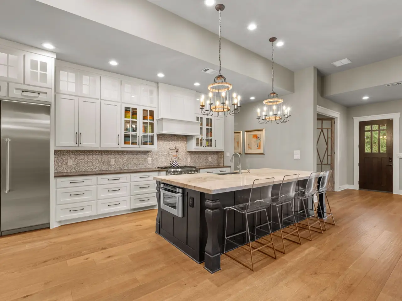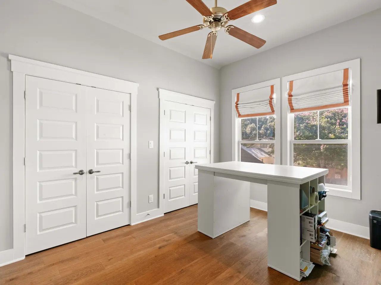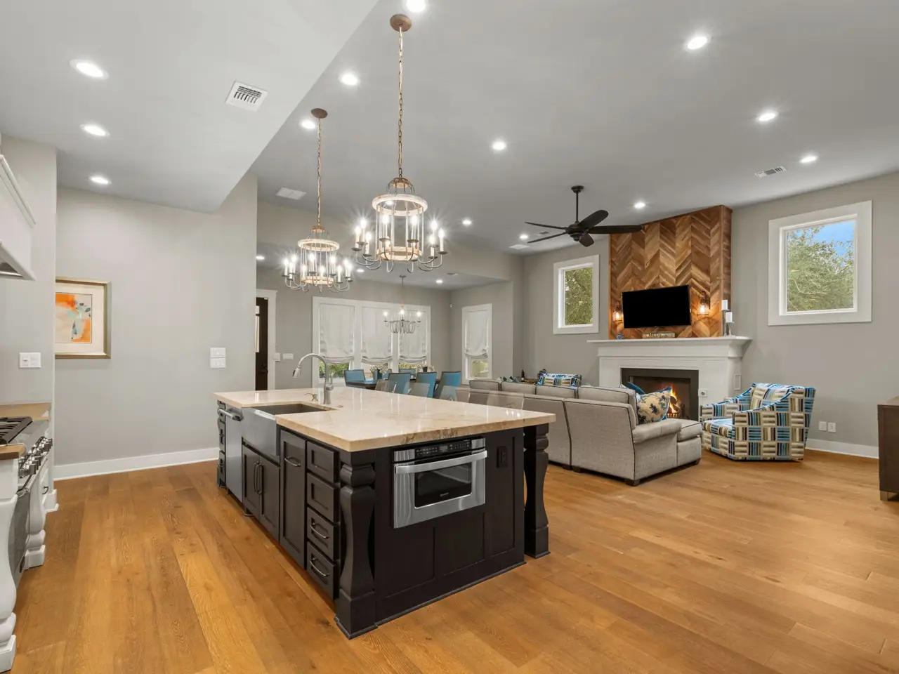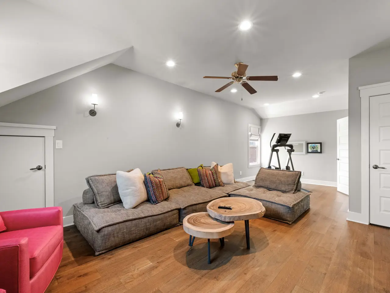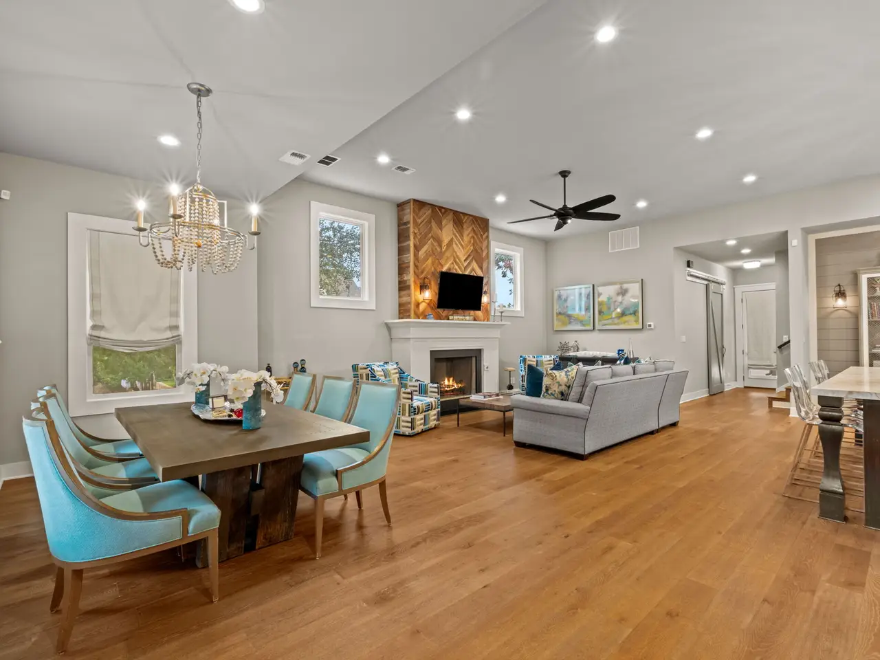 Sophisticated Alamo Heights Residence with Exceptional Design and Craftsmanship. Built in 2015 by renowned Dabney Homes and stylishly curated by Joyeux Home Decor, this stunning home blends timeless architecture with contemporary luxury. Immaculately maintained, it still shows like new. Step onto the inviting, stone-accented covered veranda and into a modern transitional floorplan designed for both refined living and effortless entertaining. The open-concept layout flows seamlessly from an expansive living and dining area into a showstopping chef's kitchen, featuring a quartzite island, premium Thermador appliances, and gas cooking. The main level includes a serene primary suite with spa-inspired bath, dual vanities, soaking tub, oversized walk-in shower, and two generous walk-in closets. A private guest suite with full bath, plus a flexible study or additional living area, completes the first floor. Upstairs, find three spacious bedrooms, two full baths, and a versatile game/media room offering endless possibilities. Additional highlights include a pass-through two-car garage with convenient street and alley access, offering ample parking for family and guests.