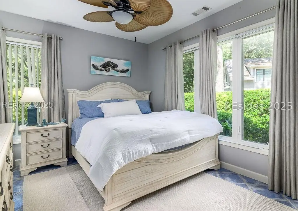 Experience Seaside Living in Port Royal Plantation! Welcome to 2 Resolute Place, perfectly positioned just across the street from a beach path leading to the Atlantic Ocean in the coveted Port Royal Plantation. This stately single-story home features a freshly painted exterior, a circular front drive for guests, and a private owners side-entry two-car garage. Inside, the open floor plan centers around spacious gathering areas, with the primary ensuite tucked privately on one side of the home and guest suites/flex room on the other ideal for hosting family and friends. High ceilings, 8' doors, stone counters, and expansive windows bring in natural light and frame views of the deck, hot tub, and outdoor firepit. A lush living wall of greenery ensures seclusion perfect for peaceful relaxation or lively lawn games. Residents of Port Royal enjoy an enriched coastal lifestyle with a private Beach House, community pool, pickleball, tennis, gardening areas, and leisure trails. Membership at the Port Royal Golf Club is available à la carte, offering championship golf, clubhouse dining, a full-service pro shop, and more. Your seaside retreat awaits.