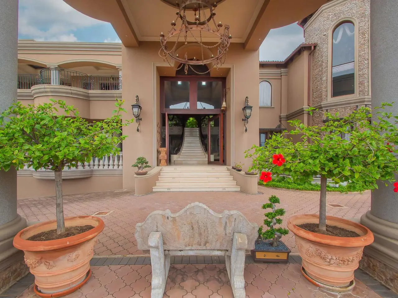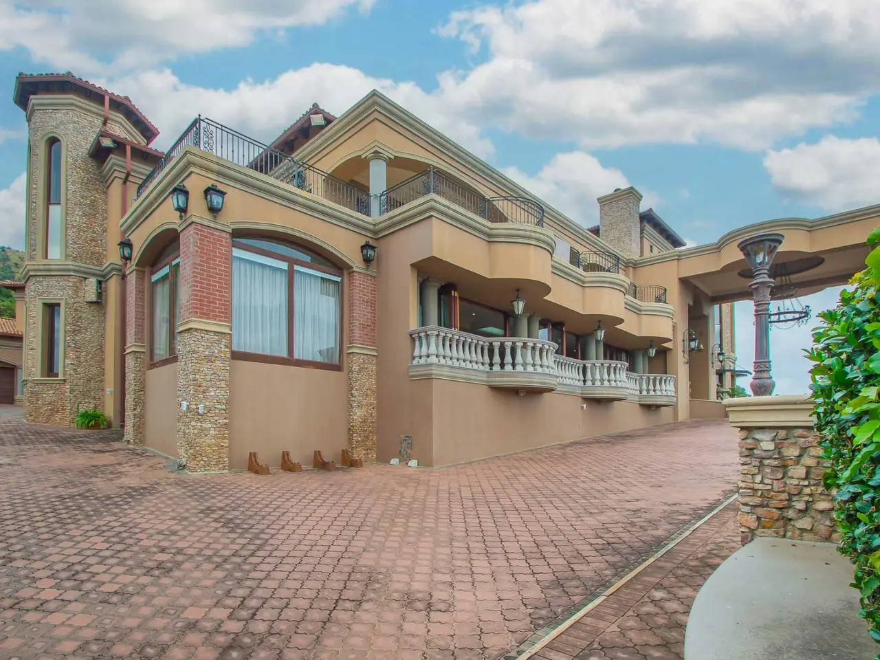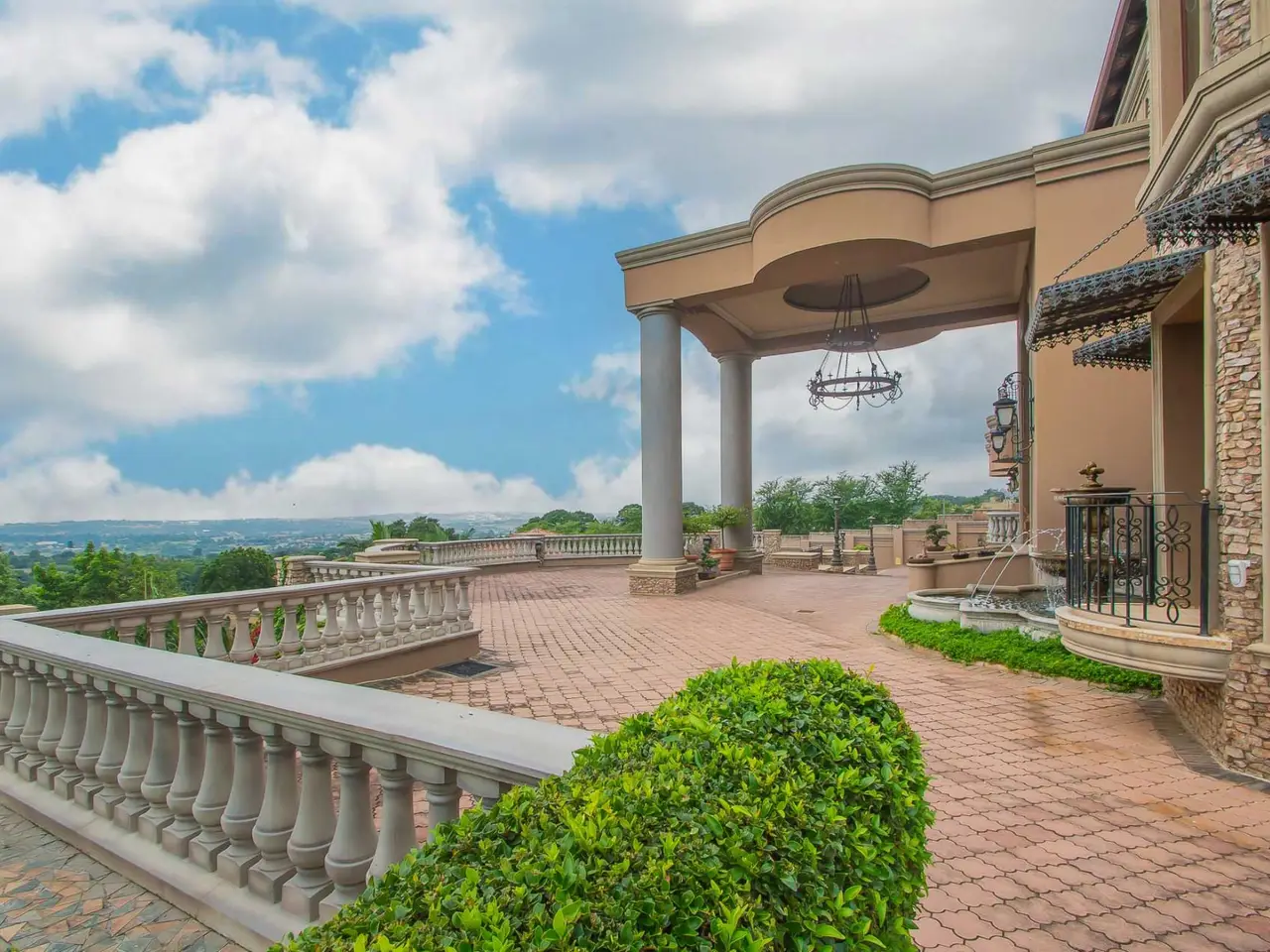 Positioned high against the slopes of the West Rand mountains, this landmark estate invites you into a world of refined luxury, expansive entertainment spaces, and unrivalled views stretching across Gauteng. This multi-residence property is thoughtfully designed for effortless living and exceptional hosting, offering a harmonious blend of lifestyle and functionality across the Main Villa, Pool House, Guest House, and a fully-equipped Office BuildingGÇöall privately set within lush landscaped grounds. The Main Villa greets you with a grand double-volume entrance, sweeping staircase, and statement chandelier. Designed around flow and connection, the open-plan living and dining spaces lead to a panoramic balcony with built-in braai, perfect for enjoying twilight dinners over the cityscape. A state-of-the-art cinema room, climate-controlled wine cellar, Jacuzzi room, and chefGÇÖs kitchen (complete with pizza oven and scullery) cater to every indulgence. The ground floor also features two elegant guest suites and triple double garages with space for six vehicles. Upstairs, accessible by staircase or elevator, the luxurious main suite offers a walk-in wardrobe, private balcony, and spa-like bathroom. Two additional en-suite bedrooms each have their own balconies, with one including a private sauna for the ultimate in-home relaxation. The Pool House is an entertainer's dream: a cinematic experience with a 180-inch screen and Dolby surround sound, full bar, automated blinds, and stacking doors opening to a fire-lit boma and sparkling resort-style pool. The adjacent Guest House offers open-plan living with a modern kitchen, two well-appointed bedrooms, and easy flow to the entertainment areas - ideal for extended family or VIP guests. A separate Office Building includes a reception area, two private offices, a boardroom, built-in bar, and kitchen - perfect for business owners who want to blend work and luxury living. Additional features include a Sun City-inspired pool, Jacuzzi, tranquil water features, lush gardens, borehole, 1000kva generator, dog kennels, veggie garden, staff accommodation for three, and a fully secured perimeter with cameras, alarm, and a guardhouse. With smart home automation, integrated audio, automated lighting, and WiFi throughout, this property represents the cutting edge of both comfort and design. This villa is more than a home - it's a statement. Designed for those who appreciate excellence, privacy, and unforgettable entertaining, this is a once-in-a-lifetime opportunity to own one of Gauteng's most iconic lifestyle estates.
