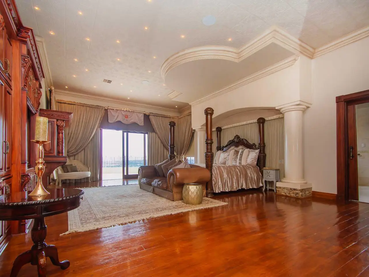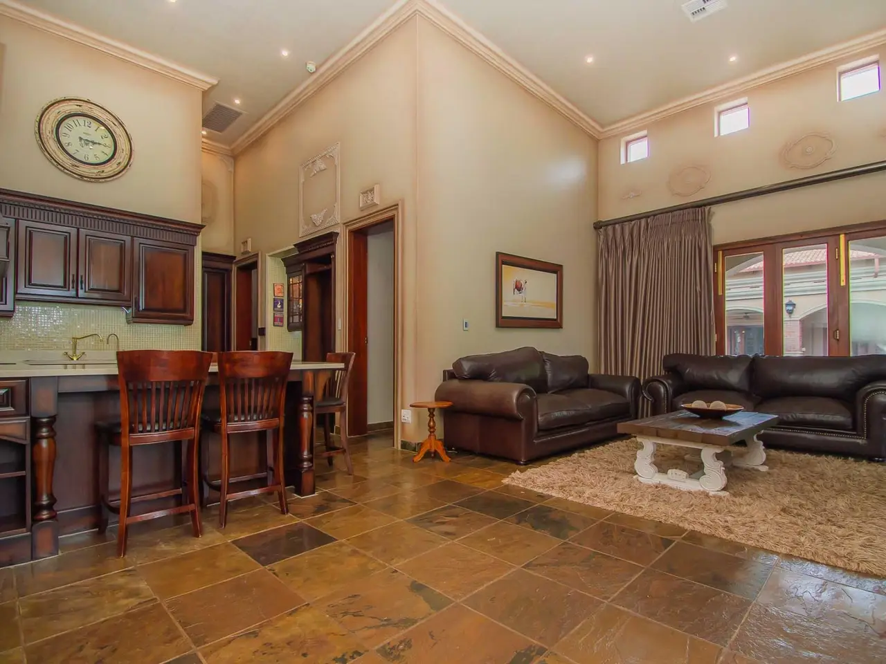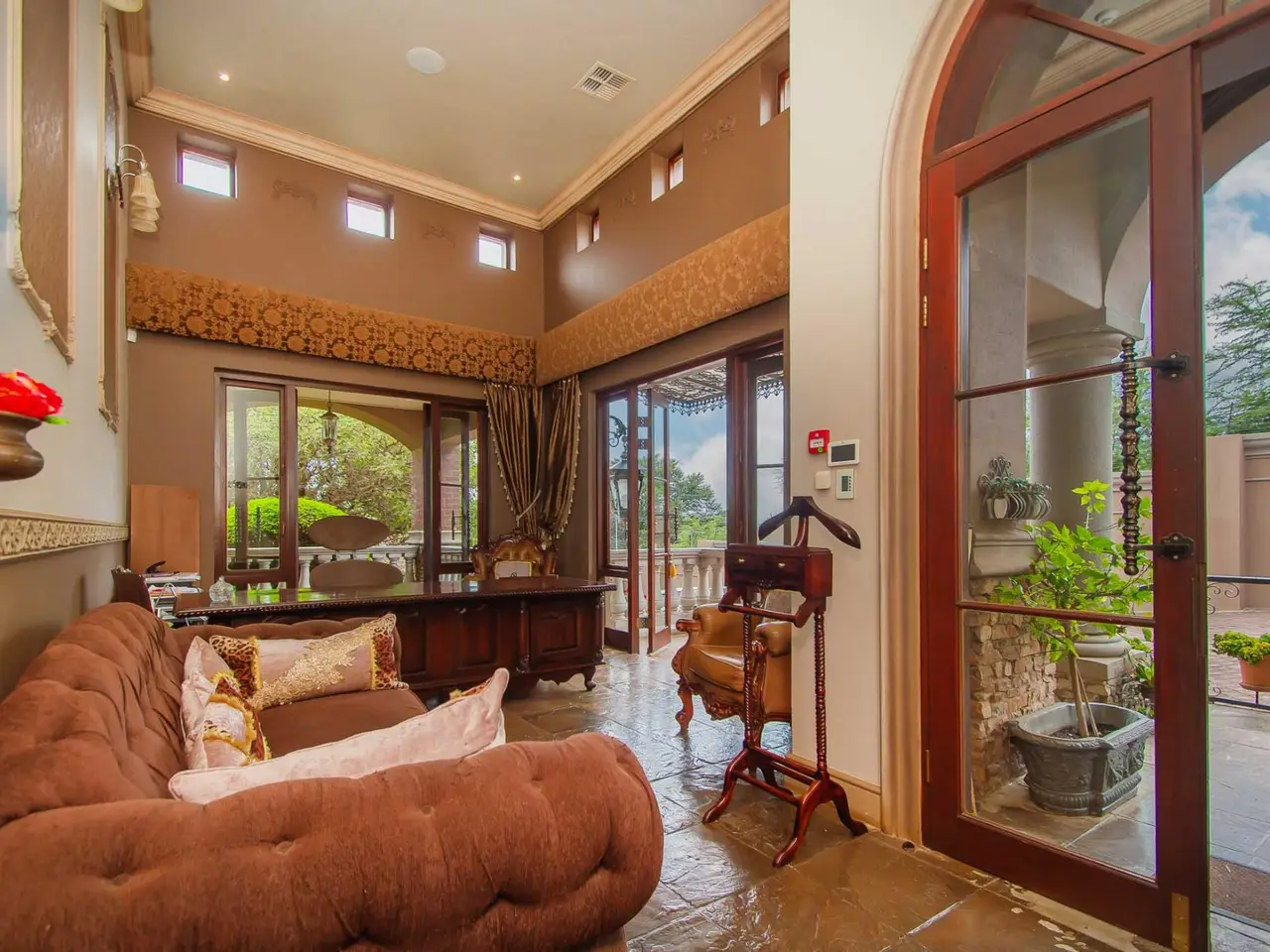 Positioned high against the slopes of the West Rand mountains, this landmark estate invites you into a world of refined luxury, expansive entertainment spaces, and unrivalled views stretching across Gauteng. This multi-residence property is thoughtfully designed for effortless living and exceptional hosting, offering a harmonious blend of lifestyle and functionality across the Main Villa, Pool House, Guest House, and a fully-equipped Office BuildingGÇöall privately set within lush landscaped grounds. The Main Villa greets you with a grand double-volume entrance, sweeping staircase, and statement chandelier. Designed around flow and connection, the open-plan living and dining spaces lead to a panoramic balcony with built-in braai, perfect for enjoying twilight dinners over the cityscape. A state-of-the-art cinema room, climate-controlled wine cellar, Jacuzzi room, and chefGÇÖs kitchen (complete with pizza oven and scullery) cater to every indulgence. The ground floor also features two elegant guest suites and triple double garages with space for six vehicles. Upstairs, accessible by staircase or elevator, the luxurious main suite offers a walk-in wardrobe, private balcony, and spa-like bathroom. Two additional en-suite bedrooms each have their own balconies, with one including a private sauna for the ultimate in-home relaxation. The Pool House is an entertainer's dream: a cinematic experience with a 180-inch screen and Dolby surround sound, full bar, automated blinds, and stacking doors opening to a fire-lit boma and sparkling resort-style pool. The adjacent Guest House offers open-plan living with a modern kitchen, two well-appointed bedrooms, and easy flow to the entertainment areas - ideal for extended family or VIP guests. A separate Office Building includes a reception area, two private offices, a boardroom, built-in bar, and kitchen - perfect for business owners who want to blend work and luxury living. Additional features include a Sun City-inspired pool, Jacuzzi, tranquil water features, lush gardens, borehole, 1000kva generator, dog kennels, veggie garden, staff accommodation for three, and a fully secured perimeter with cameras, alarm, and a guardhouse. With smart home automation, integrated audio, automated lighting, and WiFi throughout, this property represents the cutting edge of both comfort and design. This villa is more than a home - it's a statement. Designed for those who appreciate excellence, privacy, and unforgettable entertaining, this is a once-in-a-lifetime opportunity to own one of Gauteng's most iconic lifestyle estates.