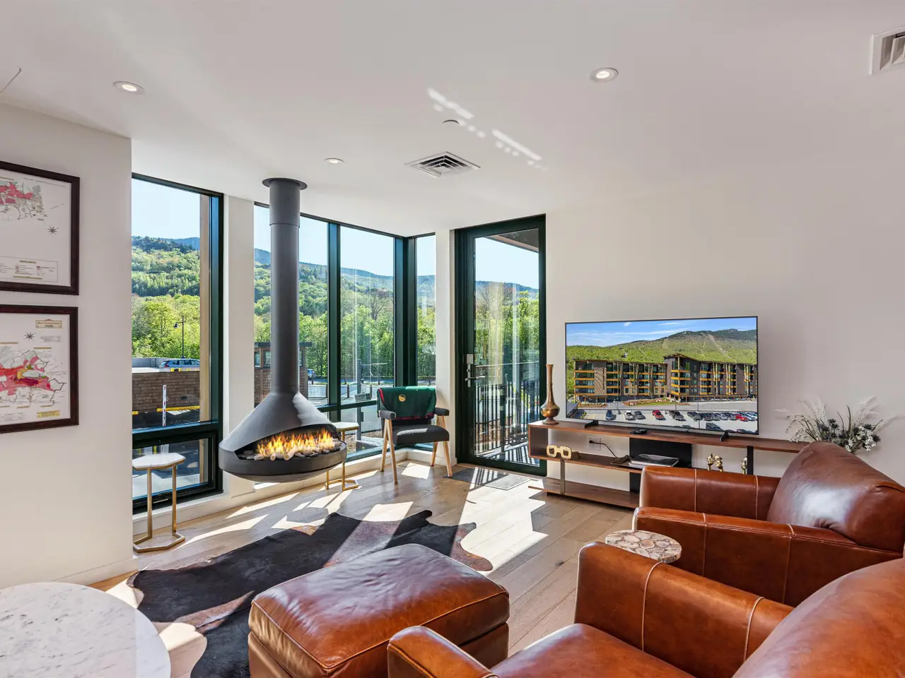 Welcome to your modern alpine retreat at Stowe’s premier resort address. Located slope-side in Spruce Peak Village, this impeccably designed TreeHouse condo places you steps from the ski lifts, village green, skating rink, restaurants, and year-round adventure. This 3 bedroom, 3 bathroom residence combines contemporary mountain design with luxurious functionality. Sold fully furnished and offering rental income potential, it’s equally suited for personal enjoyment or effortless hosting. With ski-in/ski-out access, a heated garage parking space, and exclusive owner amenities, this is true turn-key mountain living. Highlights: • Three spacious bedrooms, including two en-suite baths • Sleeps up to 10 guests • Sleek, modern kitchen with Bosch appliances • Bright open-concept living area with private balcony and mountain views • In-unit washer/dryer and generous storage throughout. Ownership Benefits: • Reserved underground heated parking • Access to ski valet, spa, heated pool, hot tub, and fitness center • All-electric, energy-efficient construction • Walkable to year-round dining, concerts, and recreation • Golf, tennis, and pickleball courts just moments away. Perfectly positioned in Stowe’s only slope-side resort village, TreeHouse offers a rare opportunity to own new construction in a vibrant, four-season destination. From first tracks to summer sunsets, every day here delivers something unforgettable. Opportunities like this are limited-schedule your private showing today.
