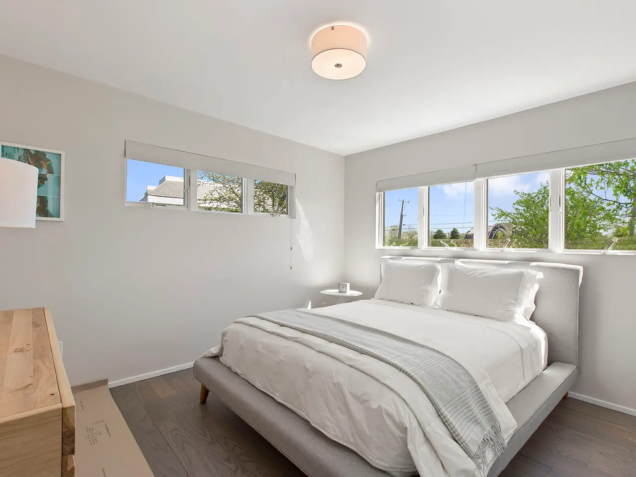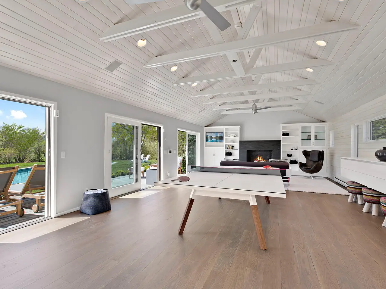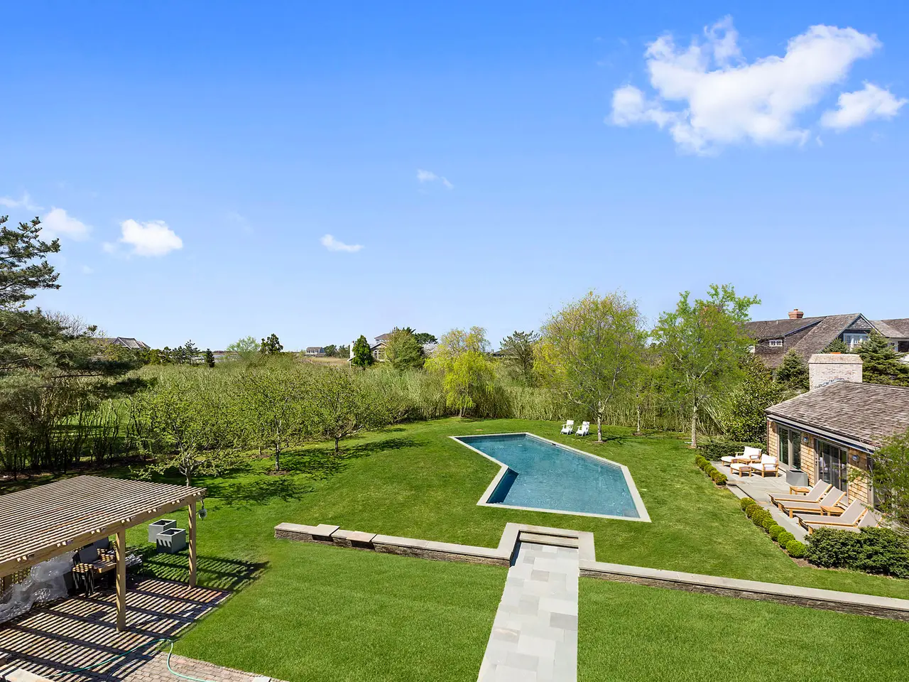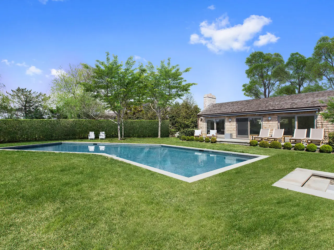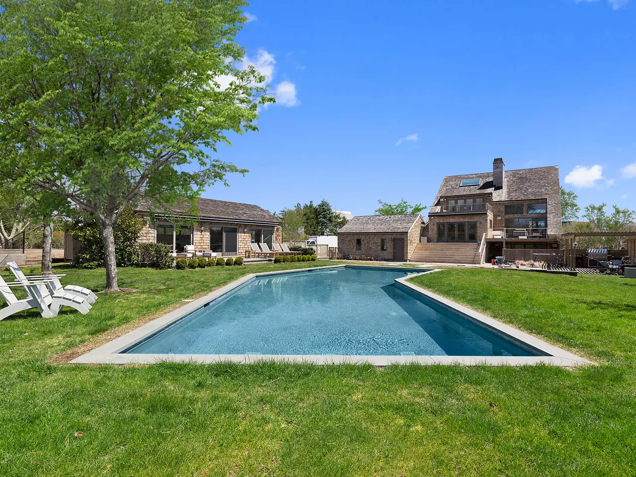 Bridgehampton South area, just a few blocks from the ocean, lies this exquisite turnkey beach house at 400 Jobs Lane. Set on nearly an acre of land with expansive lawns, a perfectly manicured landscape, gunite pool, incredible pool house, outdoor shower, bocce court, and a 3,000+/- sf home offering three bedrooms, three full baths, and one half bath. The first floor features an open floor plan for modern living and entertaining. The living room, with its double-height ceilings, creates a light and airy atmosphere. The eat-in kitchen is a chef's dream, with top of the line appliances and fine finishes. Adjacent to the kitchen is a dining area that seamlessly opens to expansive decking and patio areas, along with the outdoor kitchen. Upstairs, the generous primary bedroom overlooks Mecox Bay and the beautifully landscaped backyard, with a private balcony, great for morning coffee. The second and third bedrooms are equally spacious, providing comfort and privacy. The meticulously maintained grounds are a true oasis with a 50-foot heated gunite pool, spacious pool house, complete with high ceiling, fireplace, game area, and a full bath. For those who enjoy outdoor activities, there's a bocce court, and the attached two-car garage provides ample storage and parking. This turnkey, Bridgehampton South beach house is just a few blocks from Mecox Ocean Beach as well as from the area's charming shops and fine dining making it the perfect retreat for those seeking both tranquility and accessibility. Experience the epitome of Hamptons at 400 Jobs Lane, where every detail has been thoughtfully designed to offer comfort, style, and elegance.