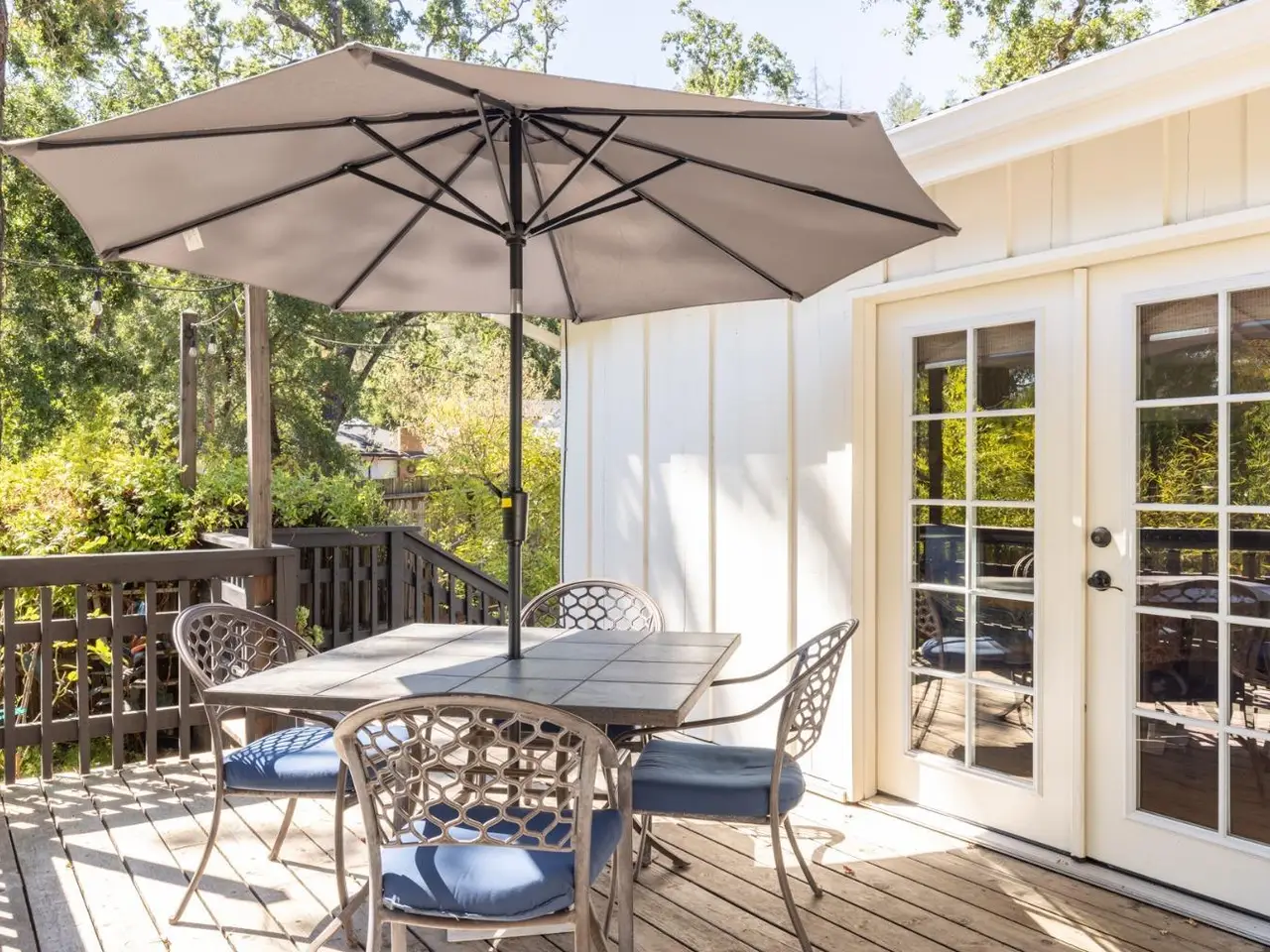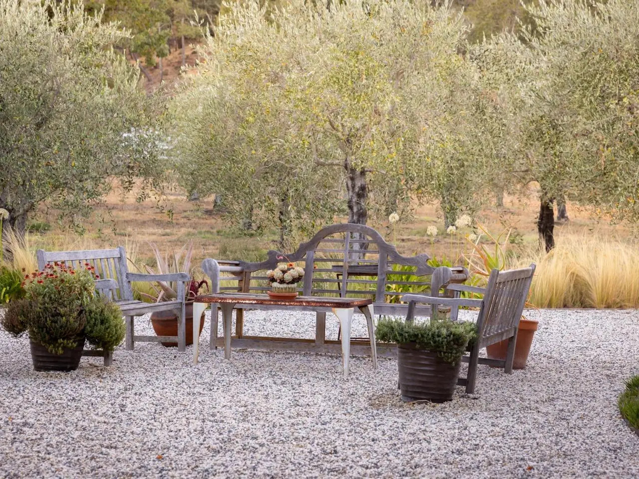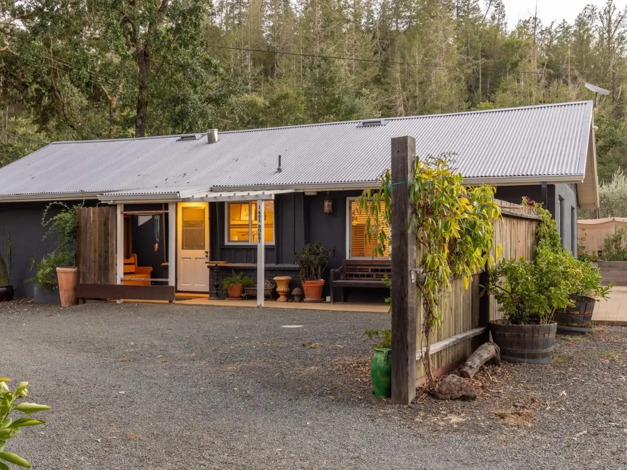 Nestled in a serene landscape featuring over 200 mature olive trees, this updated single-level main house plus additional single level 2nd dwelling and additional structures sit on a private 2.57 acre oasis. Just 4 miles from St. Helena and 2.5 miles to stunning Lake Hennessey, this Napa Valley compound exudes charm and tranquility. The main residence includes 2 bedrooms and 2.5 bathrooms within approximately 2,110 square feet, offering a spacious and inviting layout. Rustic hardwood and large-format stone floors enhance the interior, while expansive sliding patio doors seamlessly connect indoor and outdoor spaces. The kitchen features a quaint breakfast nook, granite countertops, high-end appliances, bar-top seating, and a large walk-in pantry, making it both functional and stylish. A private flex room with a separate entrance provides flexibility, ideal for a third bedroom, office, craft room, or gym. Step outside to discover a truly special outdoor space, complete with a covered back patio perfect for gatherings. Enjoy breathtaking views of the manicured olive orchard, neighboring vineyards and mountains beyond. Access the charming 910+/- square foot guest house and 805+/- sf storage building near the back of the property via a gravel pathway or a separate entrance off Rossi Rd.