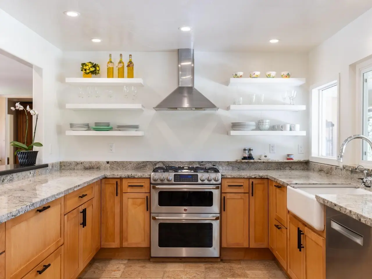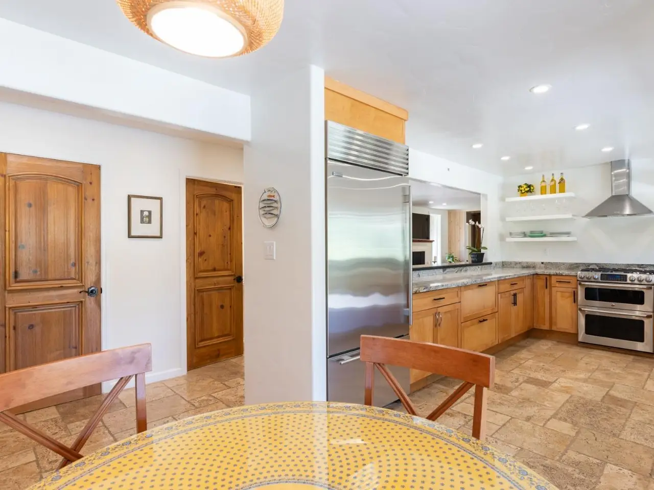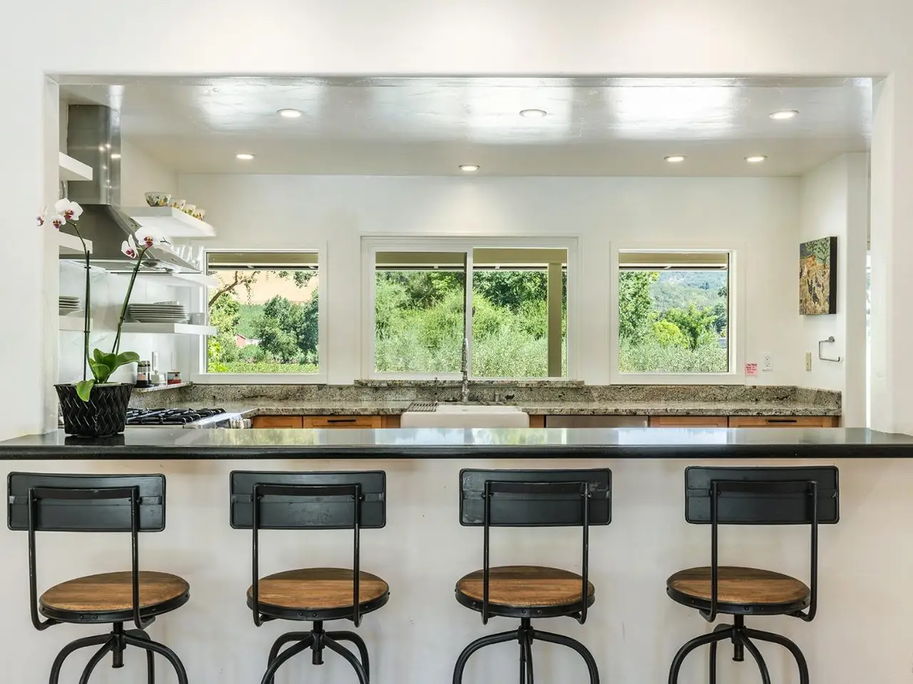Nestled in a serene landscape featuring over 200 mature olive trees, this updated single-level main house plus additional single level 2nd dwelling and additional structures sit on a private 2.57 acre oasis. Just 4 miles from St. Helena and 2.5 miles to stunning Lake Hennessey, this Napa Valley compound exudes charm and tranquility. The main residence includes 2 bedrooms and 2.5 bathrooms within approximately 2,110 square feet, offering a spacious and inviting layout. Rustic hardwood and large-format stone floors enhance the interior, while expansive sliding patio doors seamlessly connect indoor and outdoor spaces. The kitchen features a quaint breakfast nook, granite countertops, high-end appliances, bar-top seating, and a large walk-in pantry, making it both functional and stylish. A private flex room with a separate entrance provides flexibility, ideal for a third bedroom, office, craft room, or gym. Step outside to discover a truly special outdoor space, complete with a covered back patio perfect for gatherings. Enjoy breathtaking views of the manicured olive orchard, neighboring vineyards and mountains beyond. Access the charming 910+/- square foot guest house and 805+/- sf storage building near the back of the property via a gravel pathway or a separate entrance off Rossi Rd.
