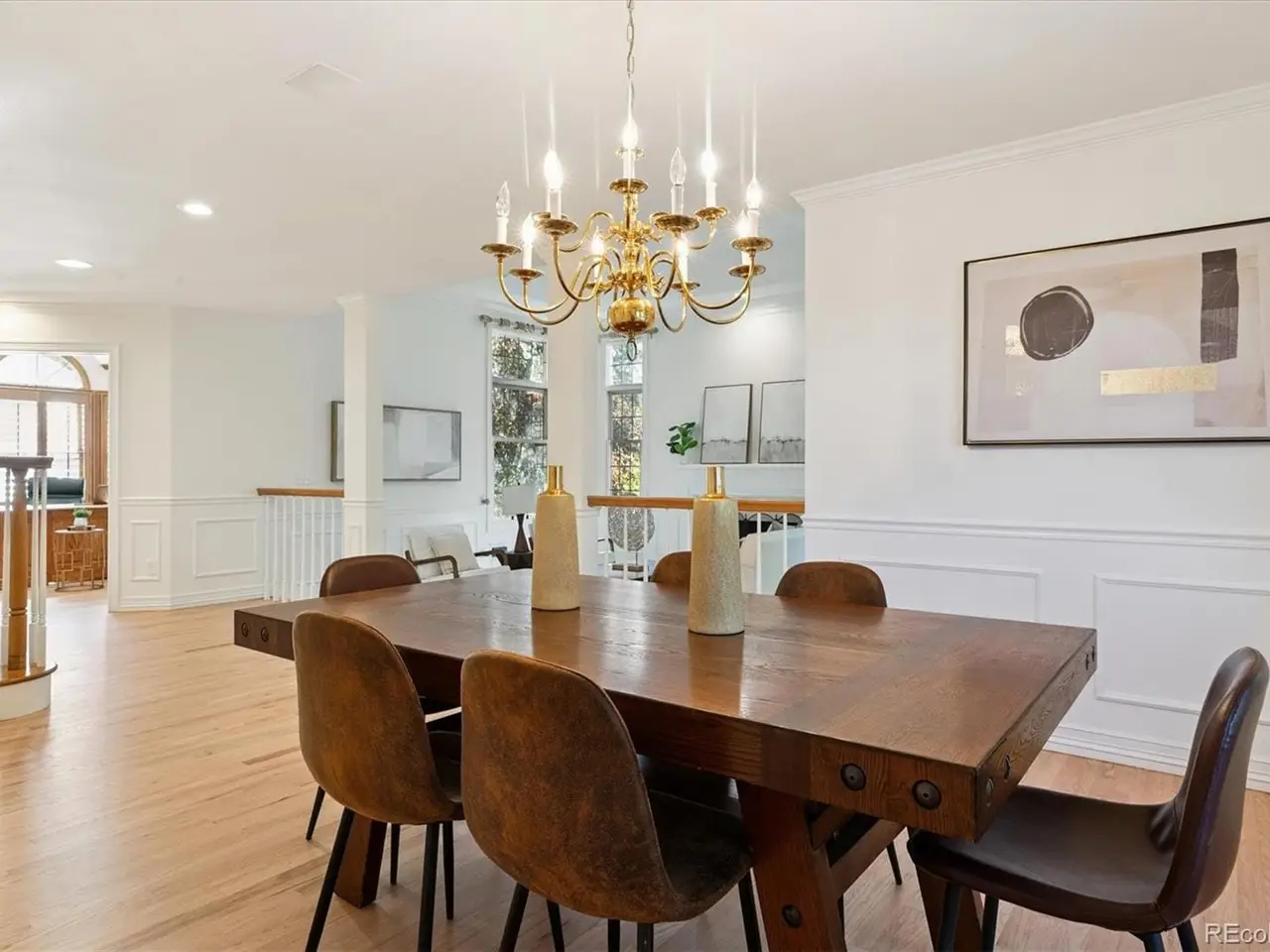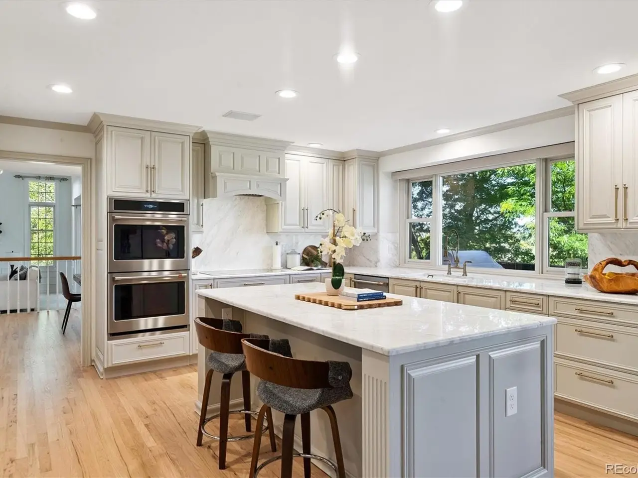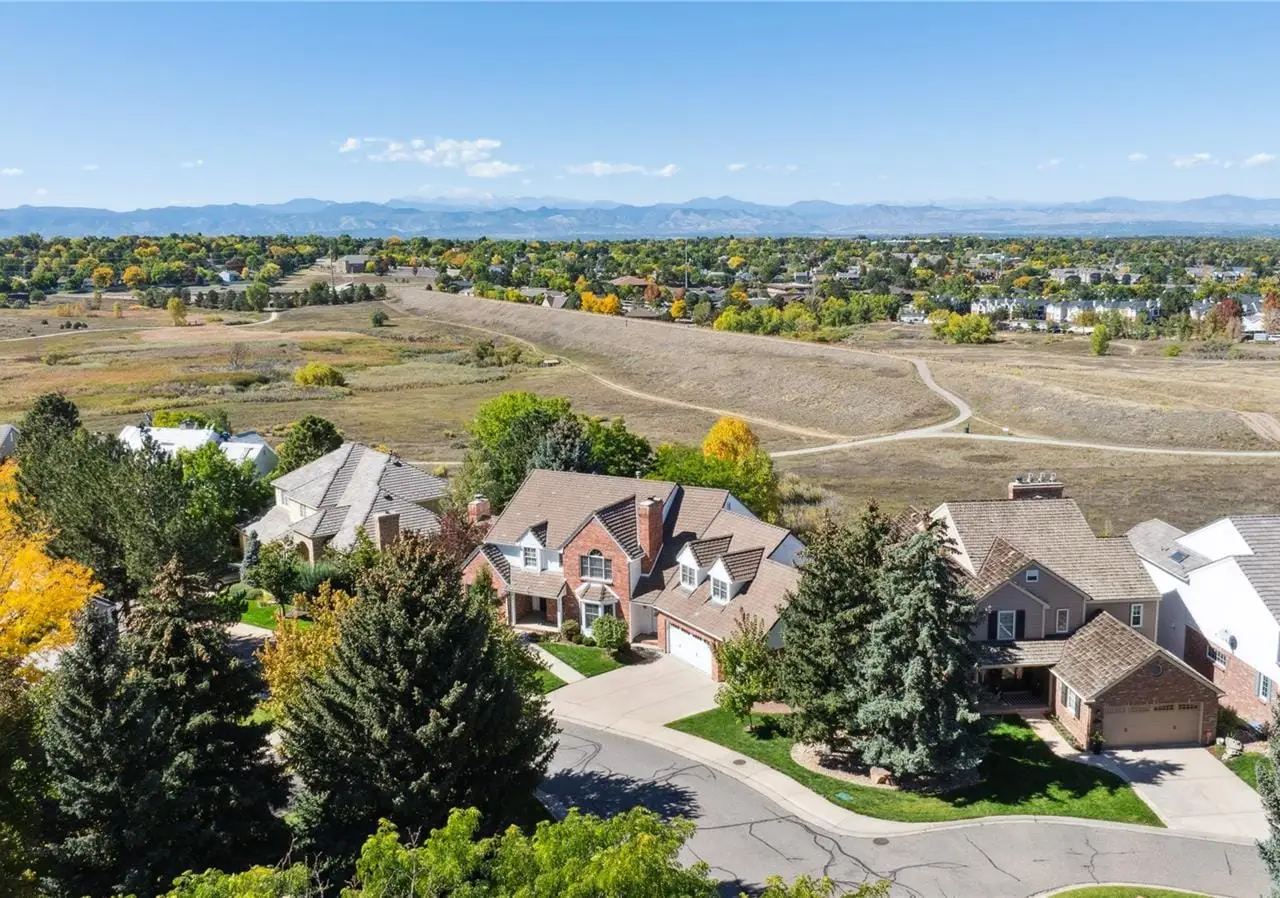 Executive Home in Homestead at Willows End. Nestled on a private circle backing to open space with sweeping Front Range views, this stately brick residence combines timeless architecture with modern luxury. A rare layout offers four bedrooms on the same floor, each with an en suite bath, plus a private fifth guest suite on the lower level. The expansive primary retreat includes a private deck, dual walk-in closets, and a luxurious five-piece bath. The newly remodeled 2025 gourmet kitchen features custom cabinetry, dolomite counters, a large island, walk-in pantry, and GE Café appliances, including an induction range, dual ovens, vent hood, under-counter microwave, and dishwasher. The breakfast area opens to a covered deck overlooking the professionally landscaped yard and open space. Plantation shutters and a whole-house surround sound system allow you to control light and sound throughout the home. Refinished hardwood floors connect the bright main level, which includes a private office, dining room, living room with tray ceiling and fireplace, and a sunken family room with built-in shelving and hearth. Two powder rooms, a large mudroom with a secondary front entry, and a second stairway leading to a bonus room—ideal for a studio, playroom, or secondary home office—add exceptional functionality. The finished walkout basement is designed for entertaining, complete with a wet bar, media center, built-in speakers, and space for billiards. A large fifth bedroom provides separation and privacy for guests, while additional unfinished areas offer space for a workshop, storage, and mechanical systems, including dual HVAC units, A/C, a whole-house generator, and a utility room. Residents enjoy priority membership applications to Homestead in the Willows amenities, including pools, tennis courts, community events, and direct trail access to 120 acres of South Suburban open space. Conveniently located minutes from DTC, Greenwood Village, and The Streets at South Glenn, and served by award-winning Cherry Creek Schools—Homestead Elementary, West Middle, and Cherry Creek High. A rare opportunity to own a refined retreat that perfectly blends elegance, lifestyle, and location.