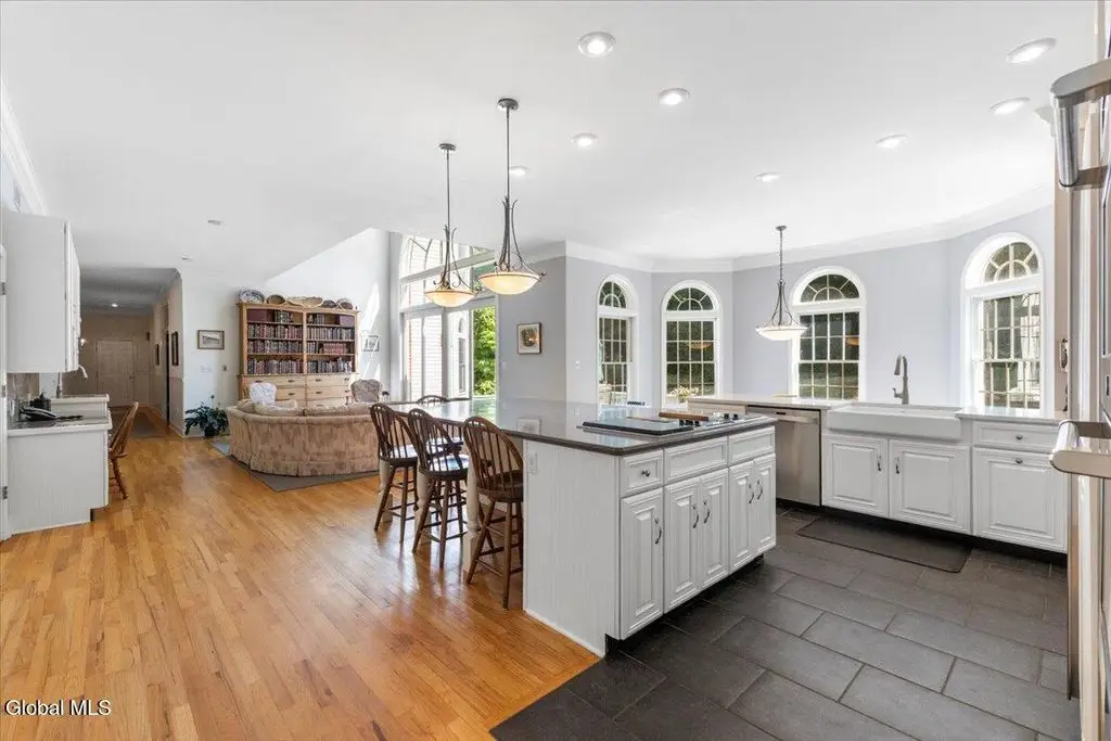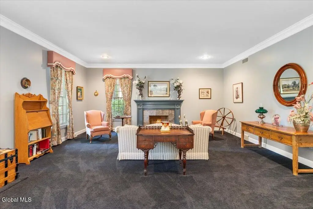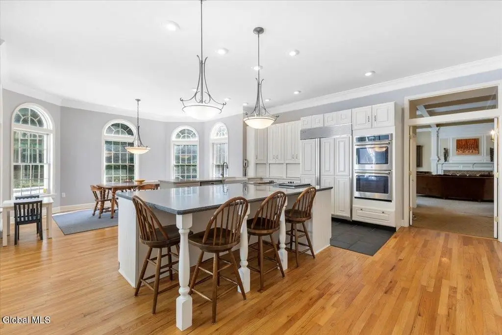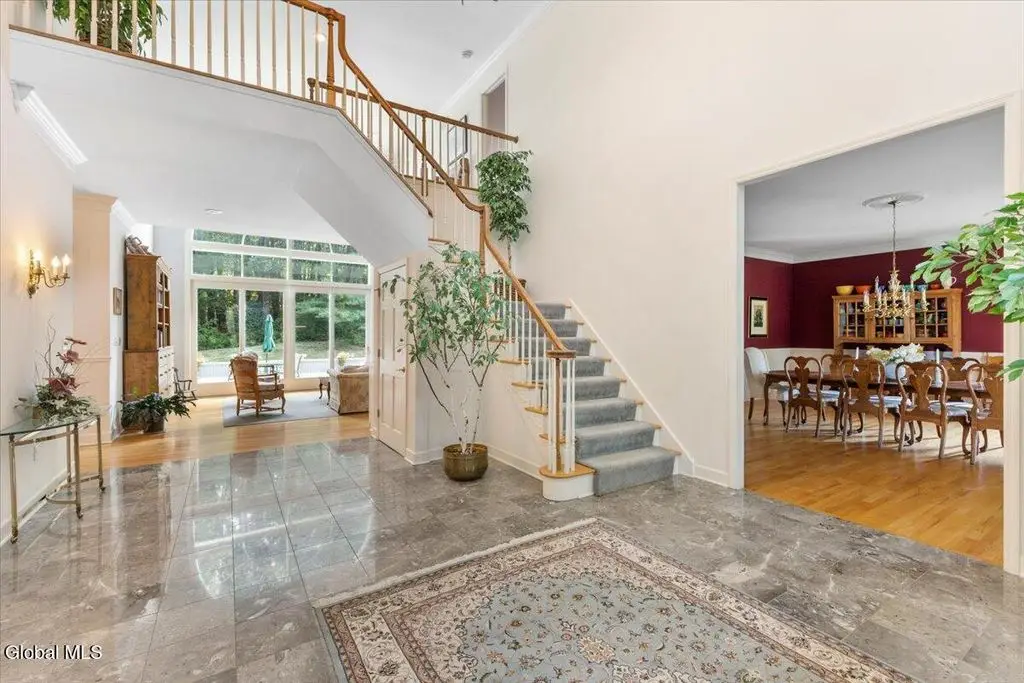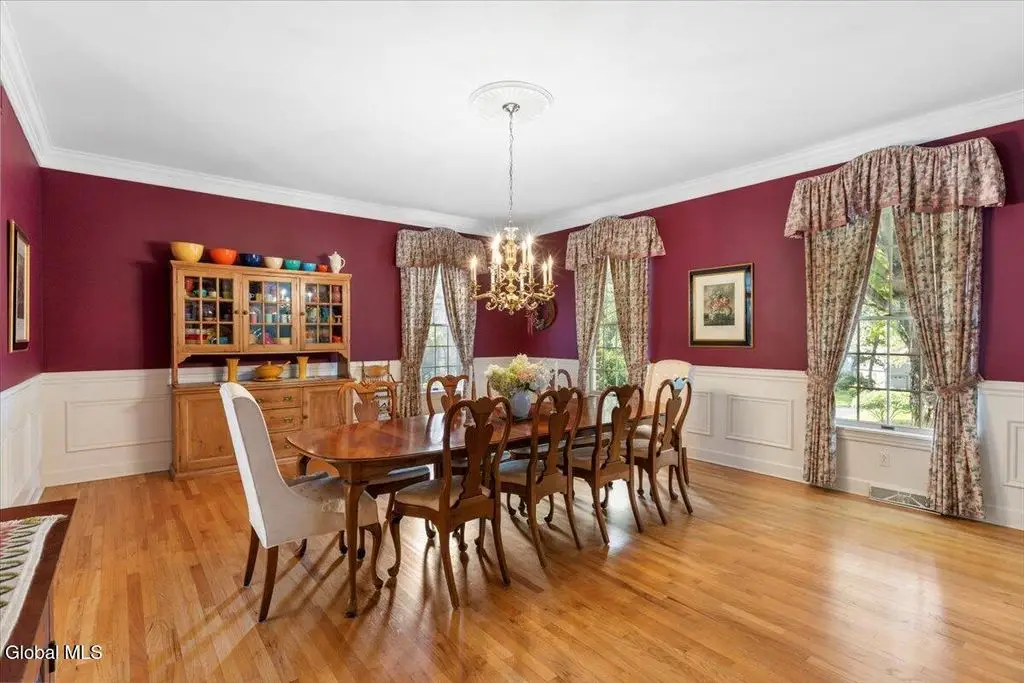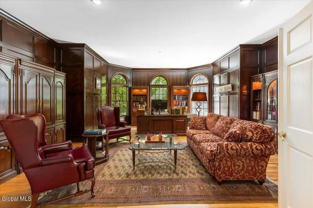 This spectacular custom home sits on a private two-acre lot and showcases exceptional quality and thoughtful design throughout. The impressive two-story foyer leads to formal living and dining rooms, while the great room features a soaring palladium window and atrium doors opening to a secluded yard and in-ground pool. Each spacious bedroom includes an en suite bath, and the elegant office boasts solid cherry cabinetry with birch wall paneling. Additional highlights include a family room with access to the back deck and pool, whole-house generator, dual furnaces & water heaters, a security system and a three-car garage. Located in a serene neighborhood of custom homes, just minutes from Saratoga Race Track, Saratoga Spgs & I-87 and is served by the award-winning Saratoga school district.
