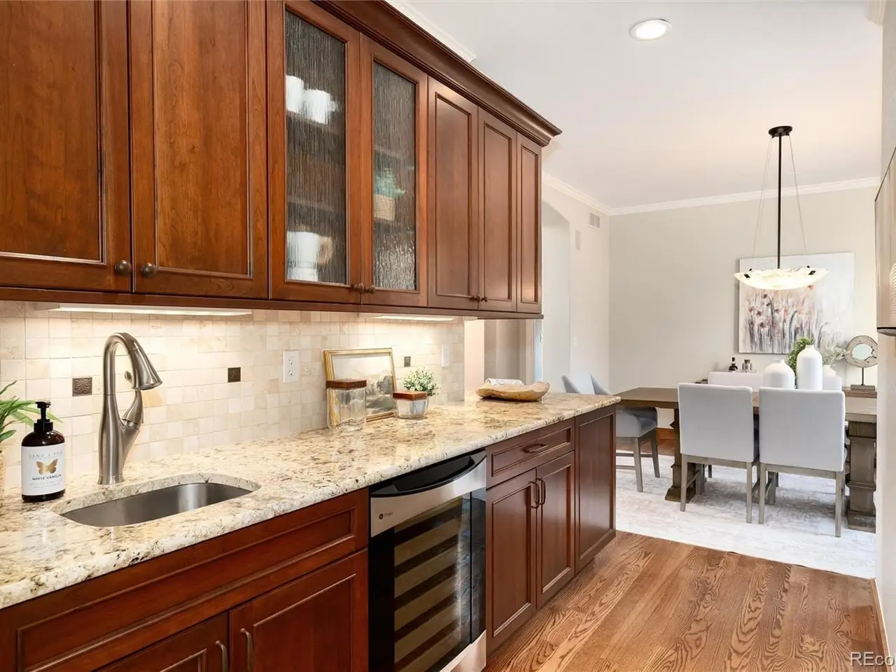 Welcome to this stunning 5-bedroom, 5-bath Craftsman-inspired home in the heart of Lowry, ideally positioned on an expansive 8,988 sq ft lot directly across from Crescent Park! With 5,485 sq ft of luxurious living space & a highly functional floor plan, this beautifully maintained residence is designed for both comfortable everyday living & effortless entertaining. A large wraparound front porch sets the tone for the timeless charm & modern comforts you’ll find inside. Step through the gracious foyer w/ soaring two-story ceilings into the inviting living room, where oversized glass doors open to the porch & a stone-surround fireplace adds warmth & character. The living room flows seamlessly into the gourmet kitchen, appointed w/ Thermador stainless appliances, a Liebherr refrigerator, Euro-style cabinetry, granite counters, prep sink w/ reverse osmosis faucet, & a large walk-in pantry. A cheerful breakfast nook opens to the backyard patio, while the butlers pantry w/ wet bar & wine cooler connects to the elegant formal dining roomperfect for hosting gatherings large or small. Additional main level highlights include a spacious study, mudroom w/ custom built-ins, a laundry room, and convenient access to the oversized 3-car garage. Upstairs, the serene primary suite overlooks Crescent Park and offers a sitting area with fireplace, spa-like bath, and a generous walk-in closet. A sun-filled loft and two spacious bedroomseach with its own ensuite bathcomplete the upper level. The finished basement impresses with tall ceilings, a large family room, two additional bedrooms, a full bath, and a versatile bonus room. Step outside to your private backyard oasis, featuring mature perennial gardens, fruit trees, & a generous patio for year-round enjoyment. Perfectly located near Lowry Town Center, Boulevard One, top-rated public and private schools, Cherry Creek, Rose Hospital, and Anschutz Medical Campus, this home offers the best of central Denver living. WELCOME HOME!