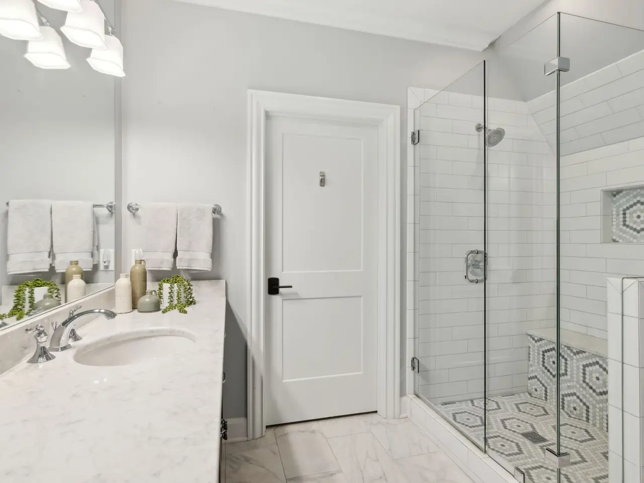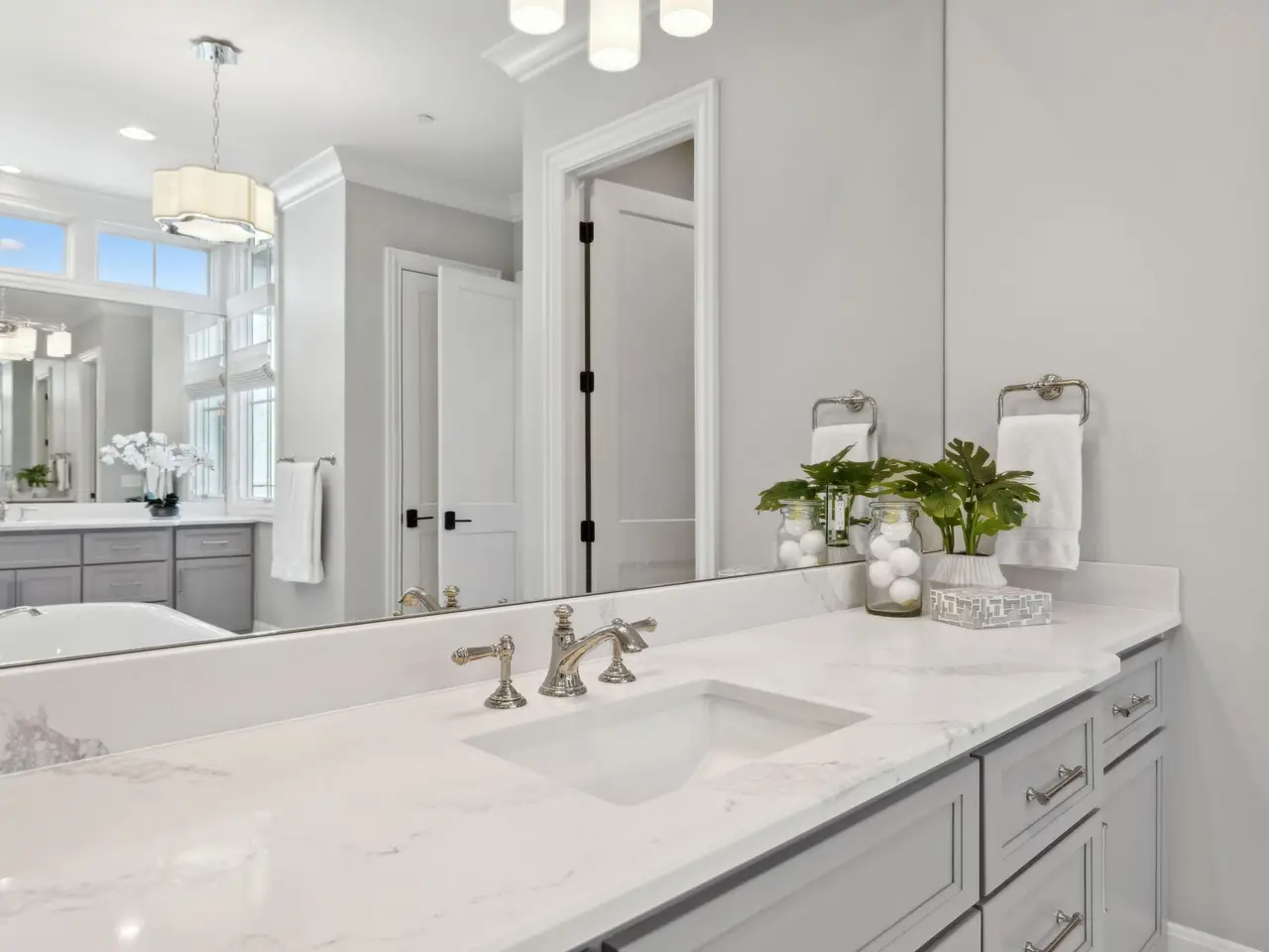 • Spa-like marble primary bath
