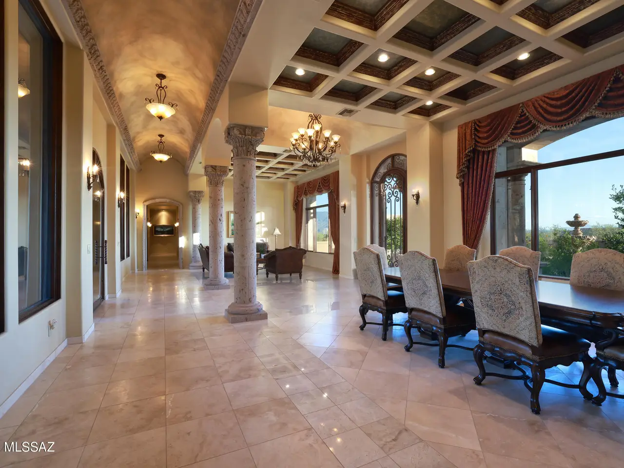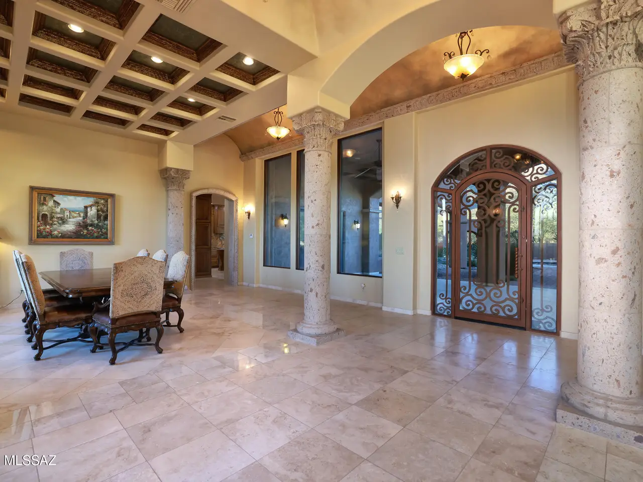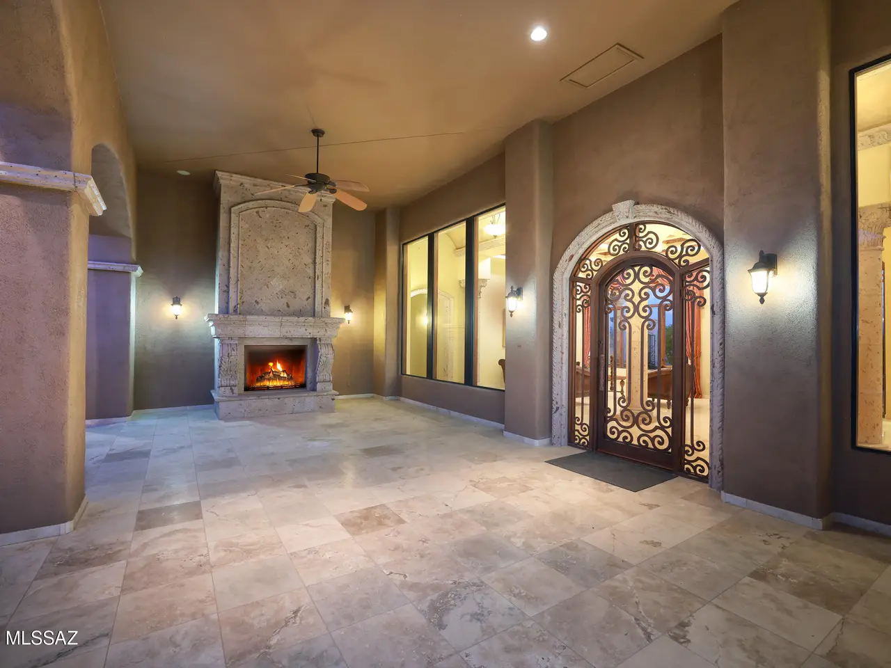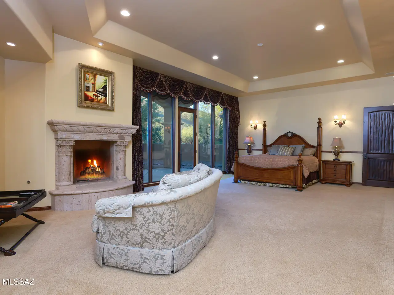 Custom home on 3.31 acres in gated Saguaro Hills Estates/Fetzer Ranch. Incredible Catalina Mt. views from this private desert retreat. Property includes heated pool & spa, 5 covered patios, a gazebo with built-in BBQ, & fruit trees. The elegant courtyard entrance with Cantera stone fountain welcomes you. Inside, 6612 sq ft of 14' high tray & barrel ceilings, Cantera stone columns, masonry fireplaces, travertine & marble floors, hand hewn alder doors and fine cabinetry. 5 bedrooms with private baths. Chef inspired kitchen includes Viking gas stove & pot filler, Miele Expresso machine, Wine refrigerator, granite island, & walk-in pantry. Family room with gas fireplace. Media room with surround sound. Oversized 3-car garage, gated paver driveway. Near parks, hiking, golf, shopping & dining.