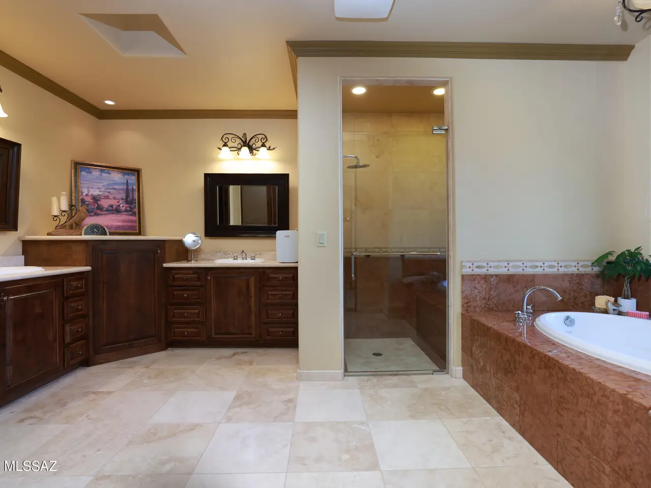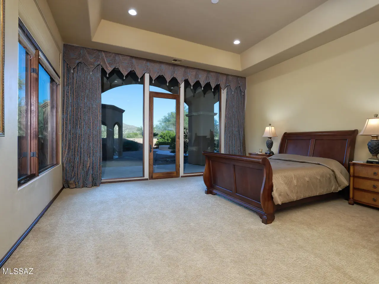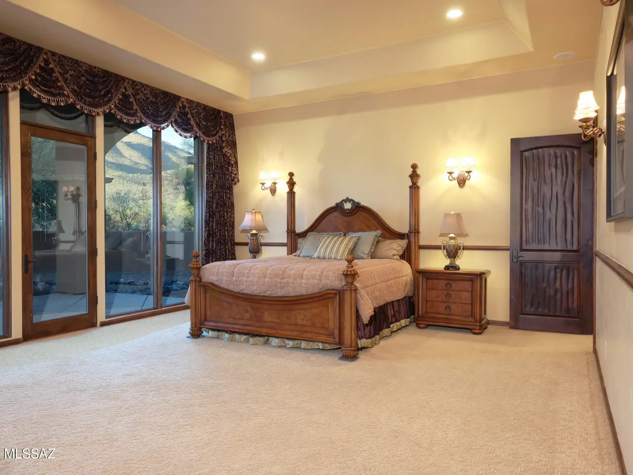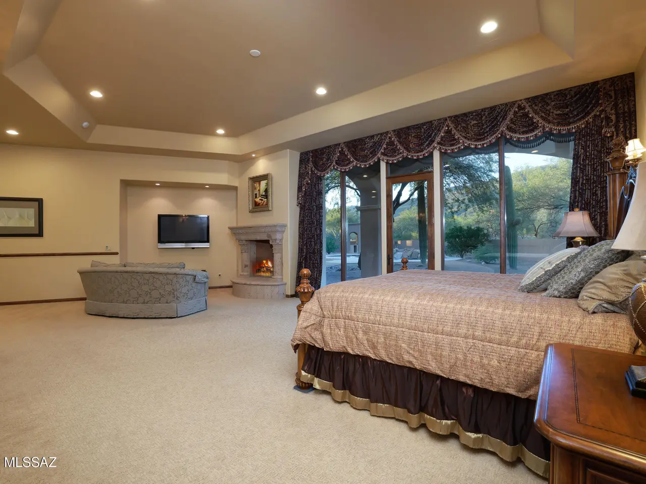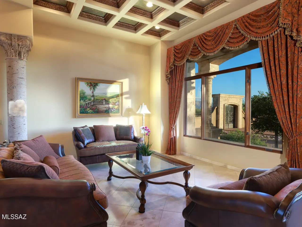 Custom home on 3.31 acres in gated Saguaro Hills Estates/Fetzer Ranch. Incredible Catalina Mt. views from this private desert retreat. Property includes heated pool & spa, 5 covered patios, a gazebo with built-in BBQ, & fruit trees. The elegant courtyard entrance with Cantera stone fountain welcomes you. Inside, 6612 sq ft of 14' high tray & barrel ceilings, Cantera stone columns, masonry fireplaces, travertine & marble floors, hand hewn alder doors and fine cabinetry. 5 bedrooms with private baths. Chef inspired kitchen includes Viking gas stove & pot filler, Miele Expresso machine, Wine refrigerator, granite island, & walk-in pantry. Family room with gas fireplace. Media room with surround sound. Oversized 3-car garage, gated paver driveway. Near parks, hiking, golf, shopping & dining.