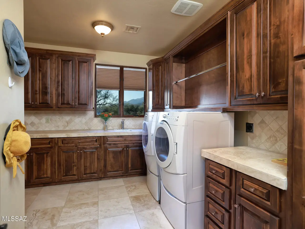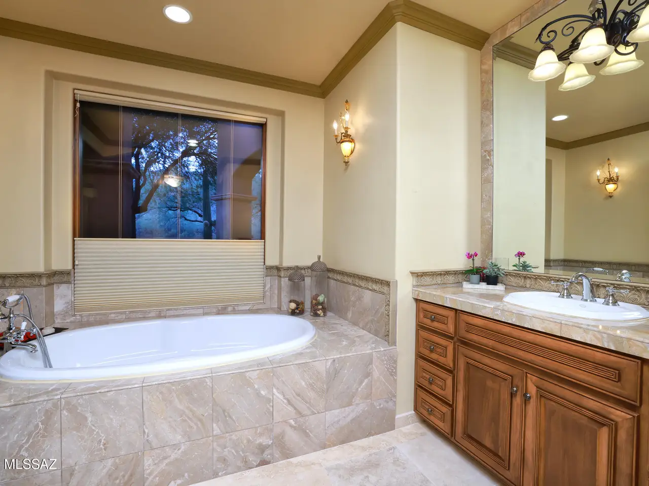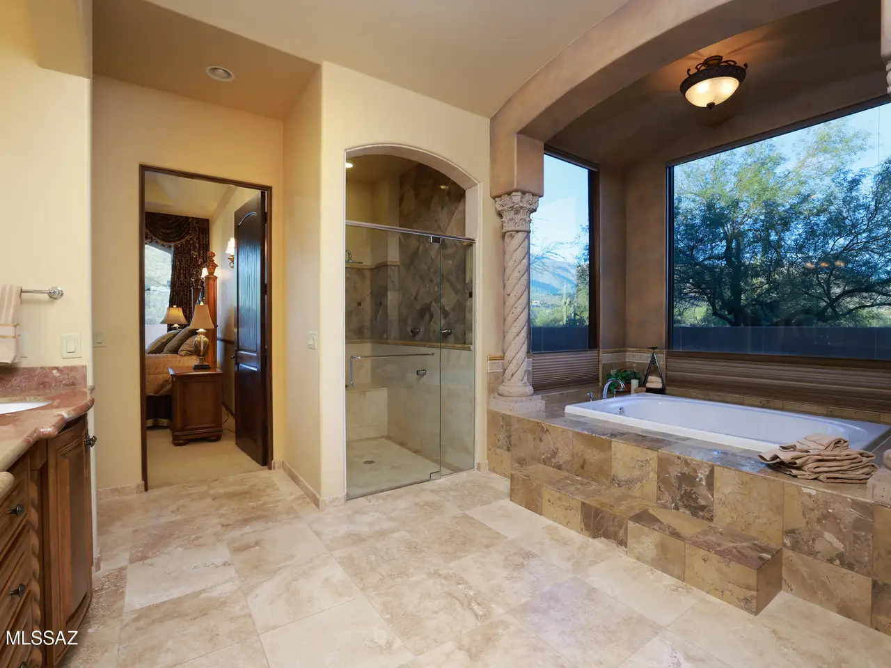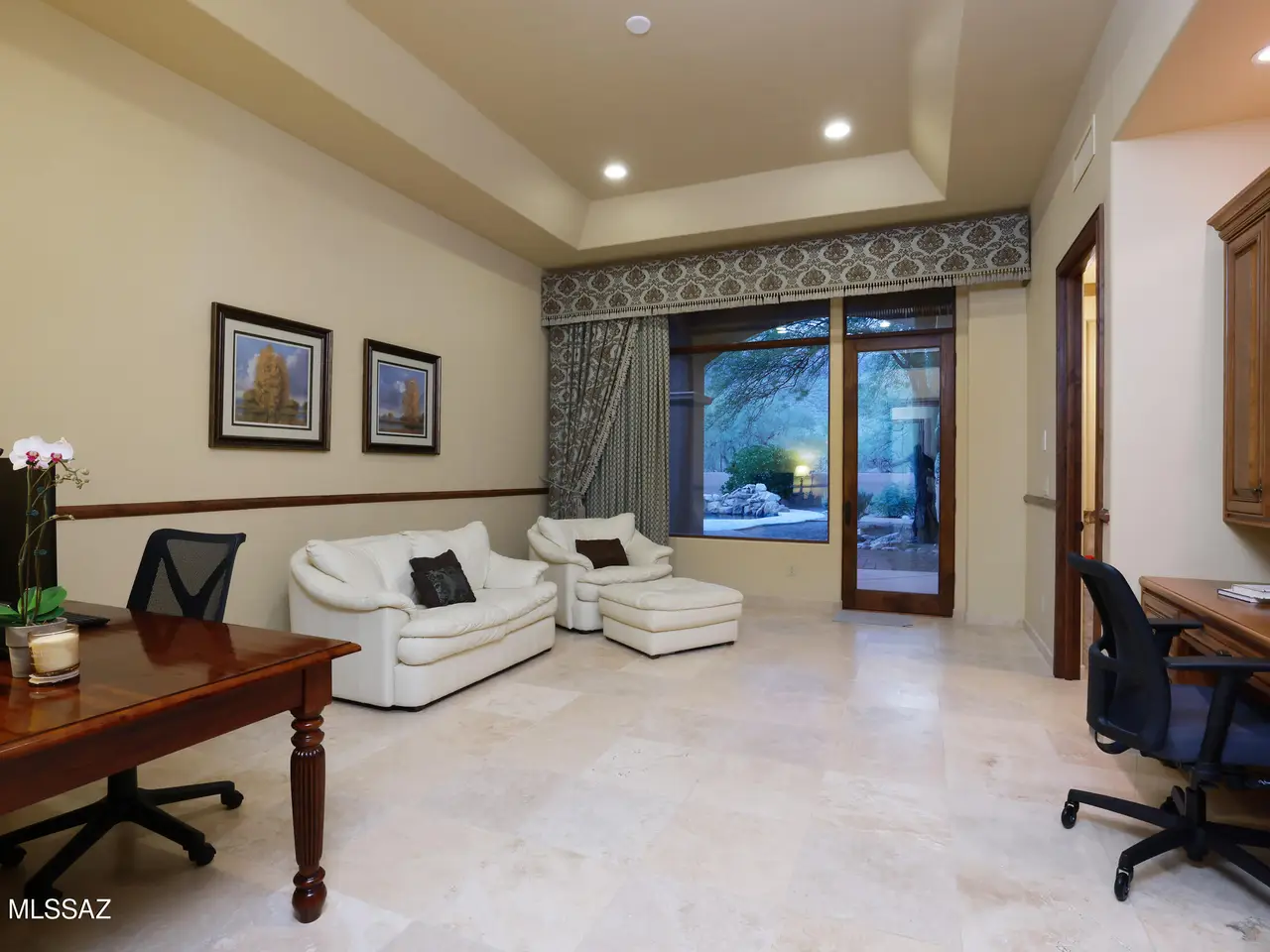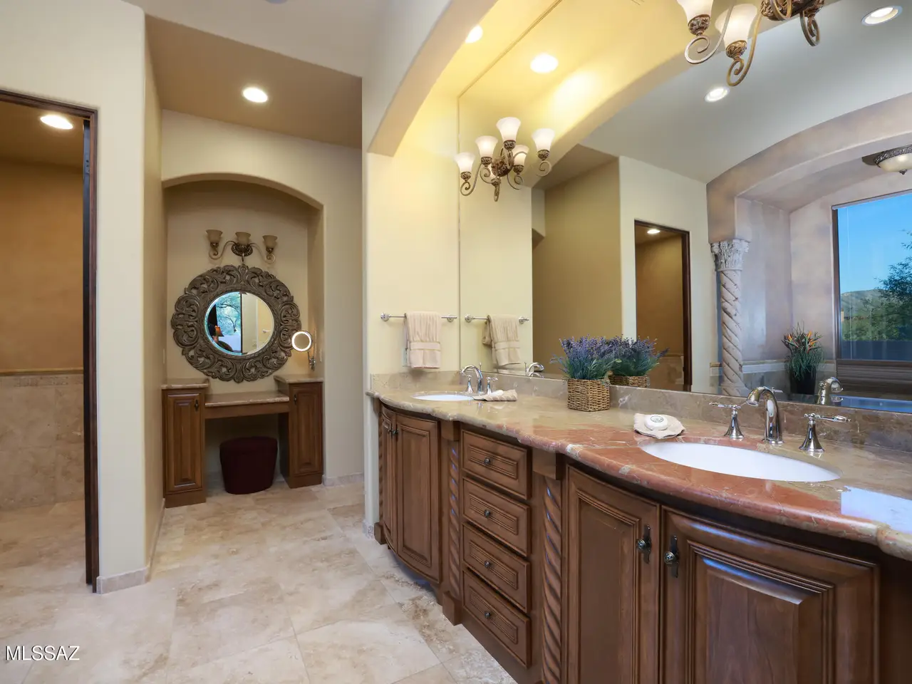 Custom home on 3.31 acres in gated Saguaro Hills Estates/Fetzer Ranch. Incredible Catalina Mt. views from this private desert retreat. Property includes heated pool & spa, 5 covered patios, a gazebo with built-in BBQ, & fruit trees. The elegant courtyard entrance with Cantera stone fountain welcomes you. Inside, 6612 sq ft of 14' high tray & barrel ceilings, Cantera stone columns, masonry fireplaces, travertine & marble floors, hand hewn alder doors and fine cabinetry. 5 bedrooms with private baths. Chef inspired kitchen includes Viking gas stove & pot filler, Miele Expresso machine, Wine refrigerator, granite island, & walk-in pantry. Family room with gas fireplace. Media room with surround sound. Oversized 3-car garage, gated paver driveway. Near parks, hiking, golf, shopping & dining.