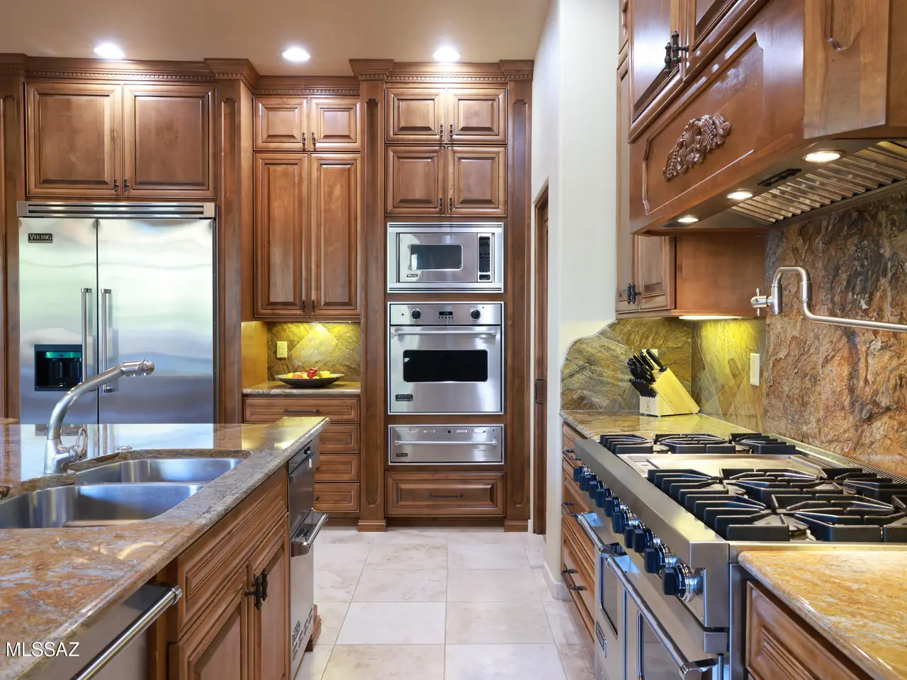 • Chef-inspired kitchen with Viking gas stove & wine refrigerator