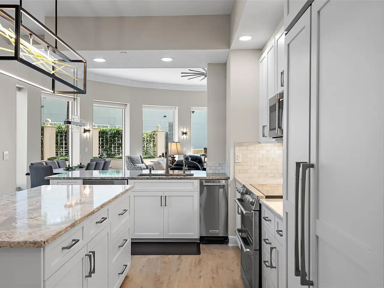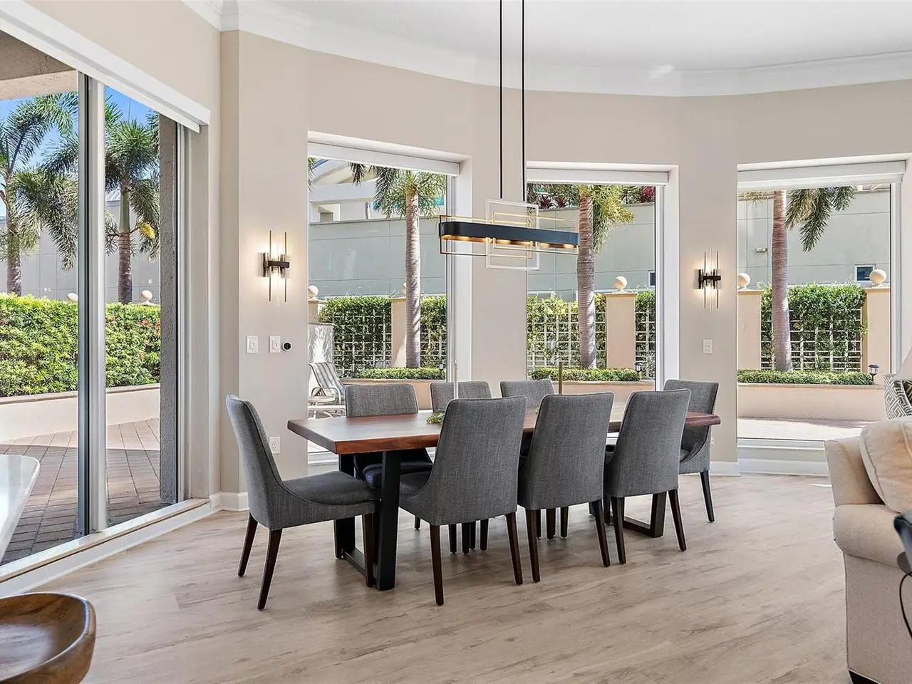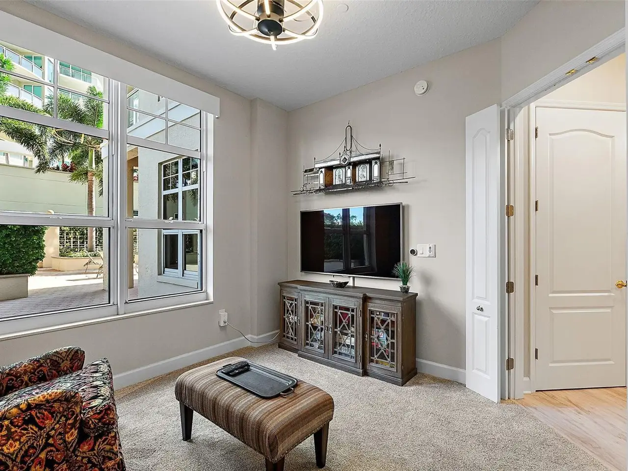 Step into unparalleled elegance with this exclusive 3-bedroom, 2.5-bathroom condo at The Florencia, being the only unit on the third floor for ultimate privacy and prestige. Spanning 2,500 square feet with an expansive 4,000 plus square foot terrace, this residence offers a seamless blend of sophistication and comfort. Upon entry, be greeted by 12-foot ceilings and luxurious LVP flooring throughout the foyer, kitchen, great room, and bathrooms, complemented by plush carpet in the bedrooms. Hunter Douglas electric window treatments adorn every window and slider, enhancing privacy and ambiance at the touch of a button. The kitchen is a culinary masterpiece, featuring a remodeled layout with an oversized peninsula, Café slide-in convection oven, induction cooktop, KitchenAid Trash Compactor, Bosch Dishwasher and a seamlessly integrated Subzero refrigerator matching the cabinetry. Quartz Cambria countertops and under-cabinet lighting add a touch of modern elegance, while the walk-in pantry and built-in desk nook with custom cabinetry ensure both functionality and style. The great room boasts a media wall with built-in beverage refrigerator, Hoshizaki ice maker, wine rack, and wet bar, perfect for entertaining guests. Designer light fixtures and an accent tile wall elevate the ambiance, while additional recessed lighting sets the perfect mood. The oversized primary bedroom offers a serene retreat with a sitting area, a slider to the outdoor terrace, and an expansive closet with custom built-ins, two safes and a locking jewelry drawer. The updated primary bathroom features custom cabinetry, quartz Cambria countertops, a remodeled shower, a smart Toto washlet in the water closet, smart faucets, and three smart light-up mirrors. Both the guest bathroom and the powder room have been meticulously updated with quartz Cambria counters and light-up mirrors, with the guest bath featuring a smart faucet and luxurious walk-in shower. Additional features include two premier parking spaces, two storage spaces (one just outside the condo door and one in the garage), crown molding throughout the great room and foyer, an updated laundry with custom cabinetry and Electrolux appliances. Residents of Florencia enjoy access to a wealth of amenities, including 24-hour concierge service, a third floor amenity deck with heated pool and spa, steam rooms, saunas, fitness center and Park Room, which is a room available for resident meetings, parties or other social events and includes a kitchen, bar, fireplace, billiards room and tvs. With its prime location just steps from the waterfront and downtown attractions, this condo offers the epitome of urban luxury living. Located in the epicenter of downtown St. Pete, you are only blocks away from the Pinellas Trail (a 50 mile walking and biking trail that stretches across the county) and surrounded by a mecca of dining options, world renowned museums, shopping boutiques, art galleries, theaters, sports venues, waterfront walking trails, parks and more. St. Pete is a premier arts community and a truly special place to call home.