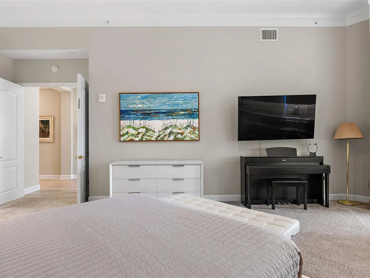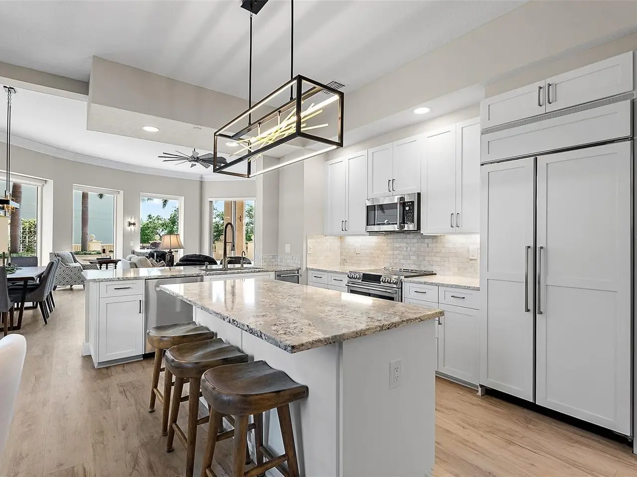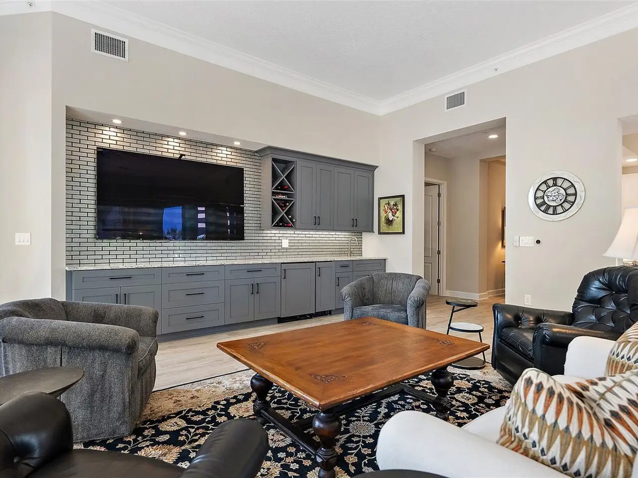 Step into unparalleled elegance with this exclusive 3-bedroom, 2.5-bathroom condo at The Florencia, being the only unit on the third floor for ultimate privacy and prestige. Spanning 2,500 square feet with an expansive 4,000 plus square foot terrace, this residence offers a seamless blend of sophistication and comfort. Upon entry, be greeted by 12-foot ceilings and luxurious LVP flooring throughout the foyer, kitchen, great room, and bathrooms, complemented by plush carpet in the bedrooms. Hunter Douglas electric window treatments adorn every window and slider, enhancing privacy and ambiance at the touch of a button. The kitchen is a culinary masterpiece, featuring a remodeled layout with an oversized peninsula, Café slide-in convection oven, induction cooktop, KitchenAid Trash Compactor, Bosch Dishwasher and a seamlessly integrated Subzero refrigerator matching the cabinetry. Quartz Cambria countertops and under-cabinet lighting add a touch of modern elegance, while the walk-in pantry and built-in desk nook with custom cabinetry ensure both functionality and style. The great room boasts a media wall with built-in beverage refrigerator, Hoshizaki ice maker, wine rack, and wet bar, perfect for entertaining guests. Designer light fixtures and an accent tile wall elevate the ambiance, while additional recessed lighting sets the perfect mood. The oversized primary bedroom offers a serene retreat with a sitting area, a slider to the outdoor terrace, and an expansive closet with custom built-ins, two safes and a locking jewelry drawer. The updated primary bathroom features custom cabinetry, quartz Cambria countertops, a remodeled shower, a smart Toto washlet in the water closet, smart faucets, and three smart light-up mirrors. Both the guest bathroom and the powder room have been meticulously updated with quartz Cambria counters and light-up mirrors, with the guest bath featuring a smart faucet and luxurious walk-in shower. Additional features include two premier parking spaces, two storage spaces (one just outside the condo door and one in the garage), crown molding throughout the great room and foyer, an updated laundry with custom cabinetry and Electrolux appliances. Residents of Florencia enjoy access to a wealth of amenities, including 24-hour concierge service, a third floor amenity deck with heated pool and spa, steam rooms, saunas, fitness center and Park Room, which is a room available for resident meetings, parties or other social events and includes a kitchen, bar, fireplace, billiards room and tvs. With its prime location just steps from the waterfront and downtown attractions, this condo offers the epitome of urban luxury living. Located in the epicenter of downtown St. Pete, you are only blocks away from the Pinellas Trail (a 50 mile walking and biking trail that stretches across the county) and surrounded by a mecca of dining options, world renowned museums, shopping boutiques, art galleries, theaters, sports venues, waterfront walking trails, parks and more. St. Pete is a premier arts community and a truly special place to call home.