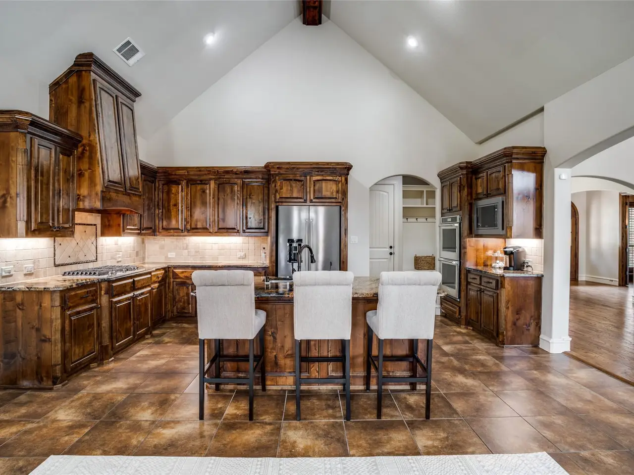• Vaulted beamed ceilings