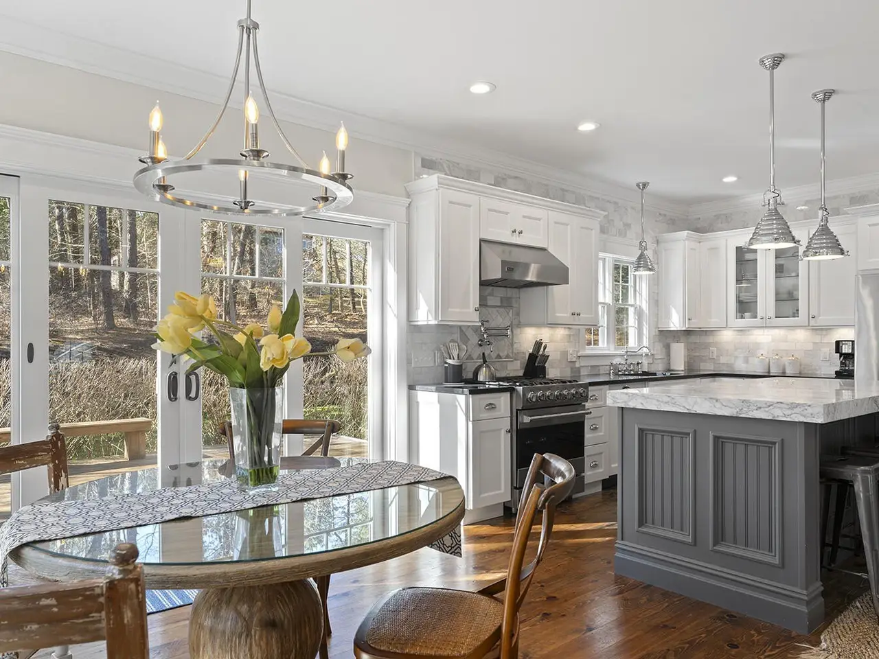 Experience the ultimate Vineyard getaway in this custom Colonial that perfectly balances sophistication with Island charm. This thoughtfully designed property features soaring 9-foot ceilings, authentic Heart Pine flooring, and a show-stopping gourmet kitchen complete with professional-grade Viking appliances, handcrafted soapstone countertops, and a statement Carrara marble island. The spacious floor plan offers four bedrooms and four full bathrooms, complemented by two powder rooms and a fully finished lower level for additional entertainment. Separate guest quarters above the garage provide visitors with their own private retreat, featuring a dedicated living room, convenient wet bar, and private deck. Outdoors, a mahogany deck overlooks beautifully landscaped gardens, with an outdoor shower perfect for post-beach rinses before alfresco dining under the stars. Conveniently located just a short distance from downtown Edgartown's acclaimed restaurants, boutiques, and harbor, this property offers a quintessential Vineyard experience and an established rental history.