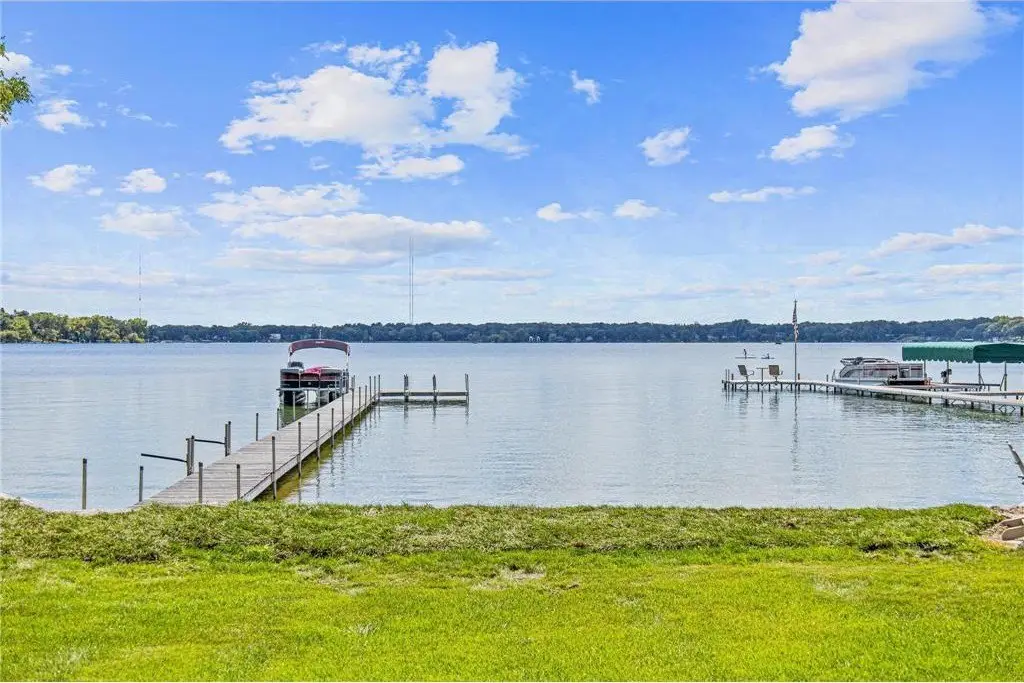 Spectacular 5BD/5BA home built by R&R Construction perfectly situated on 90' of the best lakeshore on Turtle Lake in the MV School District. From the striking curb appeal to the thoughtful interior, this home has it all; one-level living with hand-scraped walnut floors, a luxurious primary suite, main-level laundry, and a chef’s kitchen with high-end Wolf/Sub-Zero appliances, walk-in pantry, and multiple places to entertain family and friends. Upstairs boasts 4 generous bedrooms, 2 Jack-and-Jill baths, a laundry space plus an office. The lower level is an entertainer’s dream with a large bar, wine room, sauna, workout space, family room, and game area. Enjoy 90’ of pristine sugar-sand shoreline, a flat yard for lake games, and breathtaking views from nearly every room. The lake is calling... time to fish, boat, swim, skate and more.