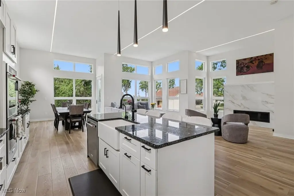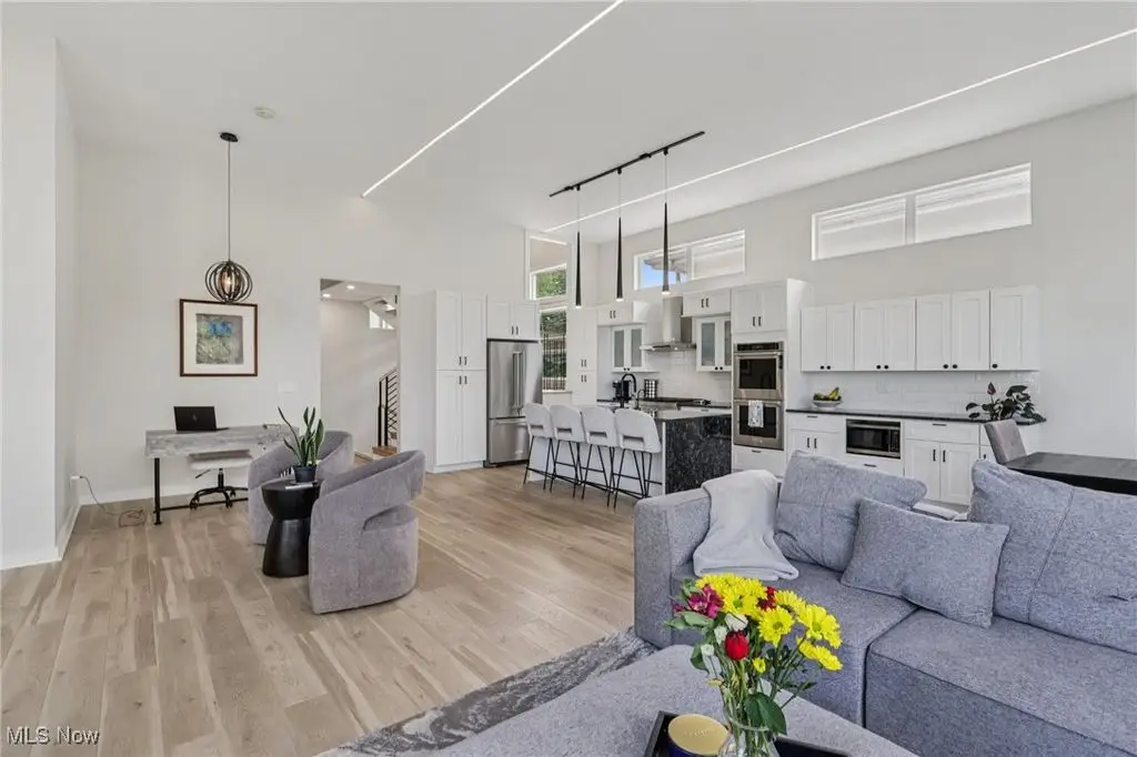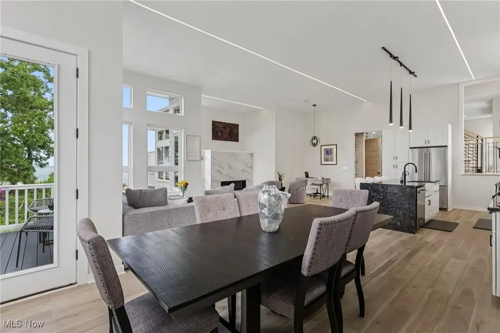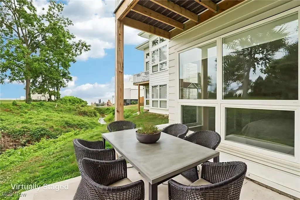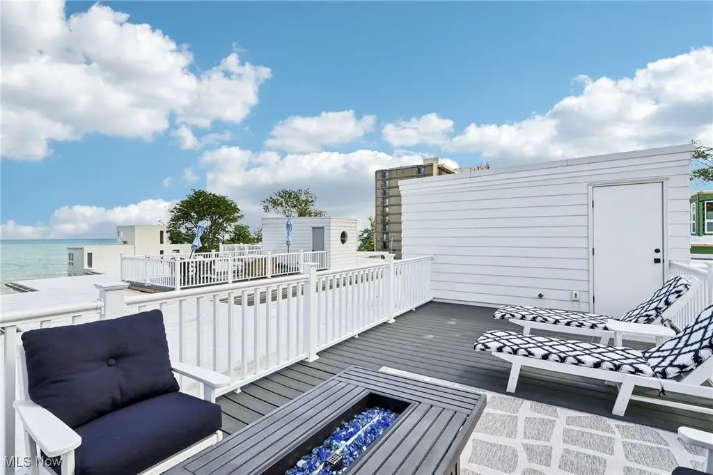 Welcome to your dream retreat on the shores of Lake Erie. This stunning 2-bedroom, 2.5-bath luxury townhome is perfectly situated on a premium lot, offering sweeping lake views and exquisite design details throughout. With high-end finishes, spacious living areas, and amenities, this home offers the ideal blend of elegance, comfort, and lakeside tranquility. The heart of the home is a gourmet kitchen featuring an expansive island with a waterfall edge, sleek modern appliances, & designer finishes perfect for entertaining or everyday living. The open dining area & main-level family room flow seamlessly, creating a welcoming space to relax while taking in the lake's natural beauty or the Eagles that stop by frequently. Just a few steps up, a spacious secondary media room provides the perfect setting for movie nights, a home office, fitness space, or additional lounge areaC/B?B=customizable to fit your lifestyle. The first level serves as a private sanctuary, featuring a serene primary suite with a spa-inspired glamour bath. Enjoy a large custom-tiled shower w/body sprays and a waterfall showerhead, a floating soaking tub & sophisticated finishes. A generous guest bedroom with its own full bath, a convenient laundry area, sauna access completes this level. You will also find a private dog run just outside the side entrance/perfect for small to mid-size dogs. Step outside to enjoy direct lake access ideal for kayaking, paddleboarding, or simply casting a line on a peaceful afternoon. The private rooftop outdoor living space offers gorgeous lake views, perfect for soaking in sunsets or watching sailboats drift by. Designed with an open-concept floor plan to maximize natural light & stunning views, this townhome also includes access to shared amenities: a patio with a wood-fired pizza oven, cozy fire pit and comfortable lounge seating. Don't miss this rare opportunity to own a luxury lakefront townhome w/unmatched views & lifestyle features.