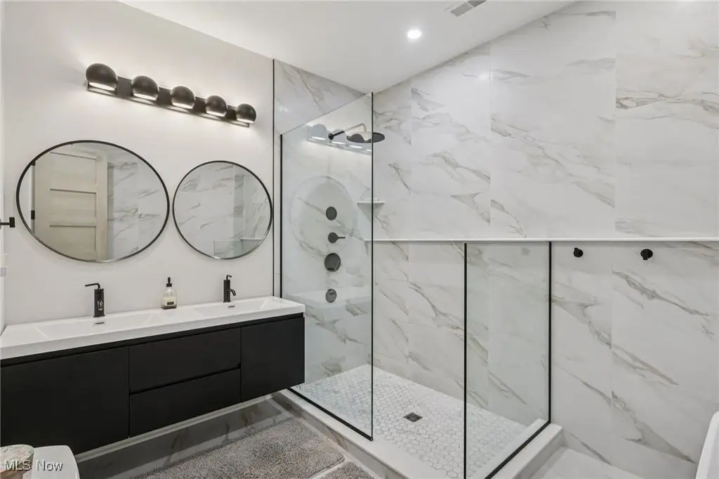 • Custom-tiled shower with body sprays