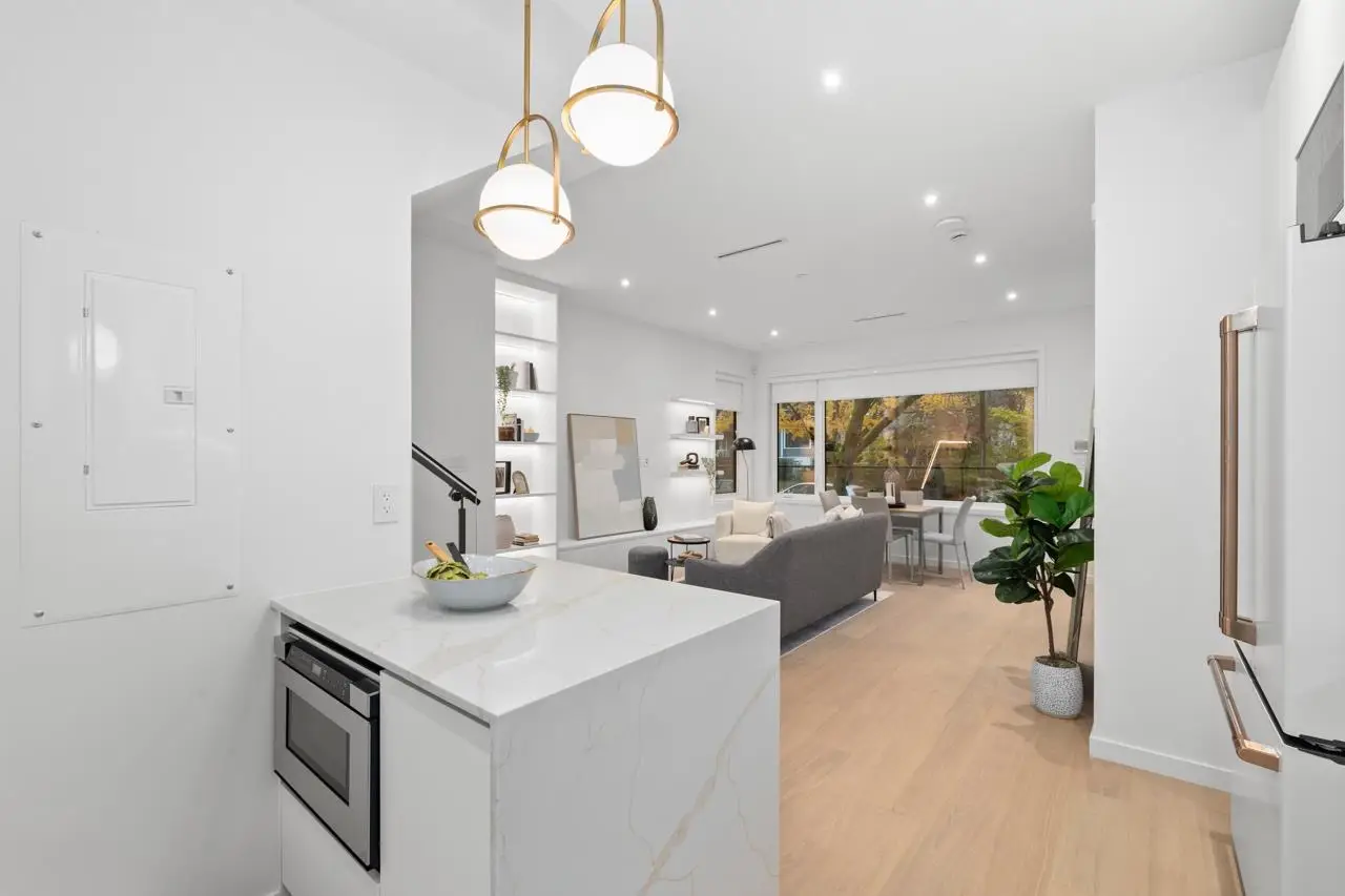Discover refined living in this stunning 1/2 duplex by Mahnger Homes in the heart of Douglas Park! Elegant design meets luxury with warm tones, oversized windows, and brushed White Oak floors throughout. The gourmet kitchen boasts sleek flat-panel cabinetry, quartz counters/backsplash, and premium matte white appliances. Upstairs, find three spacious bedrooms on one level, each with custom cabinetry. The versatile third level offers a bedroom, guest room, or expansive family room opening to a covered deck—perfect for entertaining. Stay comfortable year-round with a heat pump for heating and cooling. Covered parking and 3 storage lockers add convenience. Steps from parks, cafes, top schools, and transit—this is urban living at its finest! Open House Nov 8th/9th Sat/Sun 2-4pm