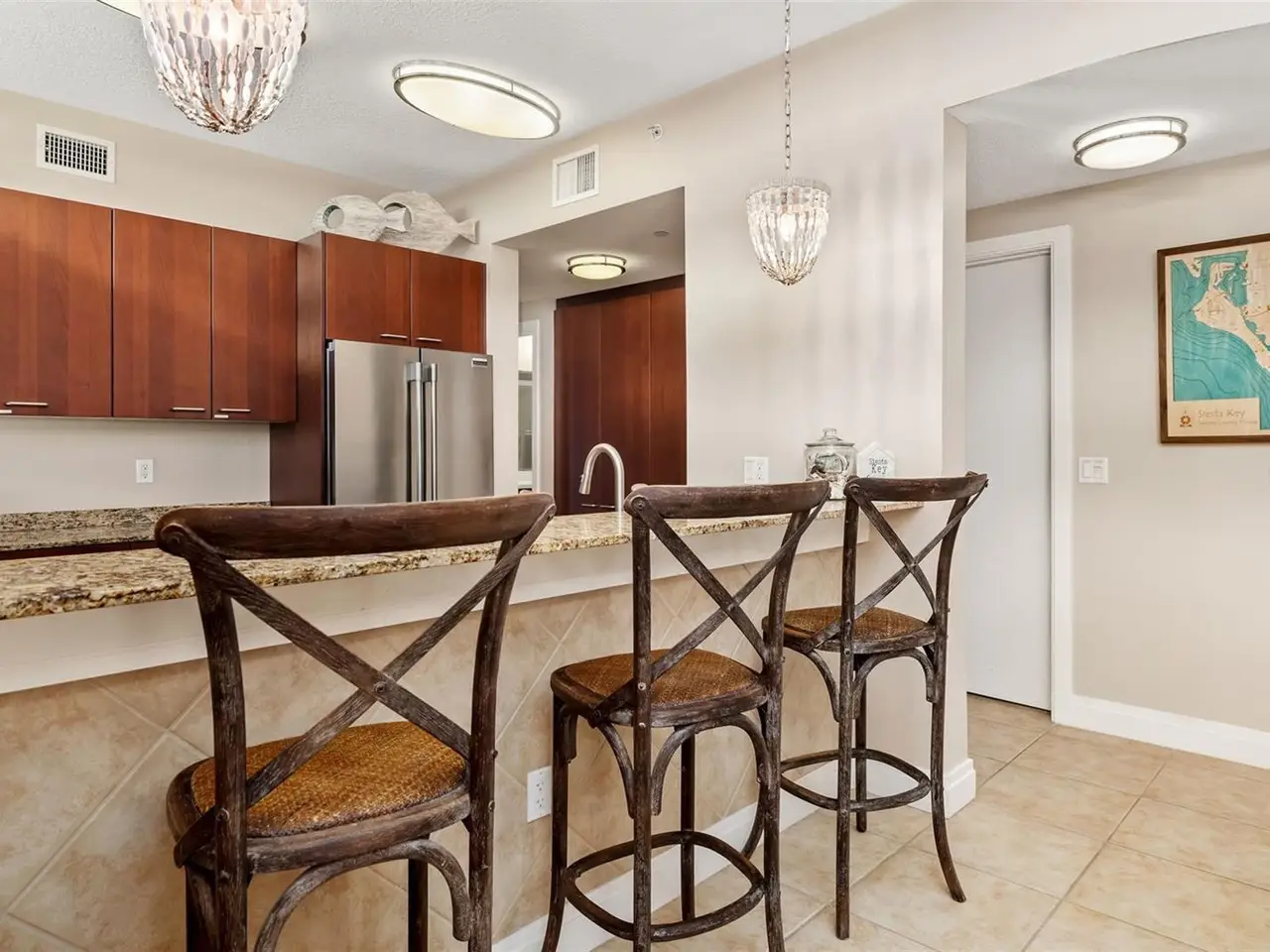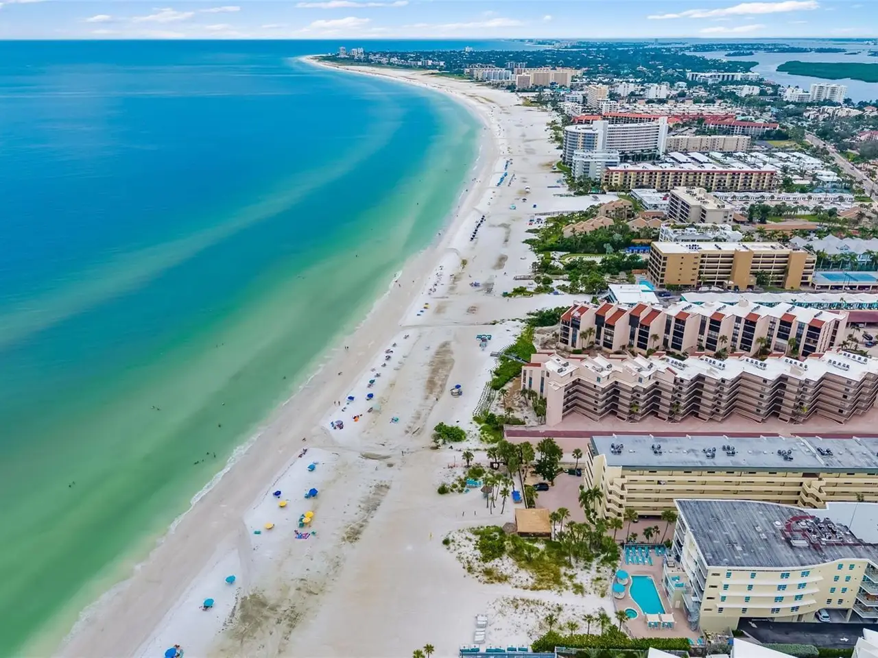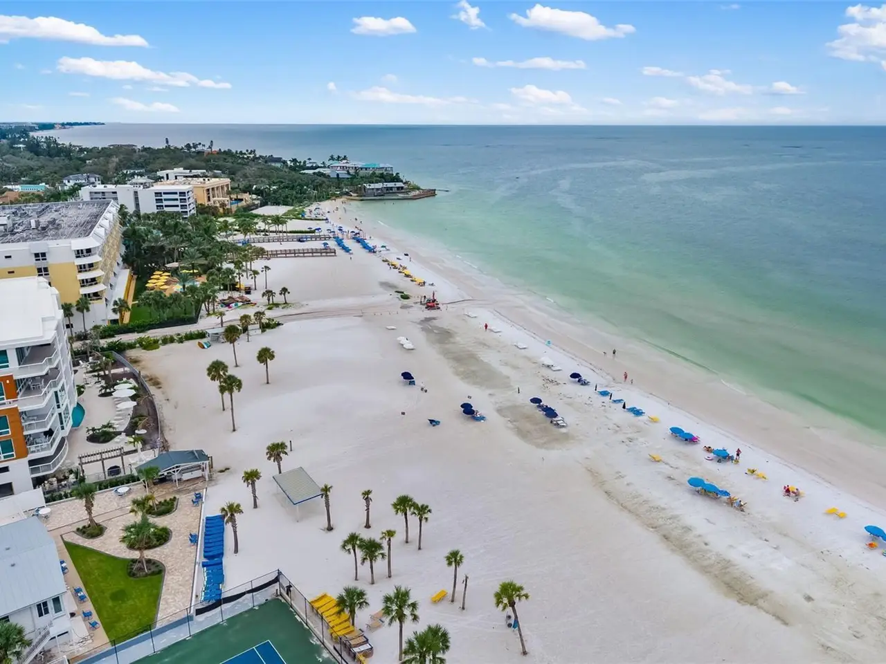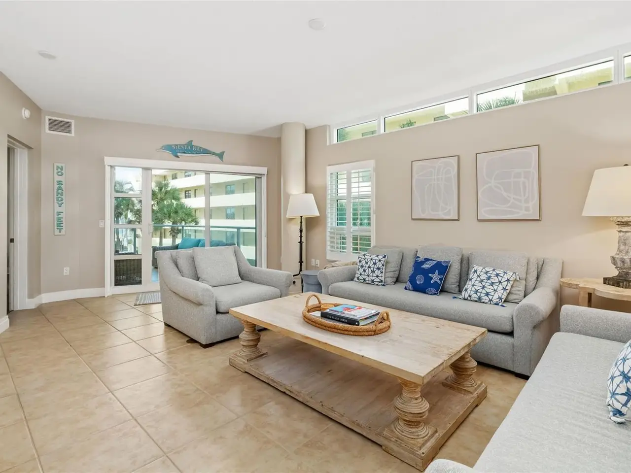 Breathtaking and poised alongside Crescent beach on Siesta Key, discover the rare opportunity to own a spacious beachfront condo that combines contemporary design, durability, and pet-friendly living. With only 26 residences in the community, the Crescent offers an intimate, exclusive lifestyle with an eye-catching façade and meticulously maintained grounds that stands out amongst the adjacent communities. The exterior elegance is paired perfectly with an exceptional, 1,883 square foot interior featuring neutral tones, luxurious furnishings and delightful coastal charm. Three bedrooms and a den afford you the ability to entertain your family and friends with ease while the generous designer kitchen and open concept living area allow you to enjoy every moment and memory of your festivities. Step outside to savor the sea breeze on either one of your two terraces, one with views of the crystal blue waters of the Gulf and the other with a built-in gas grill overlooking the dazzling mid-complex pool. Saunter to the gulf front pool, situated at the western edge of the property, featuring luxury loungers and a soothing whirlpool hot tub. You will feel the difference of the interior luxury finishes while enjoying top of the line amenities including an onsite property manager, social room, modern fitness center, two covered parking spaces, e-vehicle charging stations, an engaged and active homeowner’s association, and professional, onsite rental management. One of the most coveted features of this property is its welcoming pet policy, allowing up to two pets, making it the perfect haven for those that want a beachfront lifestyle that includes the four-legged family members! Location matters on Siesta Key, and this one is considered one of the best. Positioned just across the street from the ‘south village’ is the convenience of grocery, dining, coffee and donut shops, shopping and beach vehicle and equipment rentals. Whether as a primary residence, a vacation retreat, or an investment property, this condo offers a blend of modern comfort, storm-ready construction, and exceptional space all on Siesta Key, Florida’s premier gulf coast destination.construction, and exceptional space all on Siesta Key, Florida’s premier gulf coast destination.