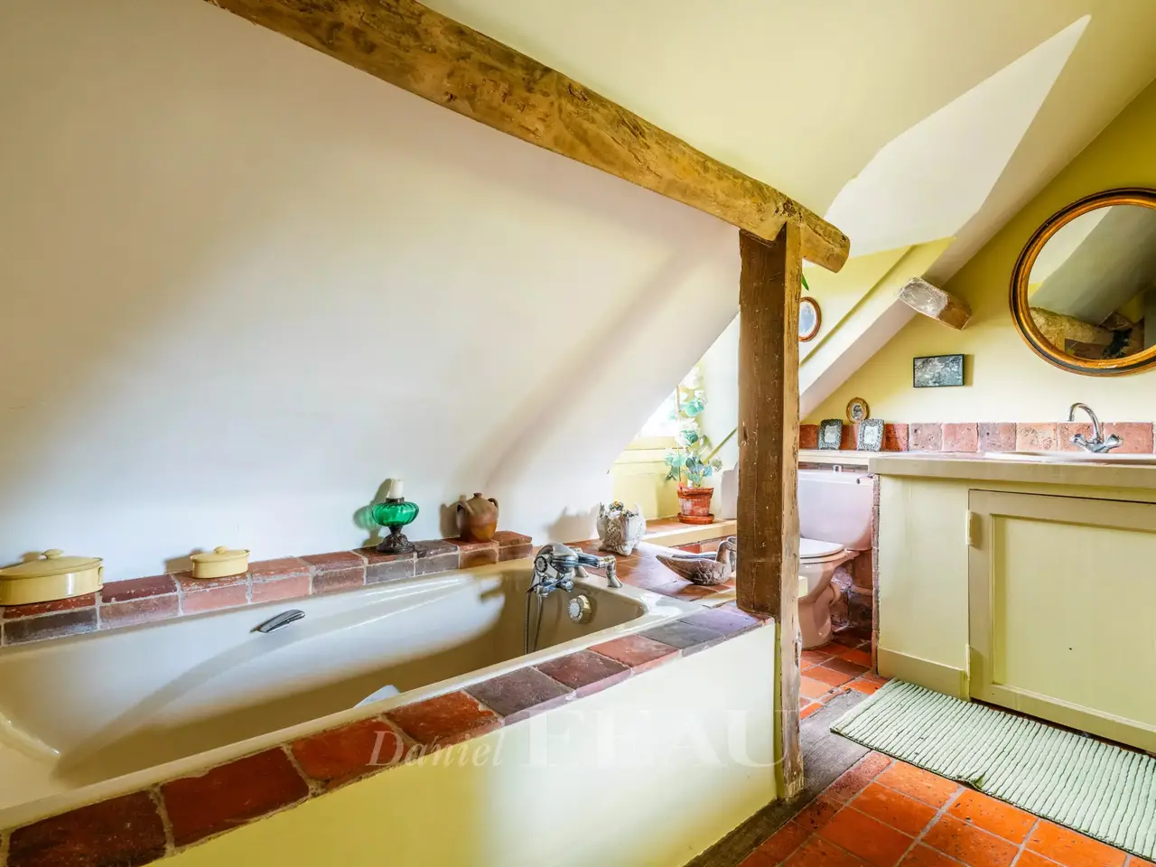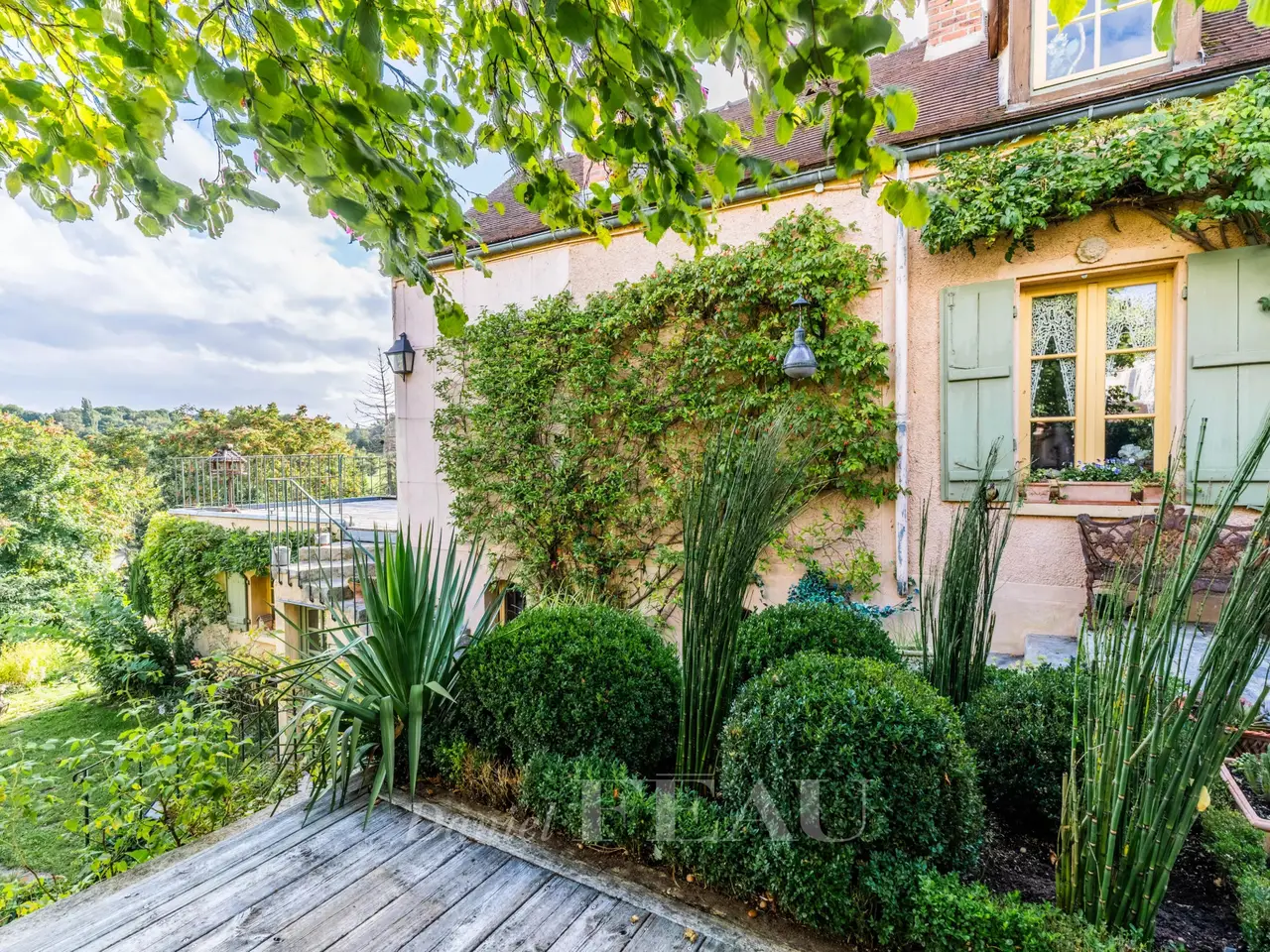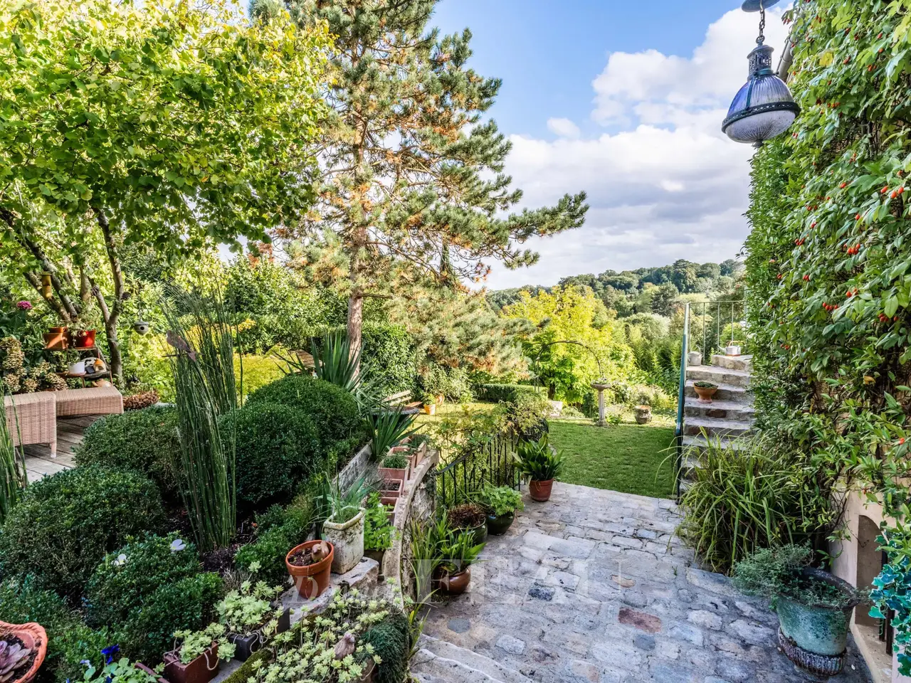 This delightful mid 19th century property commanding a panoramic fully south-facing view is located in the centre of Montfort l’Amaury. It includes a living/reception room with a fireplace and period tomette floor tiles opening onto a fully south-facing terrace enjoying an open view of the valley, a partially open-plan kitchen, and a dining room. A staircase leads down to a master bedroom opening onto the landscaped 780 sqm garden, a bathroom, a utility room, and a shower room/wc. The living room accesses two further bedrooms, and a bathroom with a wc. On a partial basement with a wine cellar. In a convenient location a stone’s throw from the shops and restaurants, and a 6-minute drive from the station accessing Paris in 38 minutes.