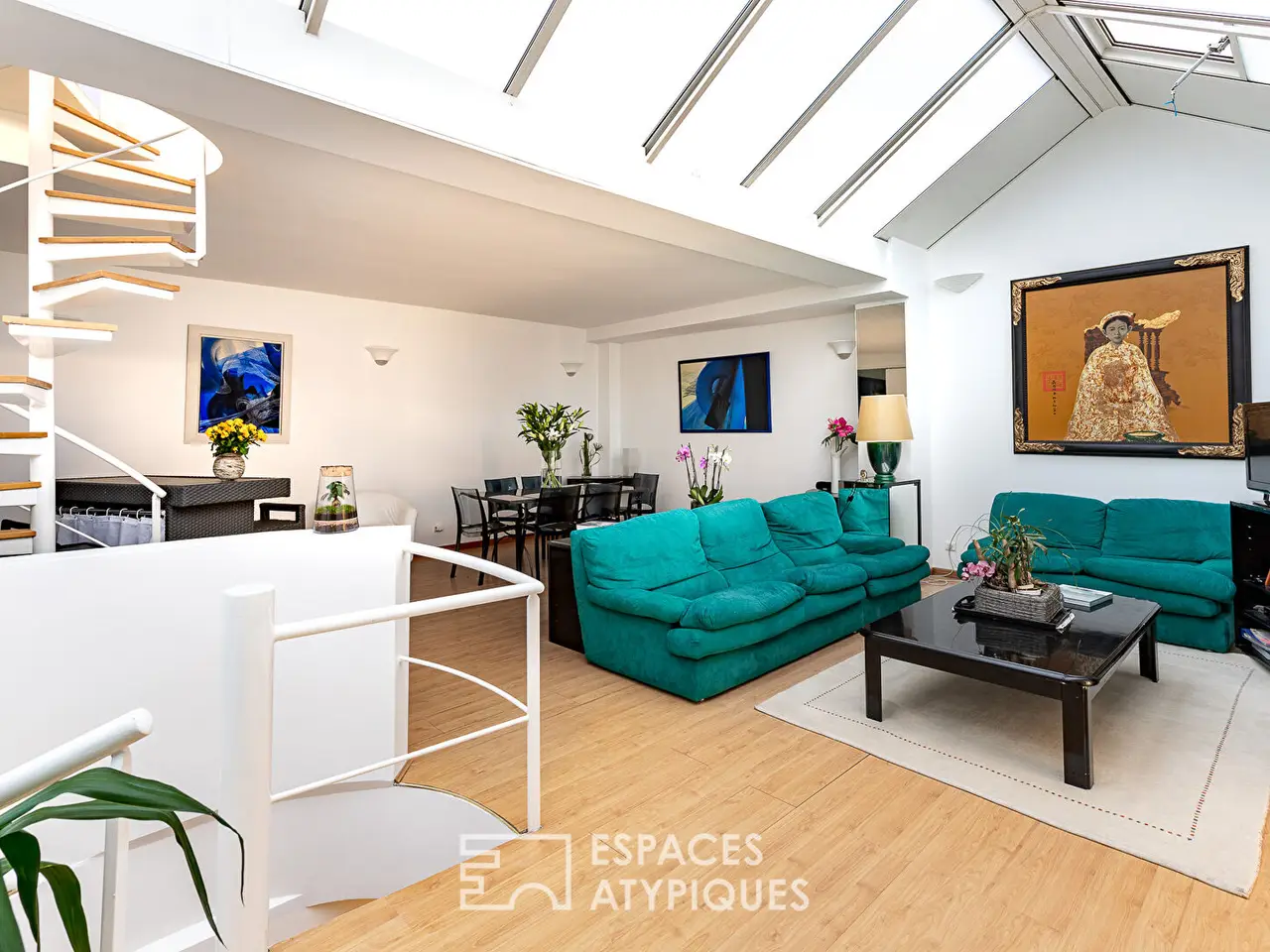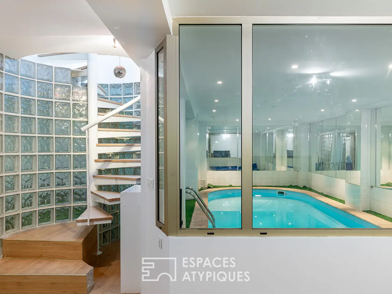 Nestled in the heart of the 13th arrondissement, just steps from the Tolbiac metro station and Parc de Choisy, this exceptional 240.89 m2 (217.54 m2 Carrez) loft, located in a quiet street, is shielded from the urban hustle and bustle. Like a sanctuary, this unique space unfolds around a private 27 m2 courtyard and an 11 m2 terrace on the first floor, welcoming us upon entry into an outdoor bubble of calm and light. The living room, a place for gathering and sharing, is the heart of this loft, which feels like a home. It is bathed in light thanks to the glass roof and numerous large windows. It offers an unobstructed view of the courtyard, which becomes a natural extension of the interior. Stairs and corridors lead from this living room to the various spaces, each designed to meet the specific needs of its occupants while preserving their privacy. On this same level, four bedrooms share a bathroom and a shower room. It is worth noting that this space benefits from a second independent entrance, allowing for the possibility of running a liberal profession. On the first floor, a charming master suite has its own access to a private terrace, perfect for peaceful relaxation. In the basement, a games/TV room and a vaulted billiard room have been created for family or friends' leisure time. The property also stands out with its indoor swimming pool, offering year-round use regardless of the weather conditions. The location is ideal, close to Place d'Italie, schools, shops, and restaurants. Well served by public transportation (lines 5, 6, 7, and 14), it is easy to reach the center of Paris or Orly Airport. The perfect blend of energy, comfort, and privacy makes this property a unique place where the rare outdoor spaces in Paris offer an exceptional living environment, both intimate and extraordinary. Two parking spaces in the neighboring building can be sold separately. Metro: Tolbiac (line 7) Bus: 47, 62, 83, 64 REF. 11800 Additional information * 8 rooms * 5 bedrooms * 2 bathrooms * 2 shower rooms * 2 floors in the building * 17 co-ownership lots * Annual co-ownership fees : 6 634 € * Property tax : 3 092 € * Proceeding : Non Energy Performance Certificate Primary energy consumption e : 264 kWh/m2.year High performance housing