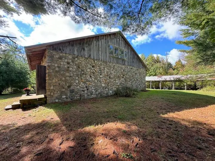 For Sale ~ The Estate of local portrait artist Cecily Diamond. 213 acres of privacy in Belgrade. The home is a design inspired by architect and author Scott Nearing. Mr. Nearing's unique stone home designs can be found throughout the state of Maine. The estate offers 3,329 sq. ft., 2 story stone built home with 12'' thick walls made from fieldstone collected from the land, along with all the custom post & beams that constructed the home. This property has 2 magnificent fireplaces, 1st fireplace on the main living area, the 2nd fireplace is on the upper level. The home was used in the 1970's and 1980's as a family farm, raising highland cattle and great Pyrenees. To the side of the property is a 30x70 spacious barn, great for animals or storage. The property was known for it's elaborate symmetrical gardens, large pear trees, apple trees, and grape vines, but the most interesting is the huge Arctic kiwi bush which has fruit. Through the years they remain but need a little attention. If you are looking for farm land whether it be livestock or to harvest crops this property has great potential. The estate has distinctive personality. The interior will need updating and the second level will need completion but the structure is strong and has sturdy bones. Driveway is 1,200 feet giving all the expectations of privacy. No restrictions on Freedom Drive.