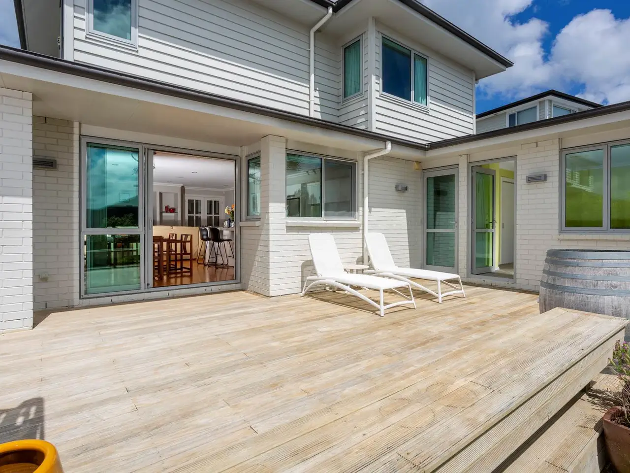 After 8 wonderful years, the current owner is ready for the next chapter — and now this exceptional previous builder’s own residence is officially on the market. Set on an elevated 650sqm section in one of Millwater’s most desirable streets, this stunning 6 bedroom, 4.5 bathroom split level luxury home delivers size, style and sophistication at every turn. Enter through the grand foyer onto solid American oak timber flooring that flows throughout all downstairs living areas. The ground level features a separate formal lounge, a generous family room with adjoining kitchen, plus the fully self-contained 2 bedroom granny/guest wing with its own bathroom — ideal for extended family, teens or visiting guests. At the heart of the home is the gourmet designer kitchen, boasting a huge granite benchtop (1.2m wide), Bosch appliances, two sinks and excellent workspace. The open-plan dining and family area connects seamlessly to a sun-soaked deck and beautifully landscaped garden, setting the stage for effortless indoor–outdoor living. Upstairs, a third living area offers additional flexibility as a kids’ lounge, study zone or quiet retreat. This level also features two spacious master suites, each with its own ensuite, plus two further bedrooms serviced by a modern family bathroom. The vendor has already brought and clear instructions to sell! Auction: 8-12 The Promenade, Takapuna on Wednesday 10 December 2025 at 9:30AM (unless sold prior)