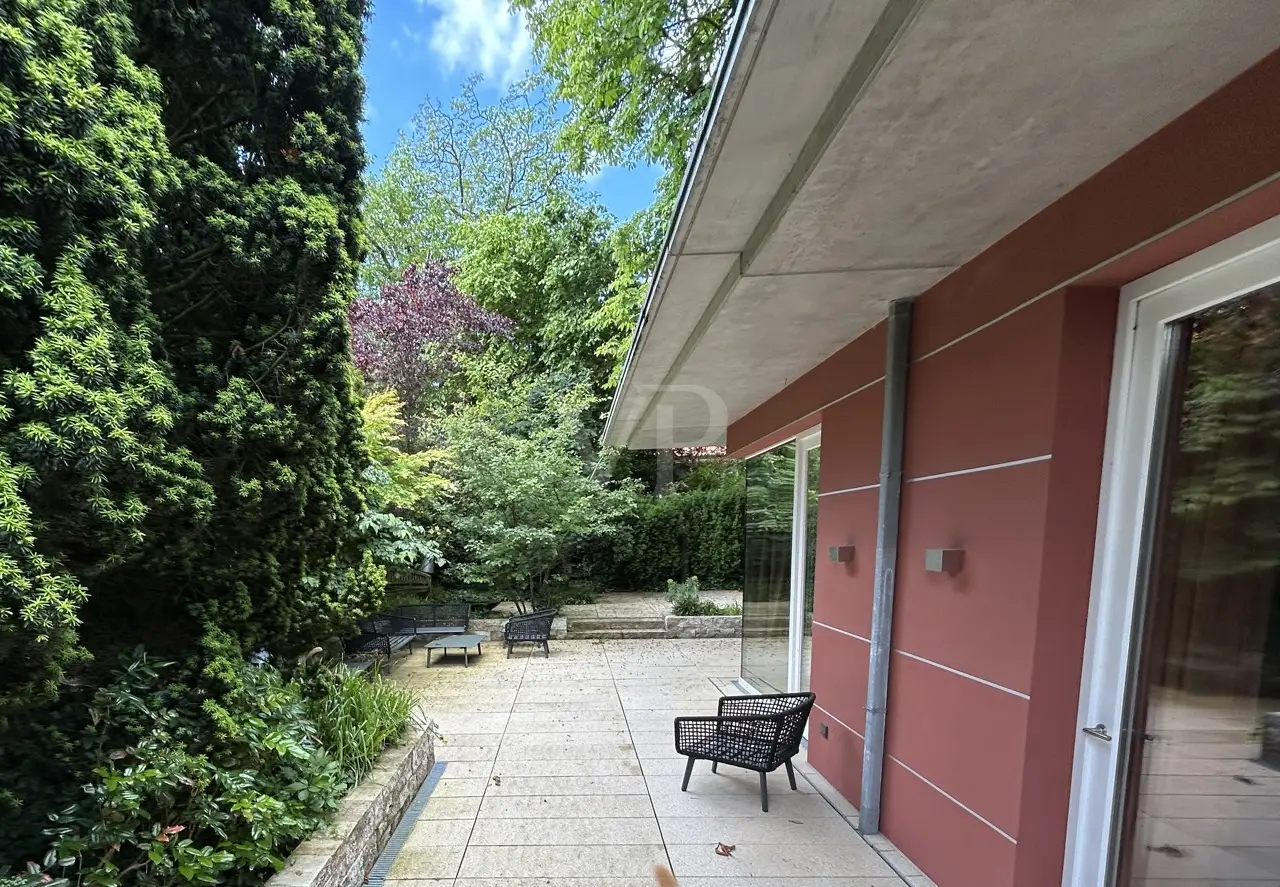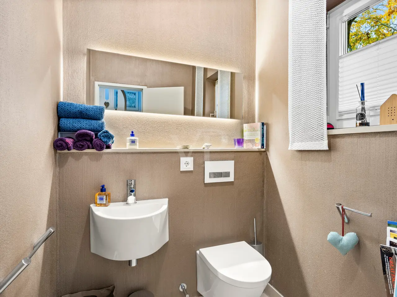 For sale is a modernized detached house that was built in 1956 and extensively renovated in 2010. The extensive refurbishment included both interior design elements and technical systems, which has restored the detached house to almost new condition. With a living area of approx. 280.64 m², this house offers plenty of space for individual design options and family dreams. The property has a total of seven rooms, including four spacious bedrooms, which are perfect for a family. The room sizes allow for a variety of uses - whether as a guest room, office or hobby room, there is room for all your wishes. Three modernized bathrooms and a guest WC ensure comfort and privacy for all residents. The heart of this home is the spacious living room, which impresses with its light-flooded atmosphere. There is plenty of space for relaxation and sociable evenings here. The adjoining kitchen is functionally designed and offers plenty of space for culinary activities. There is also a scullery adjacent to the kitchen, which offers plenty of space thanks to its bespoke built-in cupboards. There are also two balconies or terraces, which are ideal for sunny days and relaxing hours outdoors. The property has a partial basement. In the basement there is a further bedroom, which can be used as a guest bedroom, with its own bathroom. Also in the basement are the boiler room with the heat pump, the switch cabinet and the server for the building services. The property is situated on an impressive plot of approx. 987 m², which offers a wide range of possible uses. The outdoor area is ideal for leisure activities and for creating a garden paradise. The well-kept garden, laid out as an attractive south-facing garden with a brick garden shed, was designed and laid out in two construction phases by a gardening company. It offers plenty of space for children and pets and gives the property a pleasant atmosphere. The house's advanced heating system deserves special mention. Equipped with efficient underfloor heating and an environmentally friendly heat pump, it ensures a pleasant indoor climate all year round. This modern heating system underlines the high quality of the property and ensures low energy consumption. In summary, this modernized detached house offers an ideal home for families who value quality and space. The successful combination of generous living space, functional floor plan and modern features makes this property an excellent choice for your new home. Arrange a viewing appointment now to see the benefits of this property for yourself. We look forward to hearing from you!