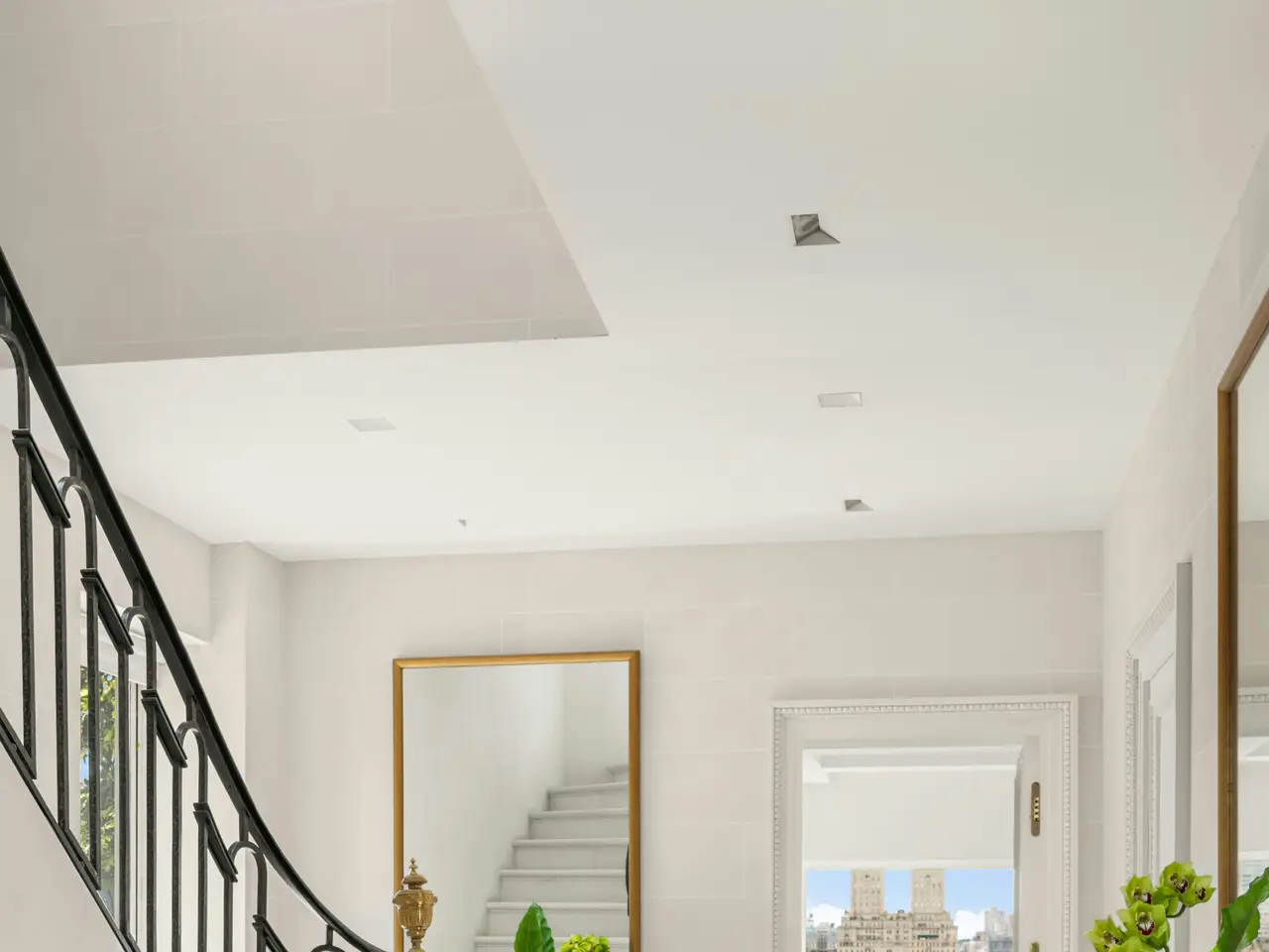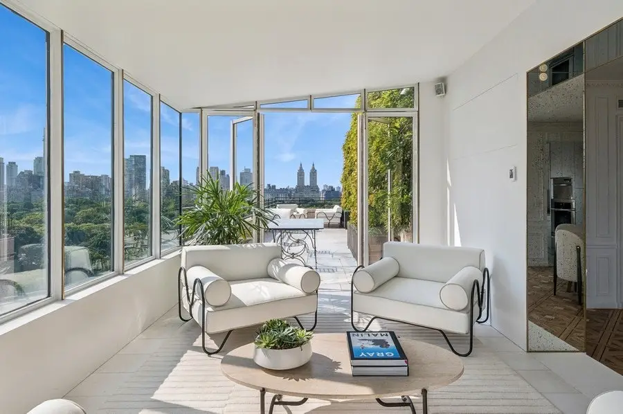 Perched atop 936 Fifth Avenue, this recently updated three-bedroom penthouse is a true gem, offering unparalleled Central Park vistas and an abundance of natural light. The fully renovated, duplex spans 3,800 square feet of exquisite interior space, complemented by over 2,400 square feet of private outdoor terraces. A private elevator opens directly onto the 18th floor, where you're greeted by a stunning marble-clad gallery with double-height ceilings and a sweeping marble staircase. The residence features a series of lush, landscaped wrap-around terraces that enhance every principal room with green, panoramic views. The grand living room is a highlight, boasting a bay window with sweeping westward views over Central Park and expansive northern and southern vistas. The elegant formal dining room impresses with its parquet de Versailles flooring and exquisite boisserie. A floor to ceiling corner window was just added in a recent renovation, offering open Eastern exposures. Adjacent to this is a sun-drenched breakfast room with heated floors, and folding glass doors opening to the Southern terrace. The entire first floor boasts soaring 10'+ ceilings throughout. The chef's kitchen is a culinary dream, outfitted with custom-designed Bulthaup cabinetry, a large Wolf stove, Miele ovens, and a Sub-Zero refrigerator, all framed by open, airy views. A stylish powder room completes the public spaces. The main bedroom suite, located on the lower floor, offers stunning Central Park views and direct terrace access. Its spacious en-suite bathroom features heated marble floors, double sinks, a large soaking tub, and a shower, all finished in luxurious onyx. Additionally, there are two generously sized bedrooms on the first floor, each with en-suite bathrooms, ample closet space, large windows, and terrace access. Upstairs, the library/media room is a standout feature, equipped with a surround sound system and blackout shades. It offers another bay window and three additional large windows with single-pane fenestration. This level also provides access to a west- and north-facing landscaped terrace, complete with a grill, refrigerator, and ice maker, ideal for al-fresco dining. The upper floor includes a staff room, a half bath, and a sizable outdoor laundry room. The apartment is enhanced with five-zone central air conditioning, new windows and doors with insulated glass for soundproofing and weather resistance, a Crestron/Lutron system, as well as waterproofing and irrigation systems for the terraces. An ADT security system is also installed, and the apartment is wired throughout. Built in 1955, 936 Fifth Avenue is situated at the southeast corner of 75th Street and Fifth Avenue. The building provides white-glove service, including a full-time doorman, elevator attendant, resident manager, fitness center, and laundry room. Up to 50% financing is permitted, with a 4% flip tax payable by the buyer.
