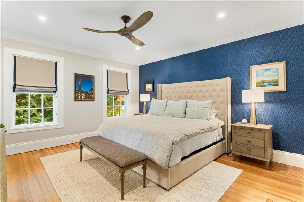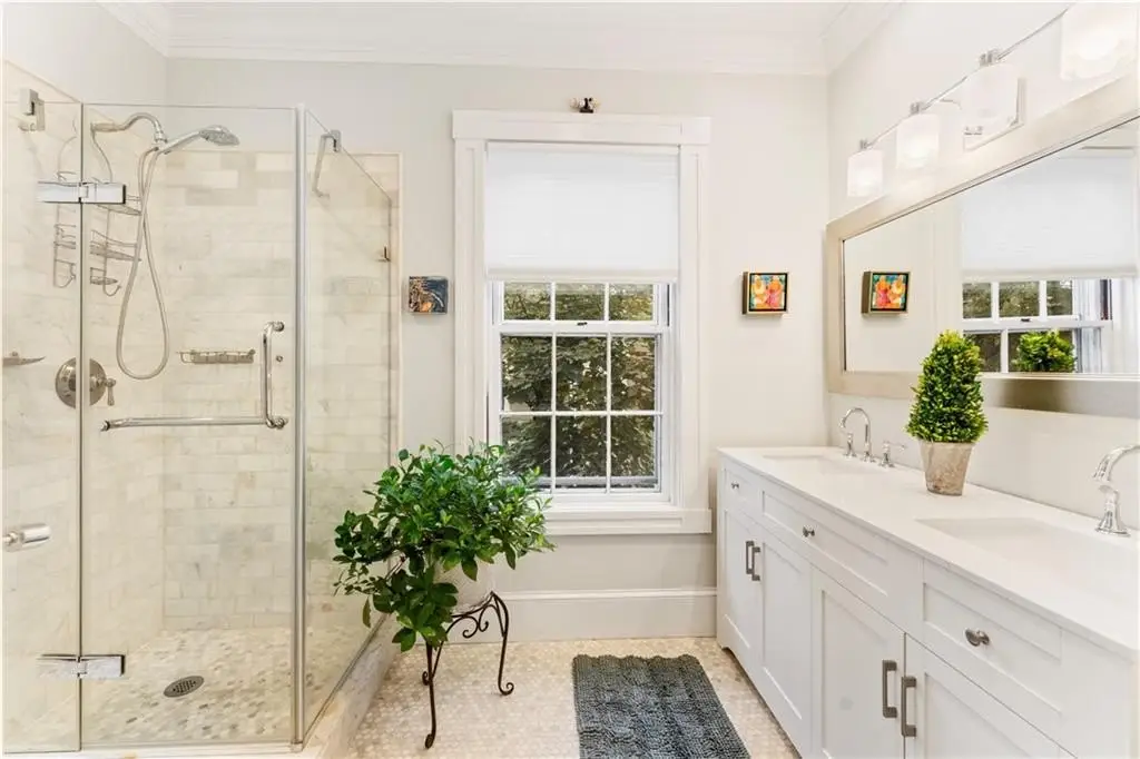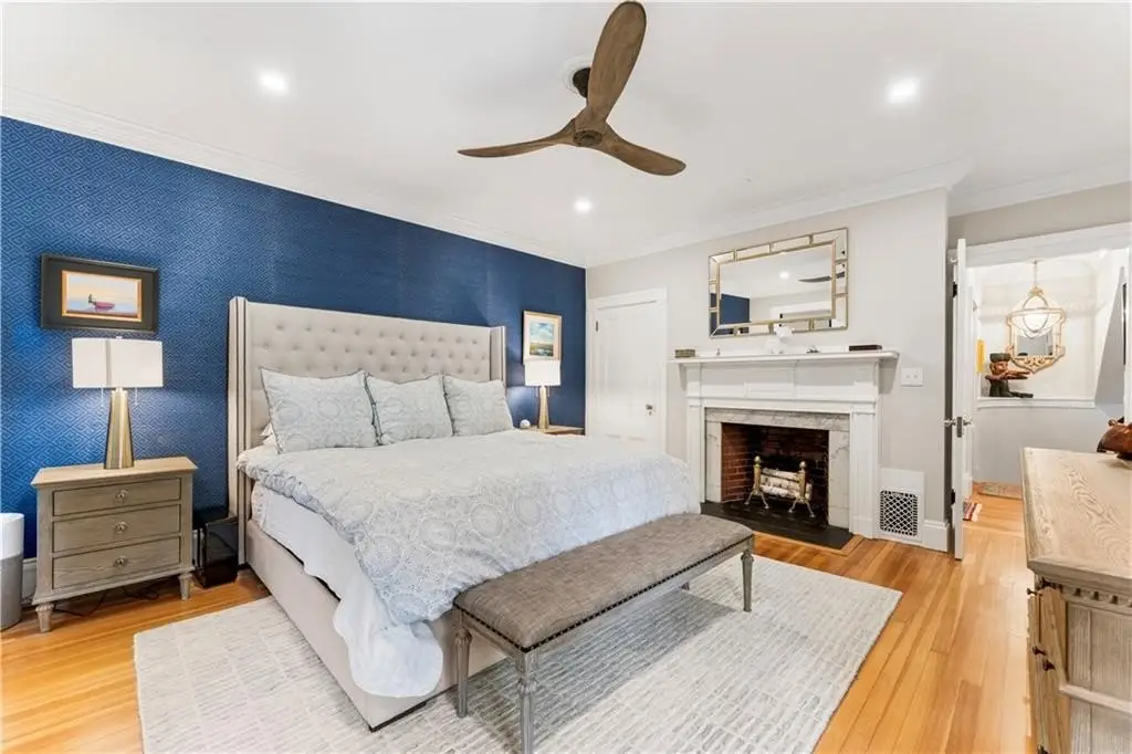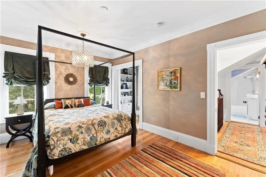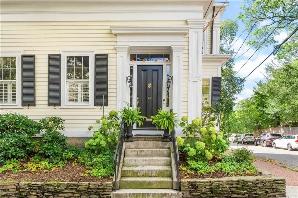 Welcome to the fabulous George F. Gladding House! Perched on one of the most prominent spots in Providence’s coveted College Hill neighborhood, this 1845 Greek Revival has been thoughtfully, and thoroughly, updated with an impeccable eye for detail, with gorgeous crown molding and built-ins, soaring ceilings, and tons of historic details – including 7 working fireplaces. From the main entrance, a stately front hall opens onto a front parlor and a private home office with a half bath. The spaciously redesigned living room, with a gas fireplace, wet bar, and fridge, opens to an elegant dining room. An adjacent sunroom offers a quiet retreat, and steps down onto a private, lusciously landscaped private courtyard patio and garden. The stunning eat-in kitchen features radiant-heated Spanish marble floors, high-end appliances, a breakfast nook, and a dedicated mud room. Upstairs, find two primary suites – the larger offering a fireplace, soaking tub, and radiant heat – plus two additional bedrooms, a family bath, and a laundry room. The third floor includes a private guest suite and additional office space. A new HVAC system with central air, as well as new insulation, adds year-round comfort. Located just around the corner from Prospect Terrace Park, and moments from Brown, RISD, and incredible Downtown and East Side shops and restaurants, this truly special home offers the ideal blend of historic charm and modern luxury living in one of Providence’s most desirable locations.