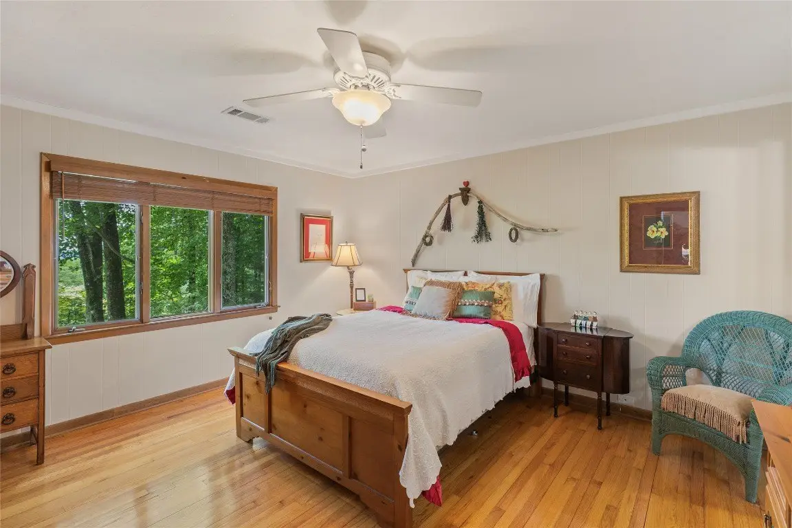 Located in the desirable Round Hill Estates community, this classic single-level home offers generous living spaces, timeless finishes, and a welcoming layout ideal for year-round or seasonal living. Set on a gentle, double lot with lush landscaping and a large grassy area, the nearly flat property is perfect for enjoying the outdoors, with a beautiful stone firepit, shaded gathering spots, and peek-a-boo mountain views from the covered front porch. Inside, rich wood flooring and skylights create a warm, airy atmosphere. The spacious living room features a striking stacked-stone fireplace and flows seamlessly into the dining area and a bright, updated kitchen, designed for easy entertaining and daily comfort. A large screened porch off the main living area extends the indoor-outdoor lifestyle. The well-planned layout includes a den or office just off the living room, two oversized guest bedrooms, and a spacious primary suite. An oversized two-car garage includes a workshop area, a spacious walk-in basement offers additional room for storage and activities, while the driveway offers ample space for parking and turnaround. The home was extensively refreshed over the past 3 years, including the new kitchen, new appliances, 2 new water heaters, new baths, new roof, wiring for a generator and more. Enjoy a convenient location near the Country Club of Sapphire Valley. Residents of Round Hill Estates have the option to enjoy year-round Sapphire Valley Resort amenities, including heated pools, tennis courts, pickleball courts, a fitness center, a dog park, mini-golf facilities, a nine-hole golf course, and Fairfield Lake for swimming and boating. Winter fun abounds with skiing, snow tubing, and snowboarding. Just minutes from Cashiers’ charming shops and dining, Sapphire offers the perfect blend of adventure, leisure, and convenience. Surrounded by friendly neighbors and set in a peaceful, established neighborhood, this charming home offers comfort, convenience, and classic mountain living.