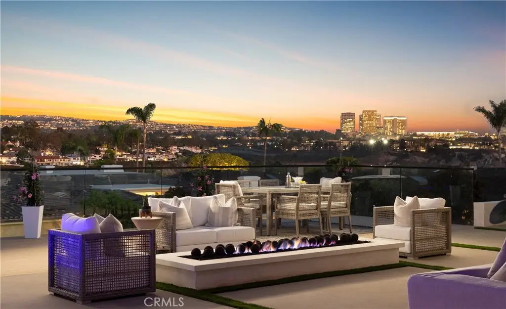 Experience the pinnacle of Newport Beach living in this brand-new, single-story masterpiece spanning 4,677 square feet of refined design and modern luxury. Set on one of Dover Shores' most desirable streets, this architectural gem blends sophisticated style with effortless indoor-outdoor living. Step inside to soaring ceilings and a dramatic 33-foot motorized sliding glass wall that opens seamlessly to your private backyard retreat complete with a sparkling pool, BBQ island, firepit, and elevated deck for entertaining under the sun or stars. The heart of the home is the chef-inspired kitchen, featuring Thermador appliances, Le Blanc quartzite countertops, and a walk-in pantry, all framed by custom cabinetry and natural stone finishes found throughout the residence. The 1,000 sqft primary suite is a sanctuary, boasting a coffee bar, his-and-hers layout, makeup vanity, freestanding tub, and an oversized shower wrapped in breathtaking Michelangelo Dolomite quartzite slabs. Three additional ensuite bedrooms, a glass-enclosed office, and a den provide versatility for family and guests alike. Upstairs, the expansive rooftop deck delivers panoramic, "forever" Back Bay views, complete with a firepit, BBQ, and bathroom, creating the ultimate space for sunset gatherings. Additional highlights include a 3-car garage and a fully integrated Savant home automation system, ensuring every modern convenience is at your fingertips. This is modern coastal living at its finest. 1918 Santiago is a home where every detail is intentional, every finish is natural, and every view is extraordinary.