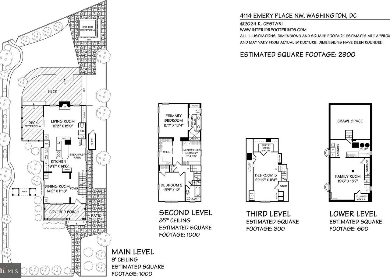 Welcome to 4114 Emery Place NW""¯ a beautifully reimagined home offering nearly 2,900 square feet across four finished levels. Perfectly positioned close to two Metro stations, Fort Reno Park, and the vibrant shops and restaurants of Friendship Heights and Tenleytown, this residence combines an ideal location with exquisite craftsmanship and modern luxury. Step through the entry foyer and discover a home that has been meticulously remodeled with top-of-the-line finishes throughout. Chef's Kitchen""¯ A true showstopper with Subzero 36""� stainless steel refrigerator, Wolf 36""� gas range, Miele stainless steel dishwasher, ABBAKA 42""� stainless steel island hood with 1400CFM external blower, and custom Sapele exotic wood cabinetry with built-in pantry, spice rack, and garbage/recycling pull-outs. Brazilian granite and stainless-steel countertops feature an integrated prep sink, complemented by a Franke professional series sink with full accessory system. An oversized garden window with casement windows and a built-in grow light completes this stunning space. Dining Room Elegant and functional, featuring a built-in Subzero wine storage unit (147 bottles, dual temperature zones, and alarm connected), a custom Sapele wood china cabinet, and a striking alabaster chandelier. Living Area""¯ Warm and inviting with built-in surround sound ceiling speakers, extensive custom cabinetry including coat closet and floor-to-ceiling storage with glass shelving, pull-out audio/visual drawers, and a dramatic Tennessee sandstone gas fireplace that anchors the room. Upstairs Retreat""¯ The primary suite is a luxurious sanctuary, highlighted by a spa-inspired bath with an oversized Steamist steam shower (lounging bench, dual Porsche-designed showerheads), dual sinks with Brazilian granite, private toilet room, and custom Sapele wood cabinetry. Dual walk-in closets provide flexible use and one is large enough to serve as a den, nursery, or office. An additional bedroom and updated hall bath complete this level. Upper Levels""¯ The finished attic level offers a third bedroom plus a bonus office area, while the lower level provides a generous recreation room (plumbed for a powder room), laundry, and ample storage. Whole-Home Features""¯ Brazilian cherry hardwood floors (¾""� thick, 4""� wide) on the first and second floors, dual-zone Carrier HVAC and furnace, Kolbe custom doors and windows, integrated high fidelity audio sound systems, whole house water filter and surge protectors, and a full security system ensure comfort and peace of mind. Outdoor Oasis""¯ The private, fully fenced grounds are a true extension of the home, featuring mature gardens with heritage and ornamental trees, paver walkways and patios, raised stone planting beds, a private front porch, wraparound Japanese-style cantilevered deck, pergola-covered hot tub, lush lawn, multiple gathering spaces, Rainbird sprinkler system, storage shed, and three-zone outdoor speakers-all overlooking rear green space for rare privacy. 4114 Emery Place NW""¯is more than a home ; it's a lifestyle, blending sophisticated design, modern convenience, and serene outdoor living, all in one of DC's most desirable neighborhoods.