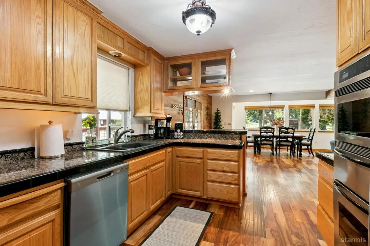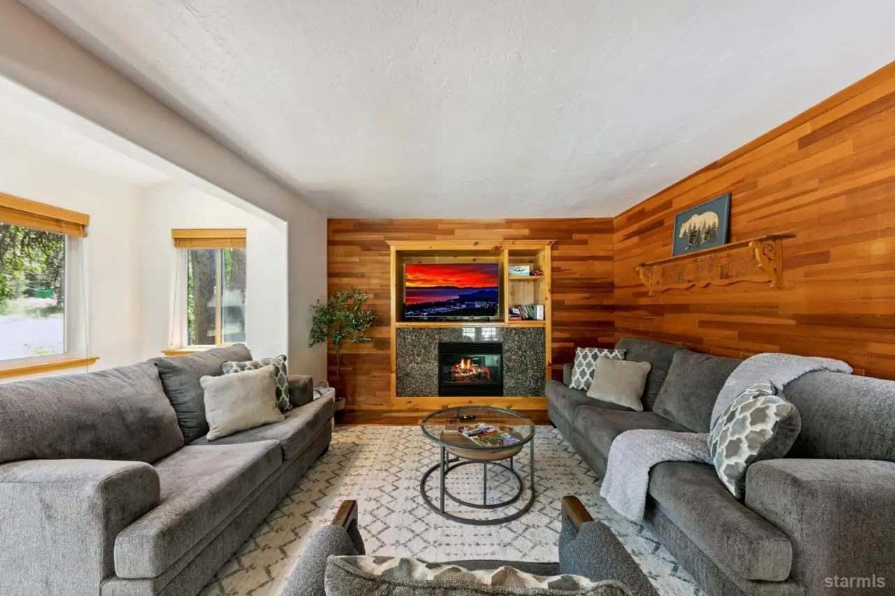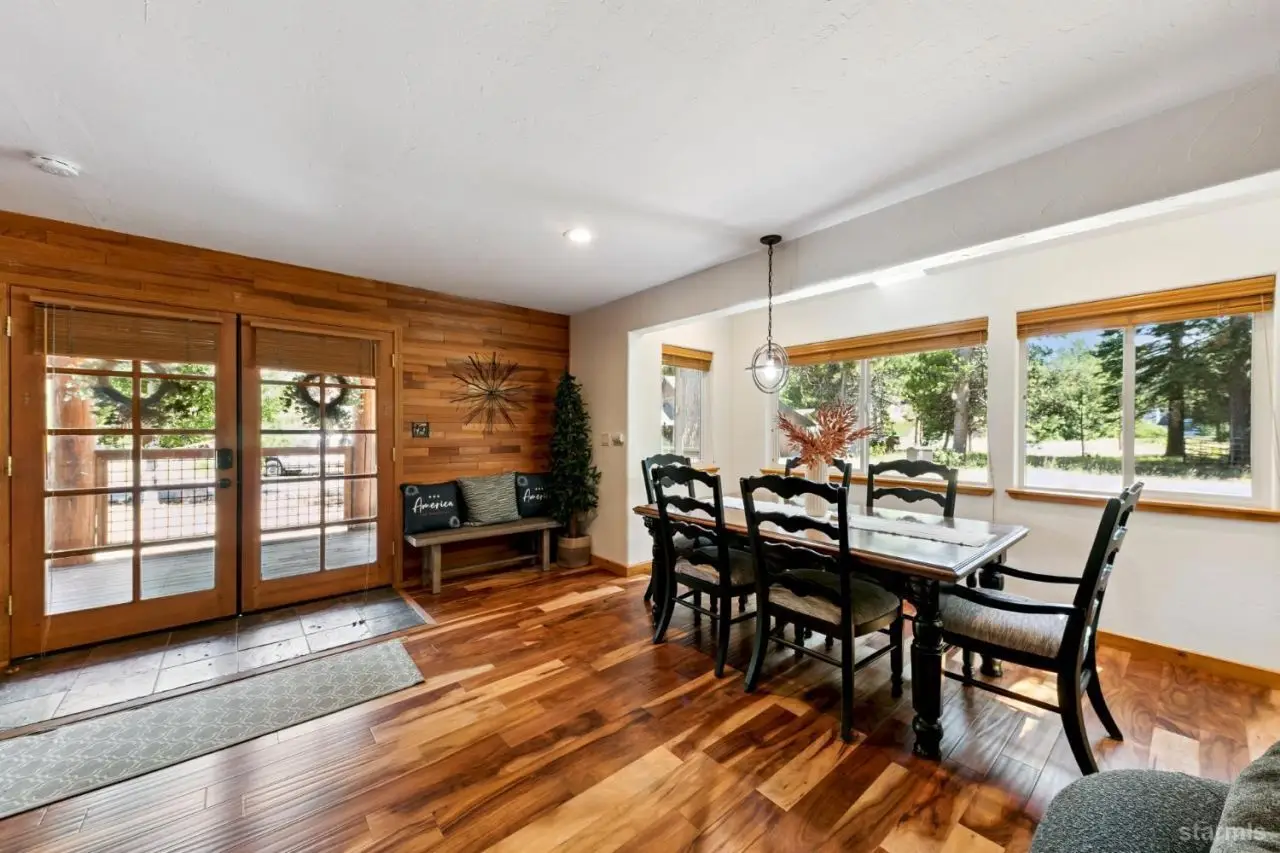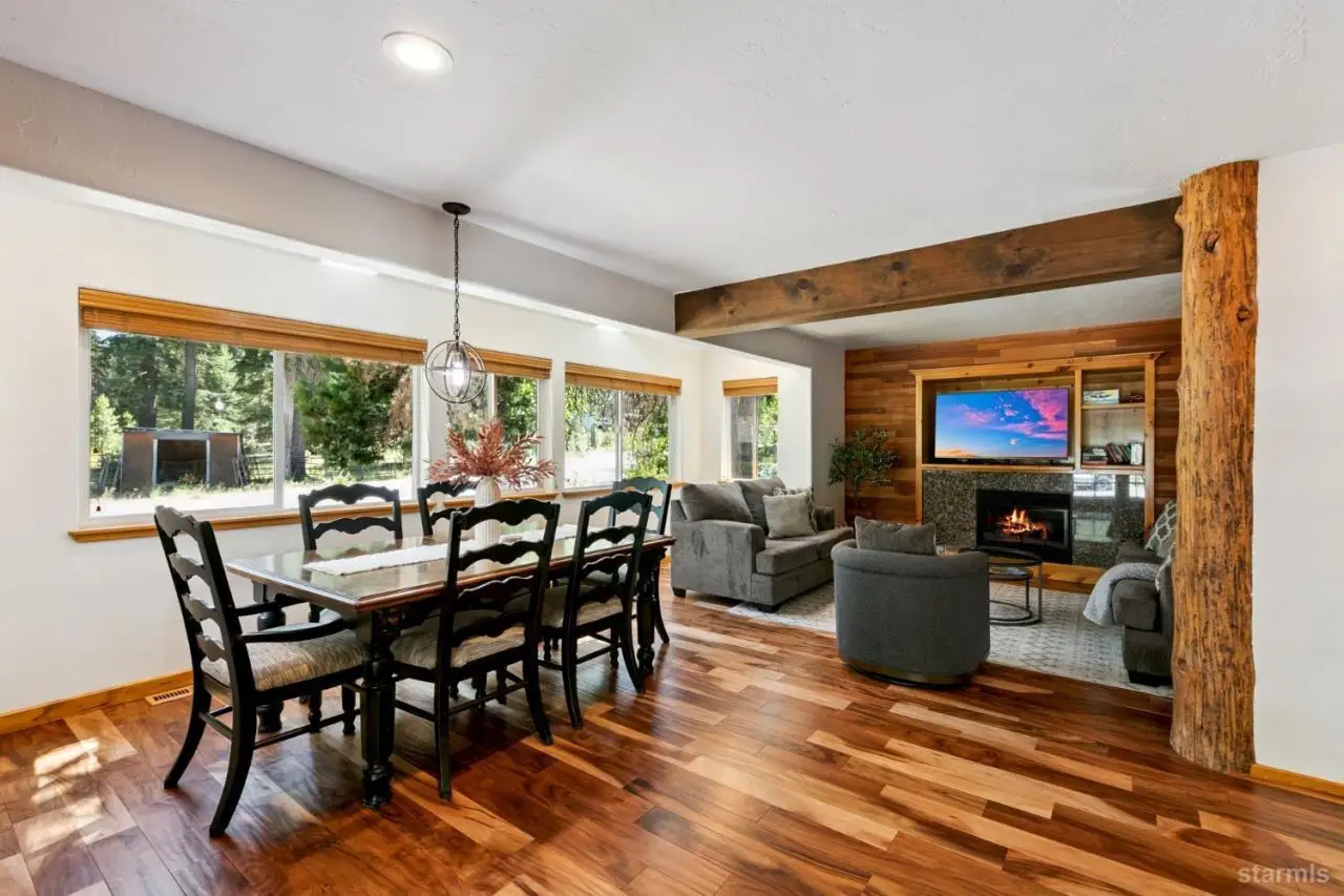 Discover this stunning Tahoe-style home nestled on a peaceful cul-de-sac across from United States Forest Service land and the Upper Truckee River. Step outside your front door and take a leisurely stroll to enjoy the meandering river, spectacular mountain views, and breathtaking natural setting that surrounds this exceptional property.This beautifully updated four-bedroom, two-and-a-half-bathroom home features 2,421 square feet of living space. The main level features elegant Acacia hardwood flooring, charming log accents, and a cozy gas fireplace that creates the perfect mountain retreat atmosphere. The kitchen features oak cabinetry, stainless steel appliances, and a convenient gas cooktop.The downstairs living layout includes a full bathroom, comfortable bedroom, and spacious laundry room with abundant storage solutions. Upstairs, you'll find three additional bedrooms, including a luxurious primary bedroom suite complete with a walk-in closet, bonus office area, en-suite bathroom featuring a custom dual showerhead shower, and a private balcony overlooking the serene forest.The expansive 13,068 square foot lot is fully fenced and provides convenient boat and recreational vehicle parking. An oversized three-car garage easily accommodates full-sized vehicles while offering additional storage space for all your mountain gear and equipment.Located in a prime area with easy access to outdoor recreation, this property offers the perfect blend of comfort, convenience, and natural beauty. The nearby Echo Summit Tahoe Rim Trail provides excellent hiking opportunities, while Holiday Market ensures convenient shopping just minutes away. This exceptional mountain home represents an incredible opportunity to own a piece of Tahoe paradise.
