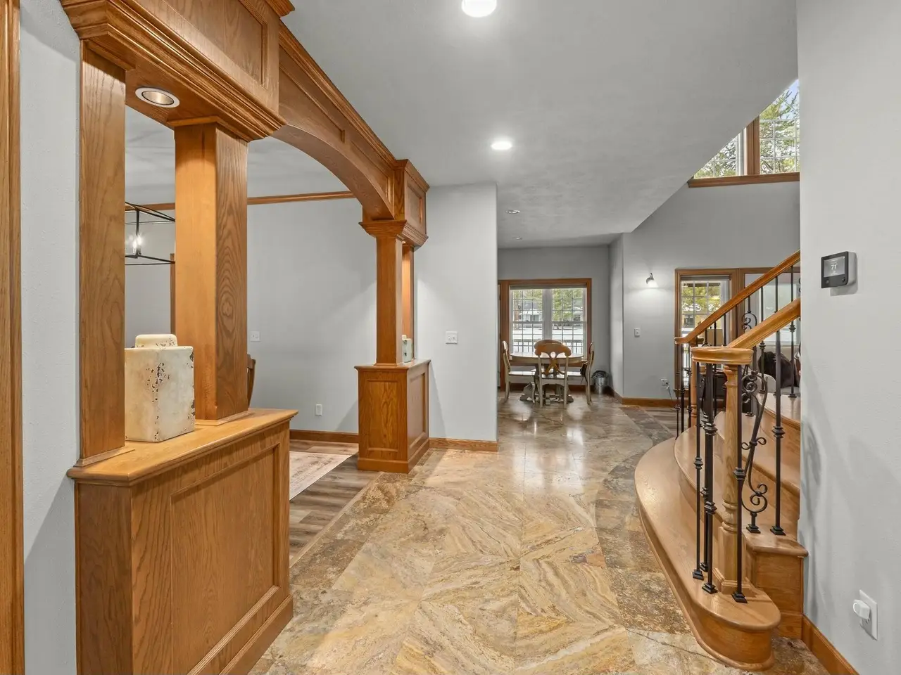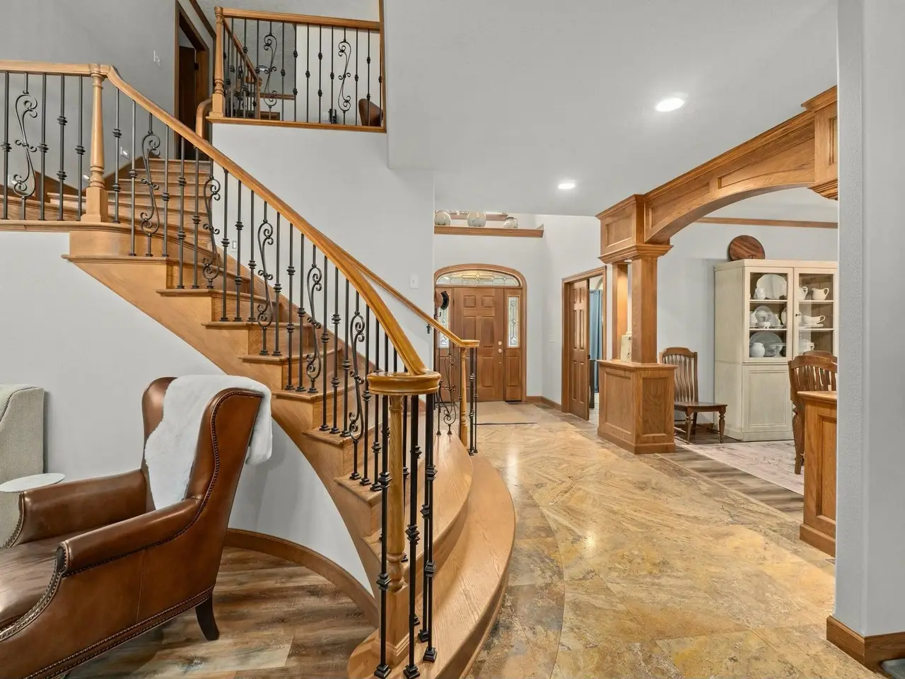 • Ornate wrought-iron staircase